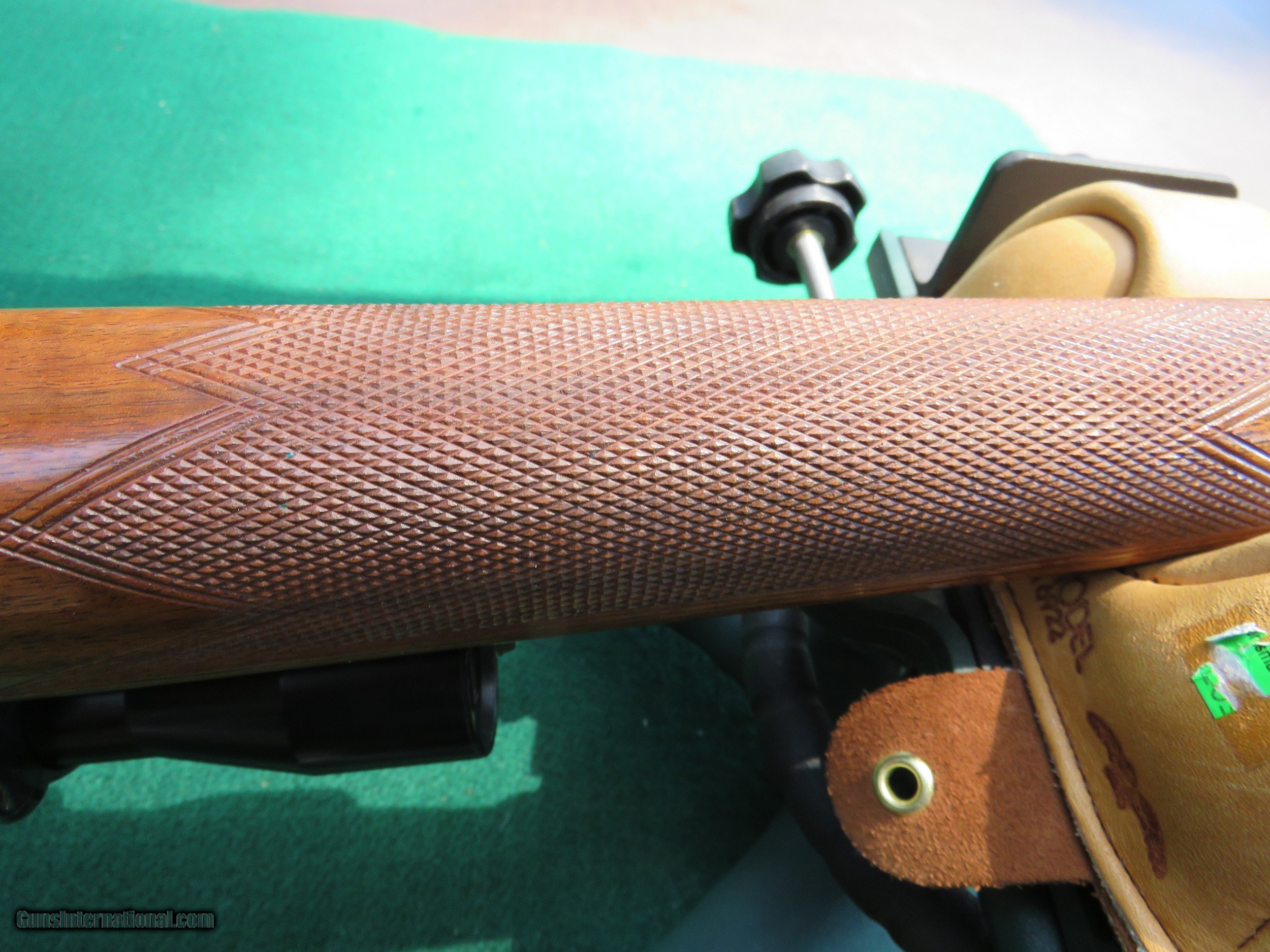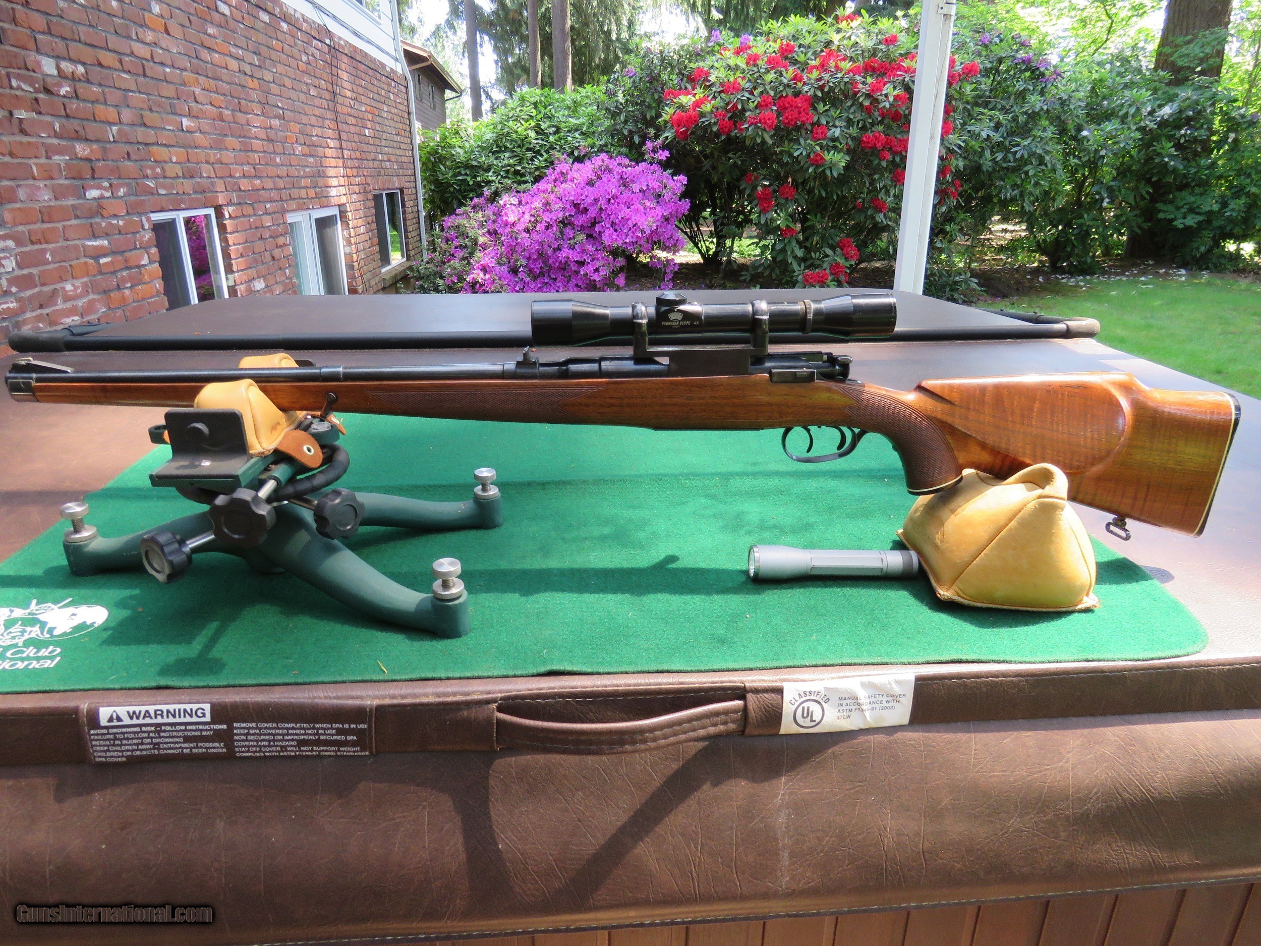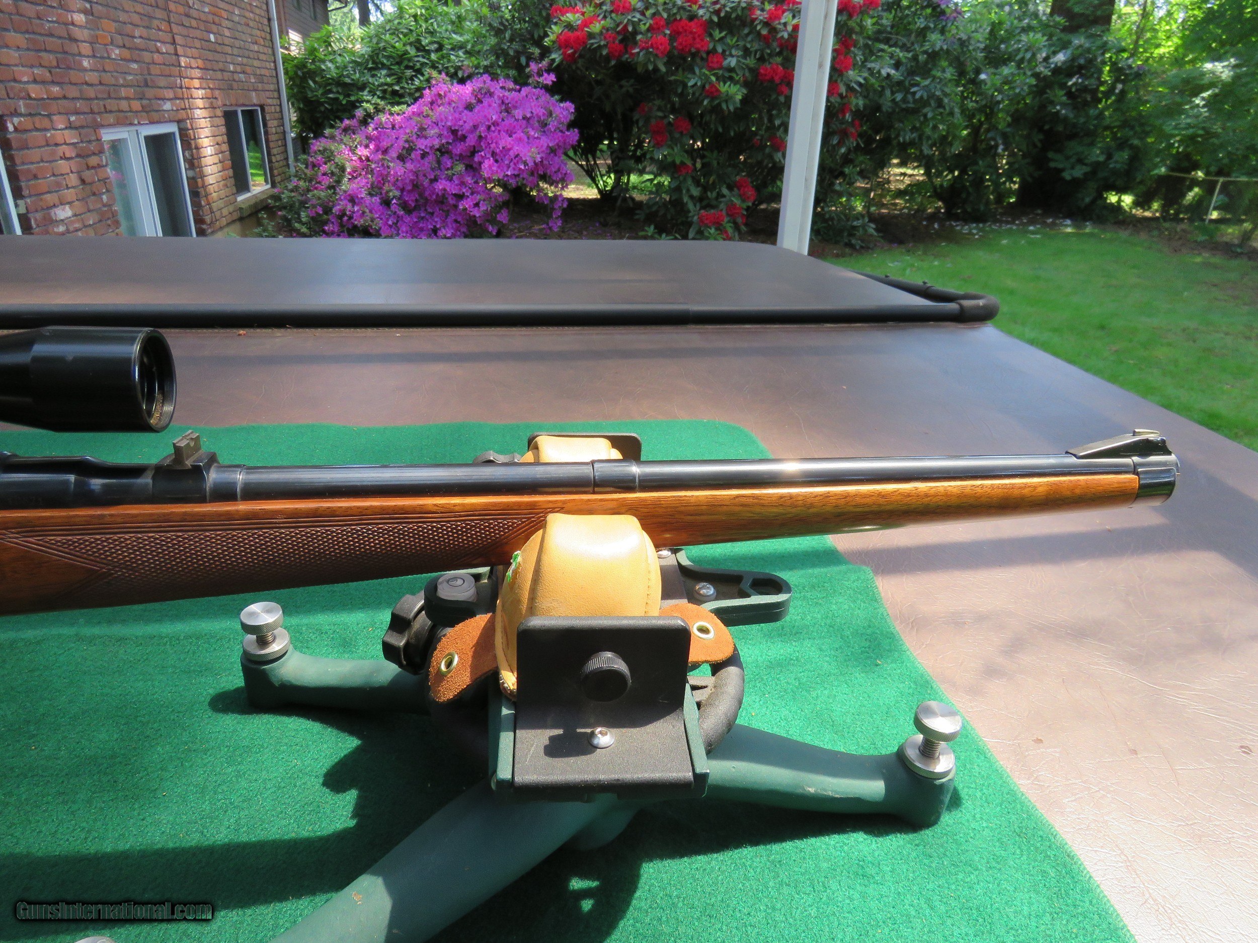 Description: Mannlicher Schoenaur Model 52 in 308 Win. with 4x Prominar Scope by Kowa, 20 inch barrel. Double set triggers with butter knife bolt that is as smooth as silk. The barrel is bright and in excellent condition. Original sling swivels and folding leaf sights, the hood is missing on the front sight. Checkering is sharp with very few handling marks. The scope mounts are side mount cleanly fitted. Bluing, wood, and bore are in excellent condition. This rifle is from a friend’s personal collection. No Sales to California and I will only ship to FFL holders in states where legal. Shipping $40.00 SOLD Curio/Relic: Yes Manufacturer: Mannlicher Schoenaur Model: Improved 52 Barrel Length: 20 Caliber Info: 308 Condition: Excellant Metal Condition: Excellant Wood Condition: Excellant Bore Condition: Excellant Action: Bolt Triggers: Double Set Stock: Full Length |