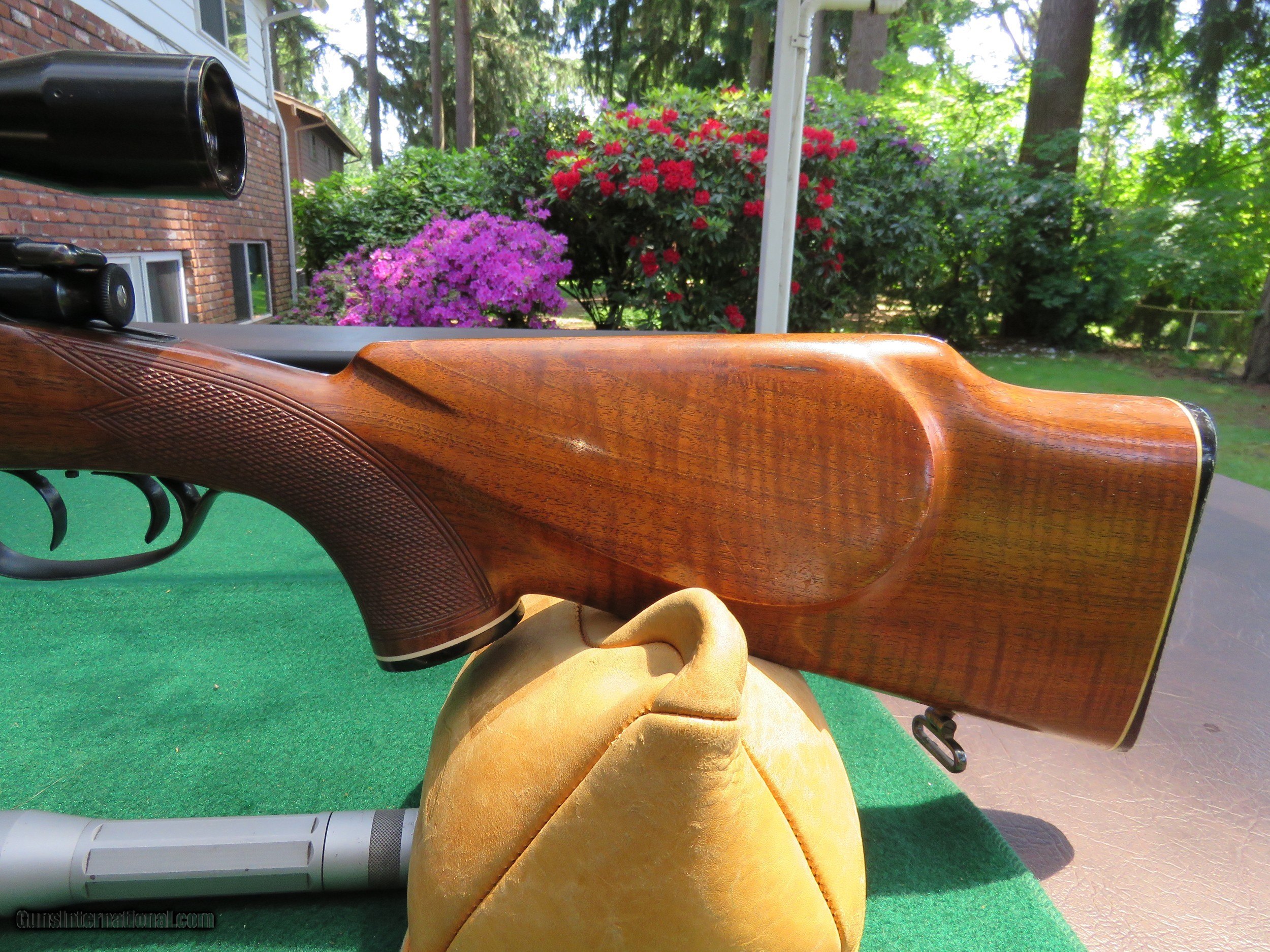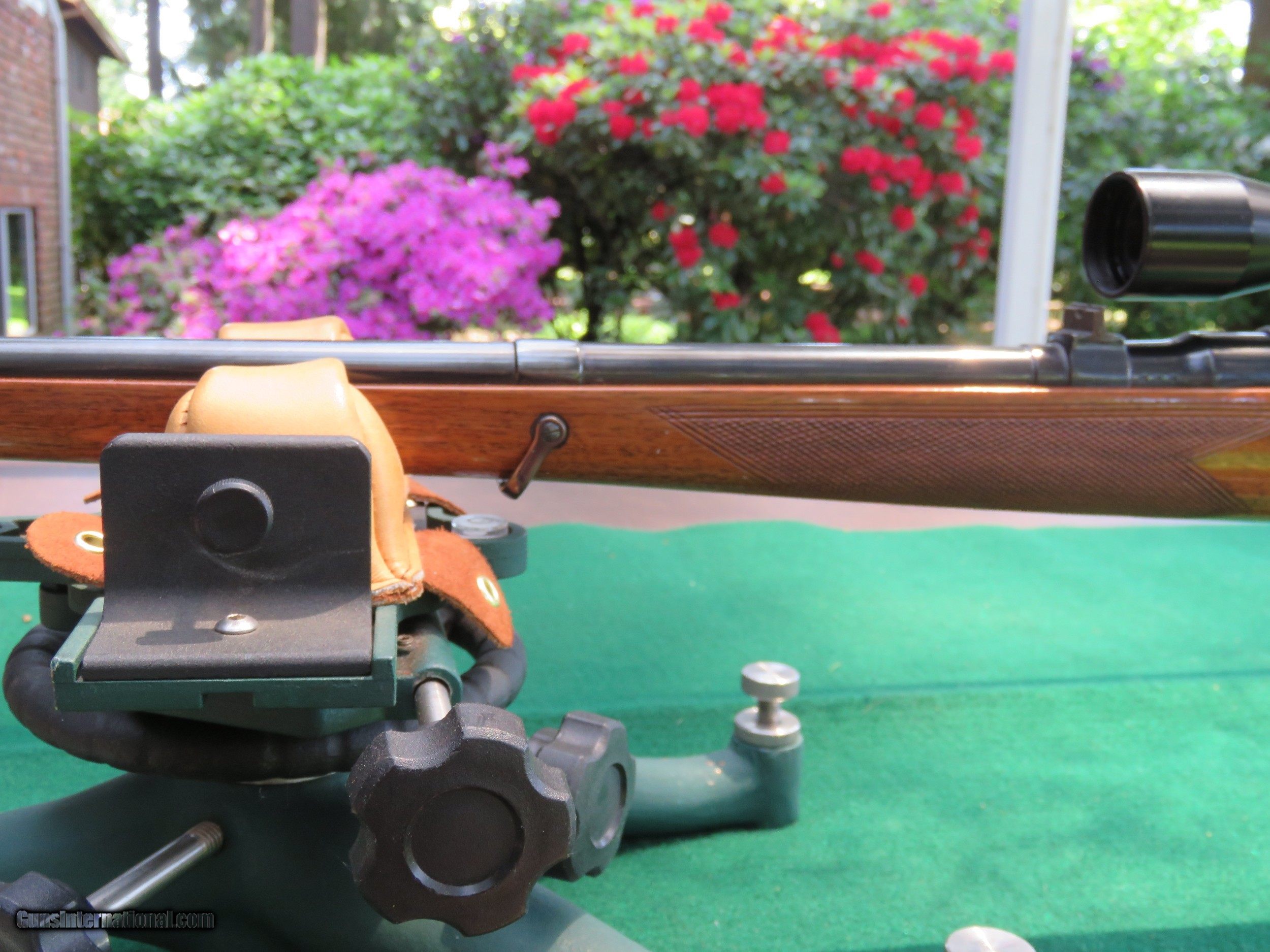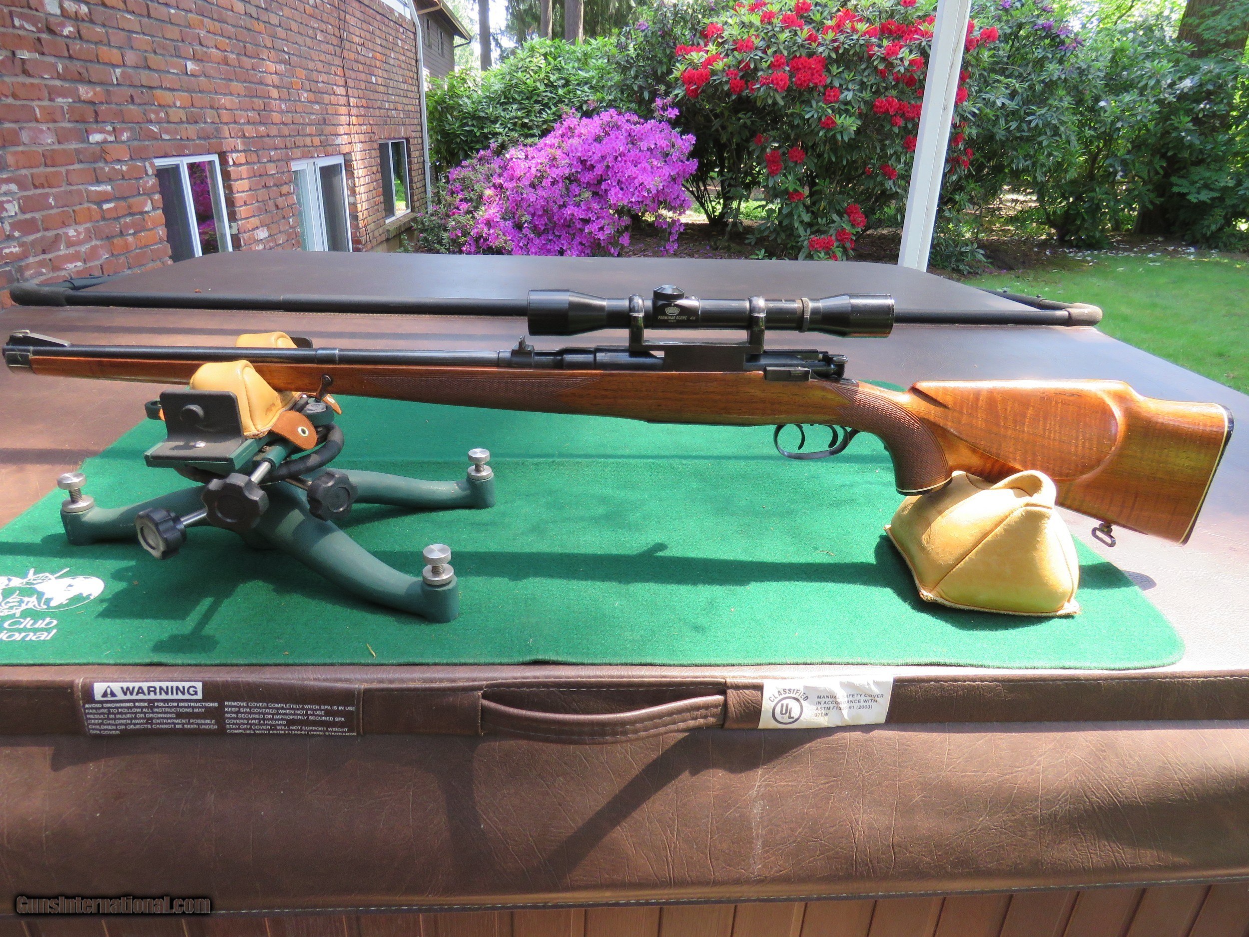 Description: Mannlicher Schoenaur Model 52 in 308 Win. with 4x Prominar Scope by Kowa, 20 inch barrel. Double set triggers with butter knife bolt that is as smooth as silk. The barrel is bright and in excellent condition. Original sling swivels and folding leaf sights, the hood is missing on the front sight. Checkering is sharp with very few handling marks. The scope mounts are side mount cleanly fitted. Bluing, wood, and bore are in excellent condition. This rifle is from a friend’s personal collection. No Sales to California and I will only ship to FFL holders in states where legal. Shipping $40.00 SOLD Curio/Relic: Yes Manufacturer: Mannlicher Schoenaur Model: Improved 52 Barrel Length: 20 Caliber Info: 308 Condition: Excellant Metal Condition: Excellant Wood Condition: Excellant Bore Condition: Excellant Action: Bolt Triggers: Double Set Stock: Full Length |