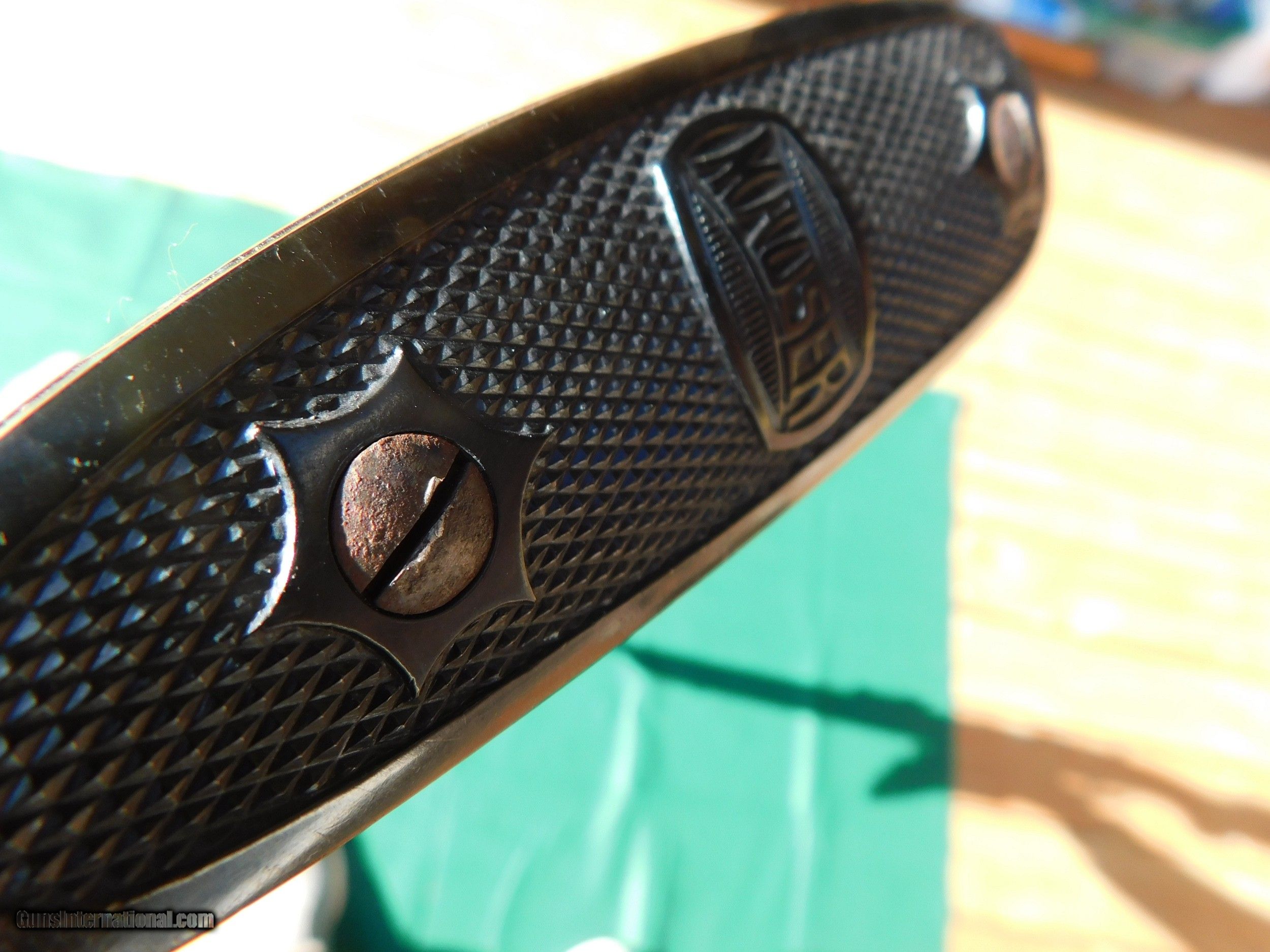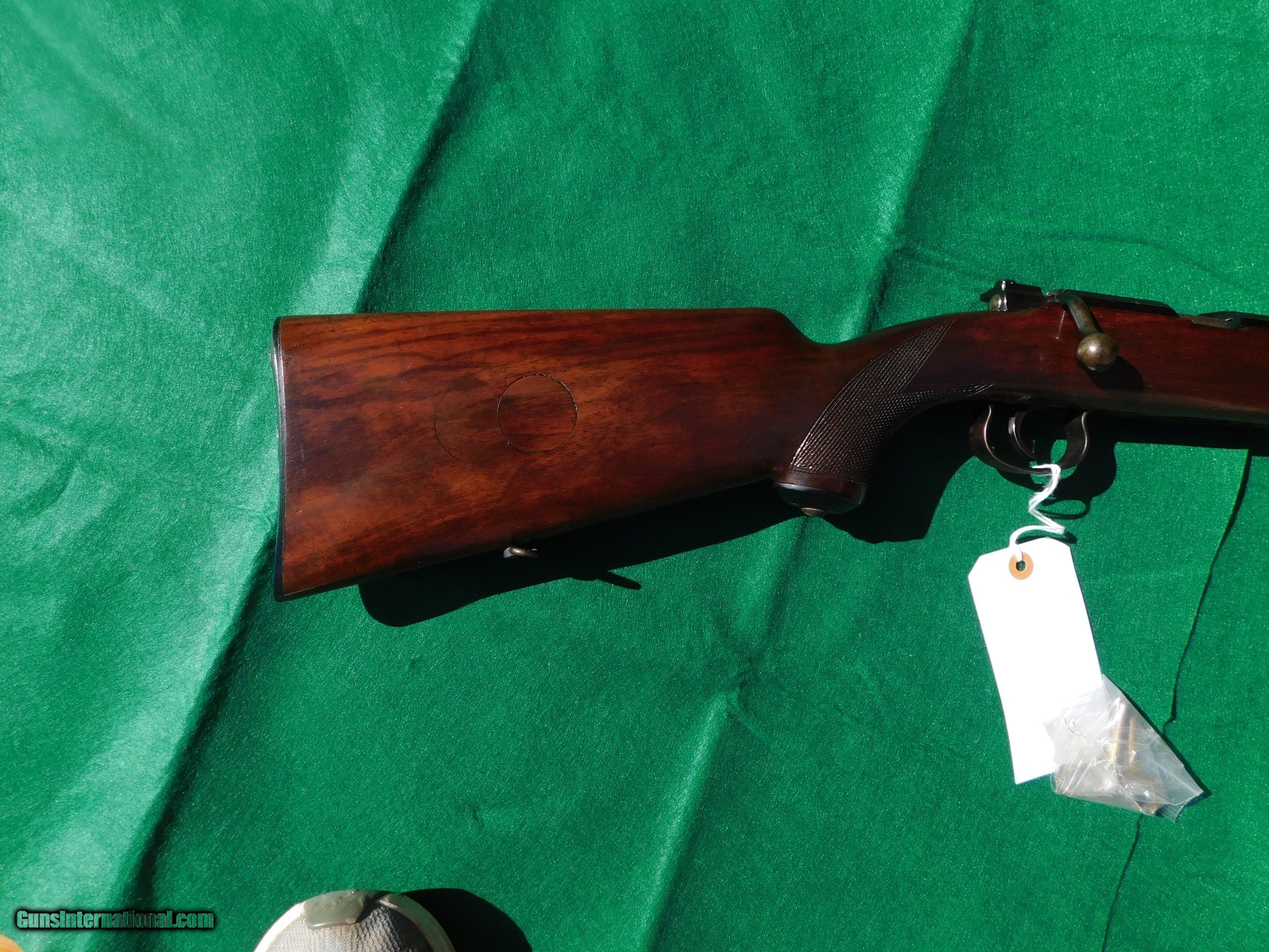 Description: SALE PENDING SCOTT W. ID. 2/12/23 Unique high quality 22 Mauser rifle in very good cond. Bright shiny boore It has the adj rear sight. The sight is not original to this rifle but is period corerct and comes with key. (came off a similer Geco) It has orgiinal sling swivels and issued stock with faint cartuche. Evidence of a repair to the stock blank appears which likley was done at the factory. There are good descriptions of these on Simpsons LTD Shiipping $ 59.00 PLEASE READ EVERYTHING BELOW IN BOLD: IF IT DOES NOT SAY ."SALE PENDING, UNDER DEPOSIT or ON HOLD"...IT IS AVAILABLE. WE DO NOT REPLY TO INQUIRIES THAT SAY "INTERESTED IN THIS GUN" OR "IS IT AVAILABLE" IF YOU WOULD LIKE TO BUY THIS OR ANY OF OUR GUNS WE SUGGEST YOU PHONE US; WE ARE OFTEN AVAIALABLE LONG HOURS. IF YOU ARE INTERSTED IN A GUN THAT IS UNDER DEPOSIT AND WOULD LIKE TO BE NOTIFIED IF A SIMILAR GUN COMES IN DROP US A LINE AND WE WILL MAKE EFFORTS TO CONTACT YOU WHEN ONE DOES COME IN. WE HAVE OVER 2000 SALES ON ALL SITES WITH AN A+ RATING ON ALL WE ALSO KEEP AN INVENTORY OF OLDER PERIOD CORRECT SCOPES AND VINTAGE HARD TO FIND AMMO... CALL WITH NEEDS WE MOSTLY PICK VERY CLEAN AND LIGHLTY USED GUNS. WE ARE HAPPY TO TAKE CONSIGNMENT GUNS AND COLLECTIONS OR WILL BUY YOURS OUTRIGHT. WE SOMETIMES ARE EMPLOYED FOR ESTATE PURPOSES AND VALUATIONS. CT RESIDENTS MUST CONTACT US TO UNDERSTAND OUR IN STATE TRANSFER POLICIES. PAYMENT USPS MONEY ORDER OR BANK CHECK UNLESS WE HAVE AGREED OTHERWISE IT IS THE BUYERS RESPONSIBILITY TO GET US A COPY OF YOUR RECEIVING FFL'S LIC IF POSSIBLE AND A COPY OF YOUR PHOTO ID BEFORE THE GUN SHIPS YOU MUST CALL OR CONTACT YOUR FFL.WE DO NOT CALL FOR YOU UNLESS THEY RQUIRE IT. LAYAWAY PURCHASES NOT COMPLETED ON ANY RETURNED ITEM UNLESS NOT AS DESCRIBED OR DAMAGED ARE SUBJECT TO A 10% RELISTING/RESTOCKING FEE AND MUST BE RETURNED WITH NO NEW MARKS OR SCRATCHES, SENT BACK INSURED, PRIORITY SIGNATURE REQUIRED. ALL INFORMATION CONTAINED HEREIN IS BELIEVED TO BE ACCURATE BUT IS NOT GUARANTEED. WITH ANY OLDER OR USED GUN IT SHOULD BE EXAMINED BY A GUNSMITH OR COMPETENT EXPERT PRIOR TO USE SOLD |