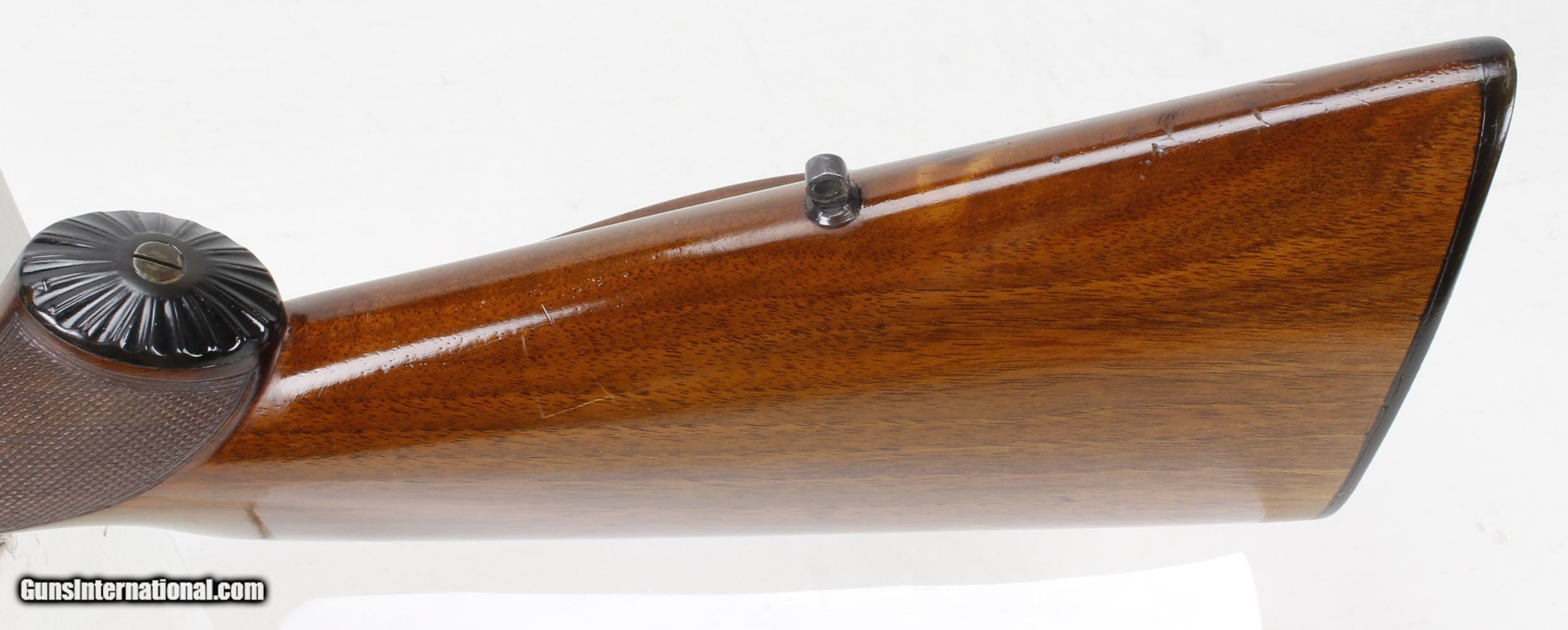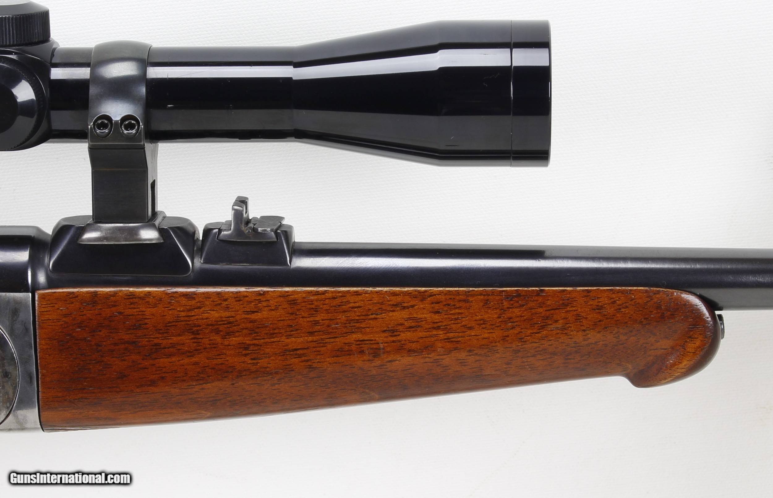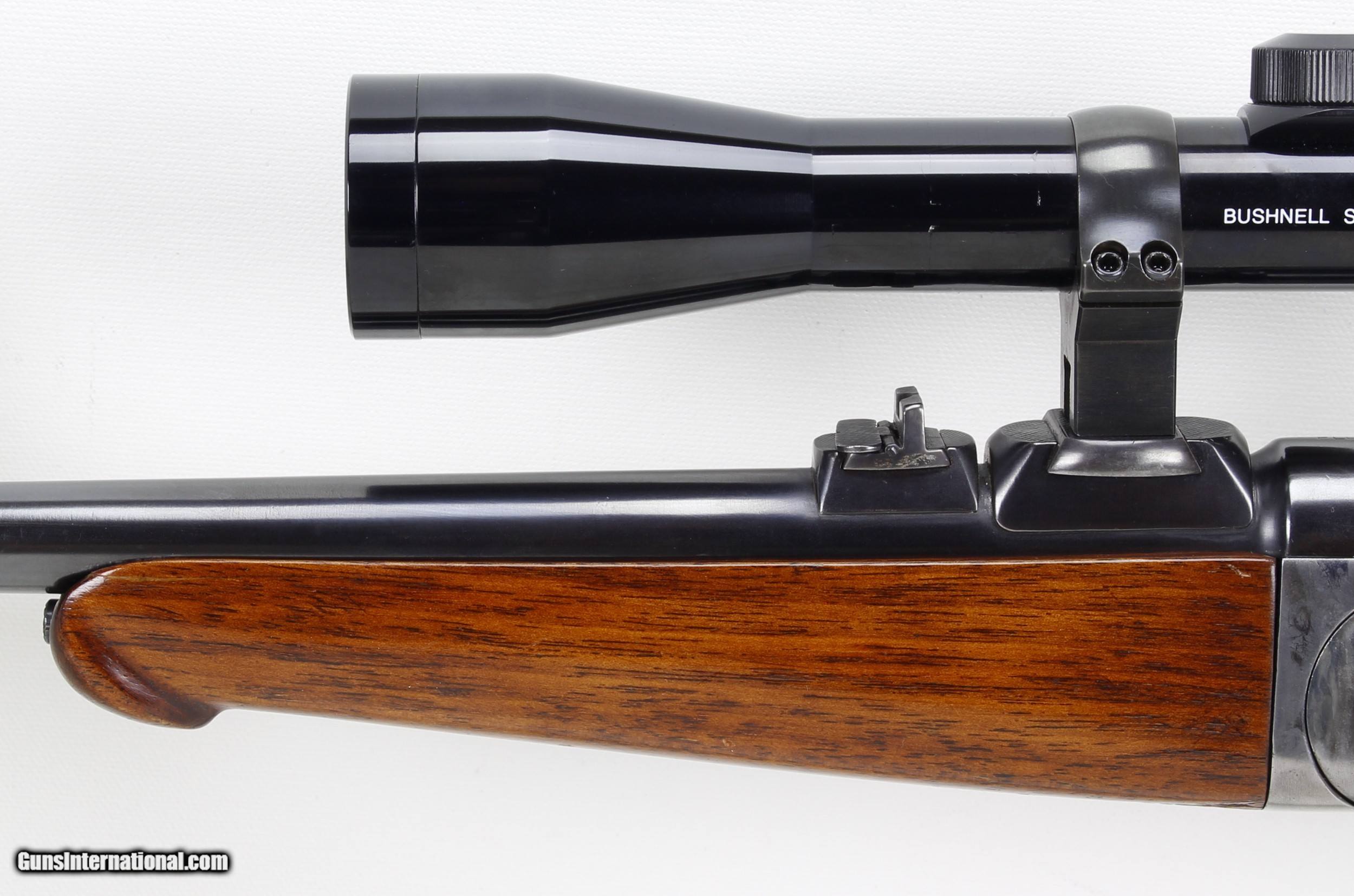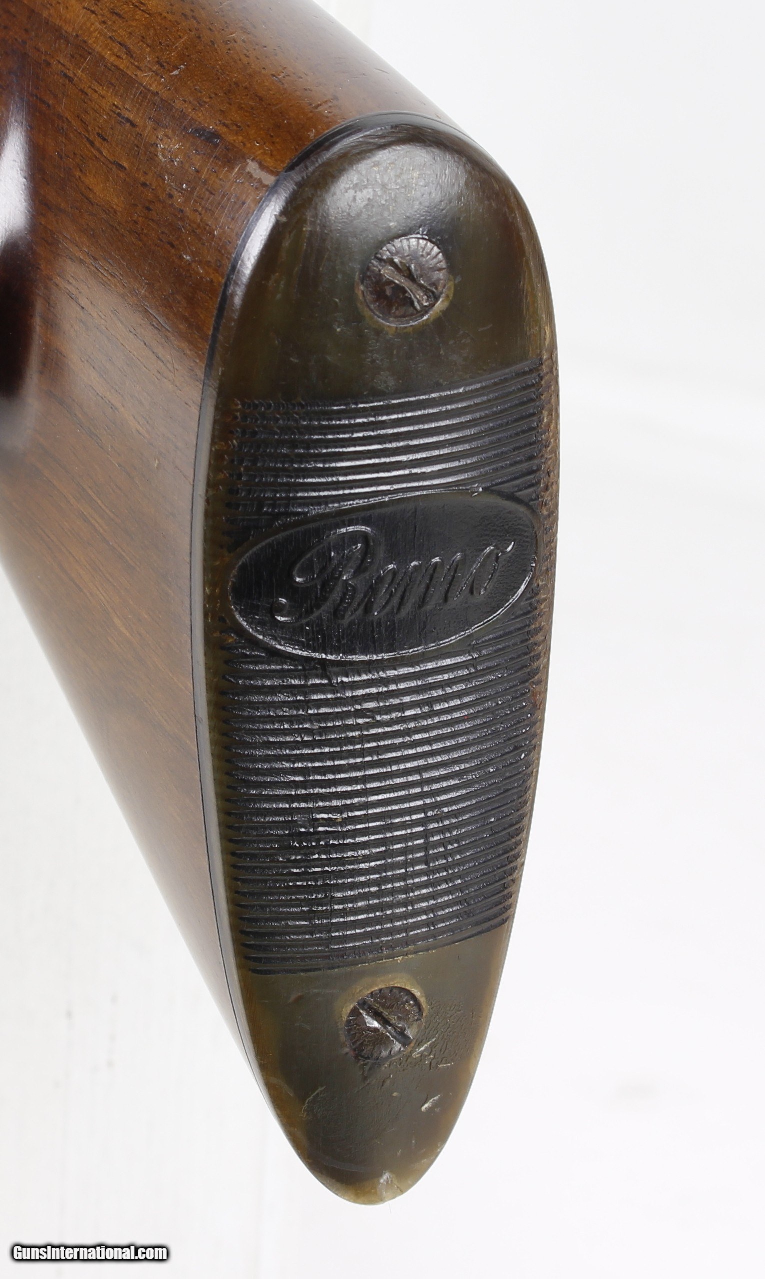 Description: REMO, Model K, GERMAN STALKING RIFLE, 24 3/4" Tapered Barrel with a Fine Bore. Bright with strong rifling. Excellent Bushnell Sportview Scope, 4 x32. Fine Quick Release Claw Mounts, Original Sights. Two leaf rear flip up sight. The Beautiful Checkered Walnut Sporting Stock & Fore-End has been nicely refinished. DOUBLE SET TRIGGERS, Sets at 8ozs. Caliber: 8.15 x 46R. Ammo Available Online. Weight: 6 1/4 lbs without scope, 6 3/4 lbs with scope. If you ever wanted a European Stalking Rifle, This is a fine one at a good price> Ships to Lower 48, With Insurance: $55.00 SN#31694, MFG: 1920's. EST. SOLD Curio/Relic: Yes |