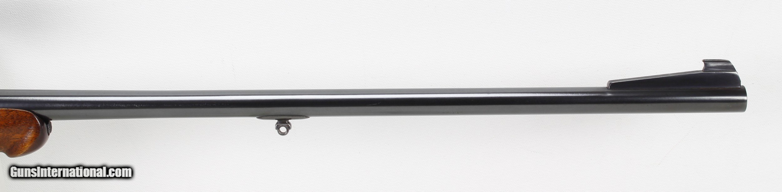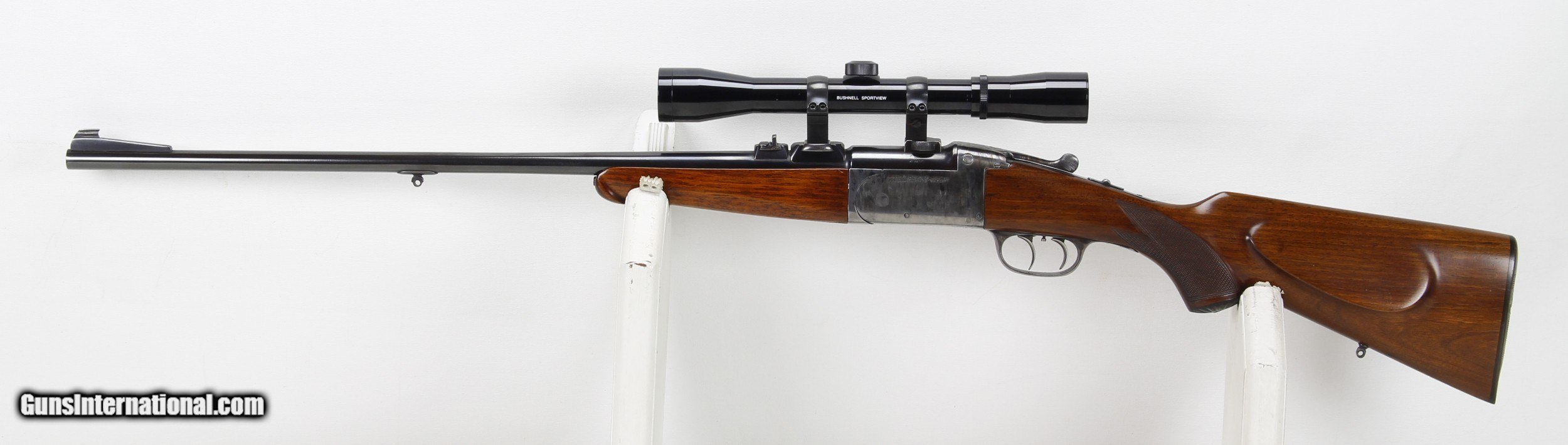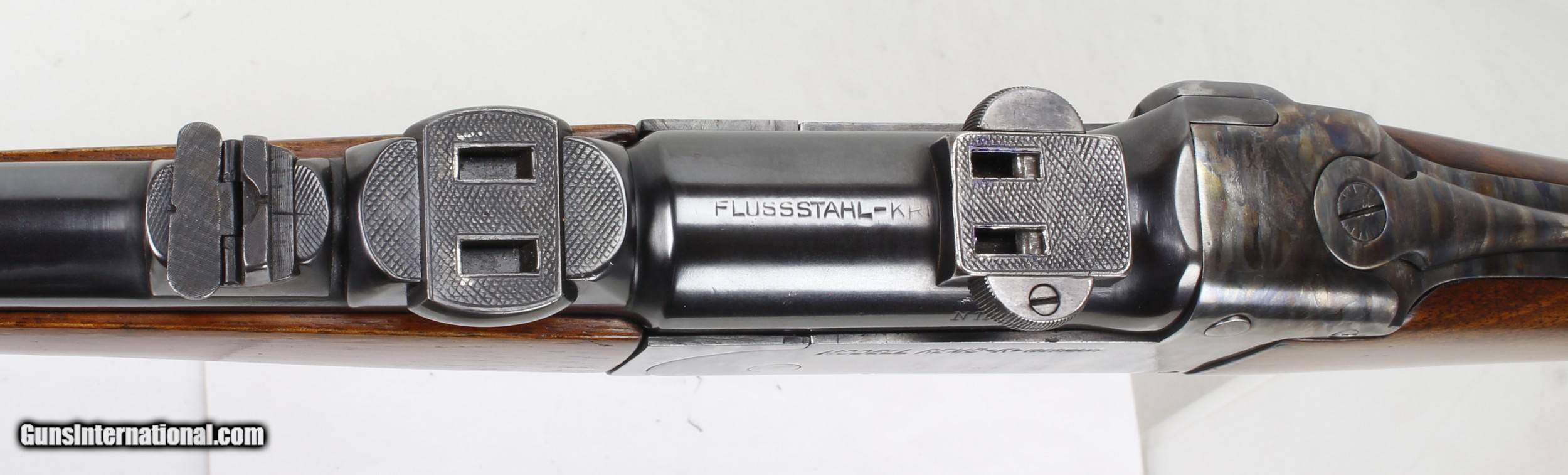 Description: REMO, Model K, GERMAN STALKING RIFLE, 24 3/4" Tapered Barrel with a Fine Bore. Bright with strong rifling. Excellent Bushnell Sportview Scope, 4 x32. Fine Quick Release Claw Mounts, Original Sights. Two leaf rear flip up sight. The Beautiful Checkered Walnut Sporting Stock & Fore-End has been nicely refinished. DOUBLE SET TRIGGERS, Sets at 8ozs. Caliber: 8.15 x 46R. Ammo Available Online. Weight: 6 1/4 lbs without scope, 6 3/4 lbs with scope. If you ever wanted a European Stalking Rifle, This is a fine one at a good price> Ships to Lower 48, With Insurance: $55.00 SN#31694, MFG: 1920's. EST. SOLD Curio/Relic: Yes |