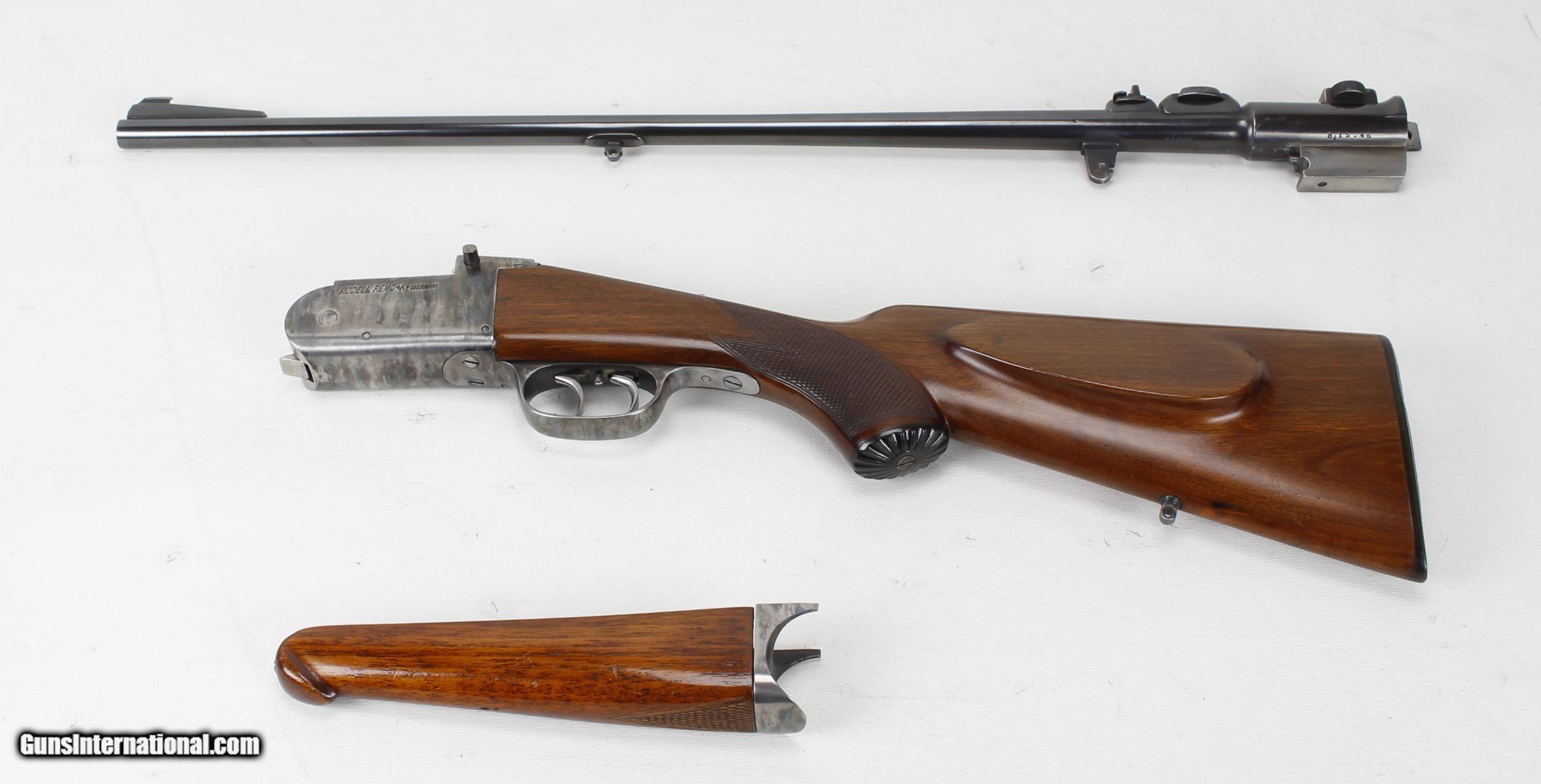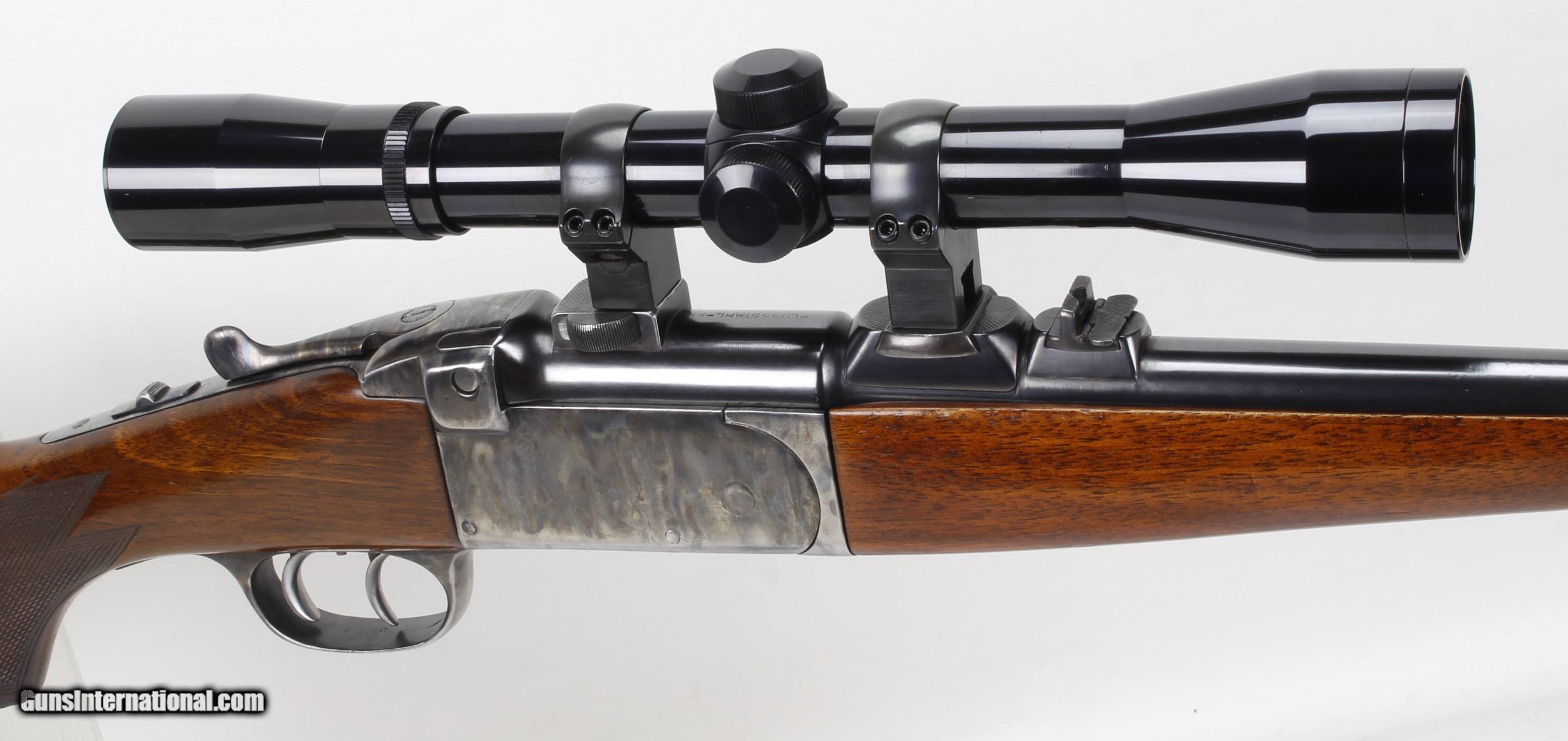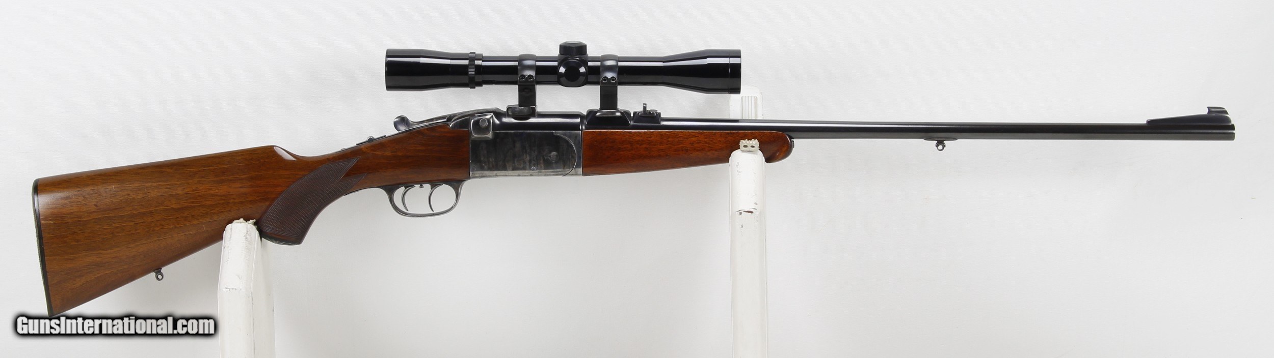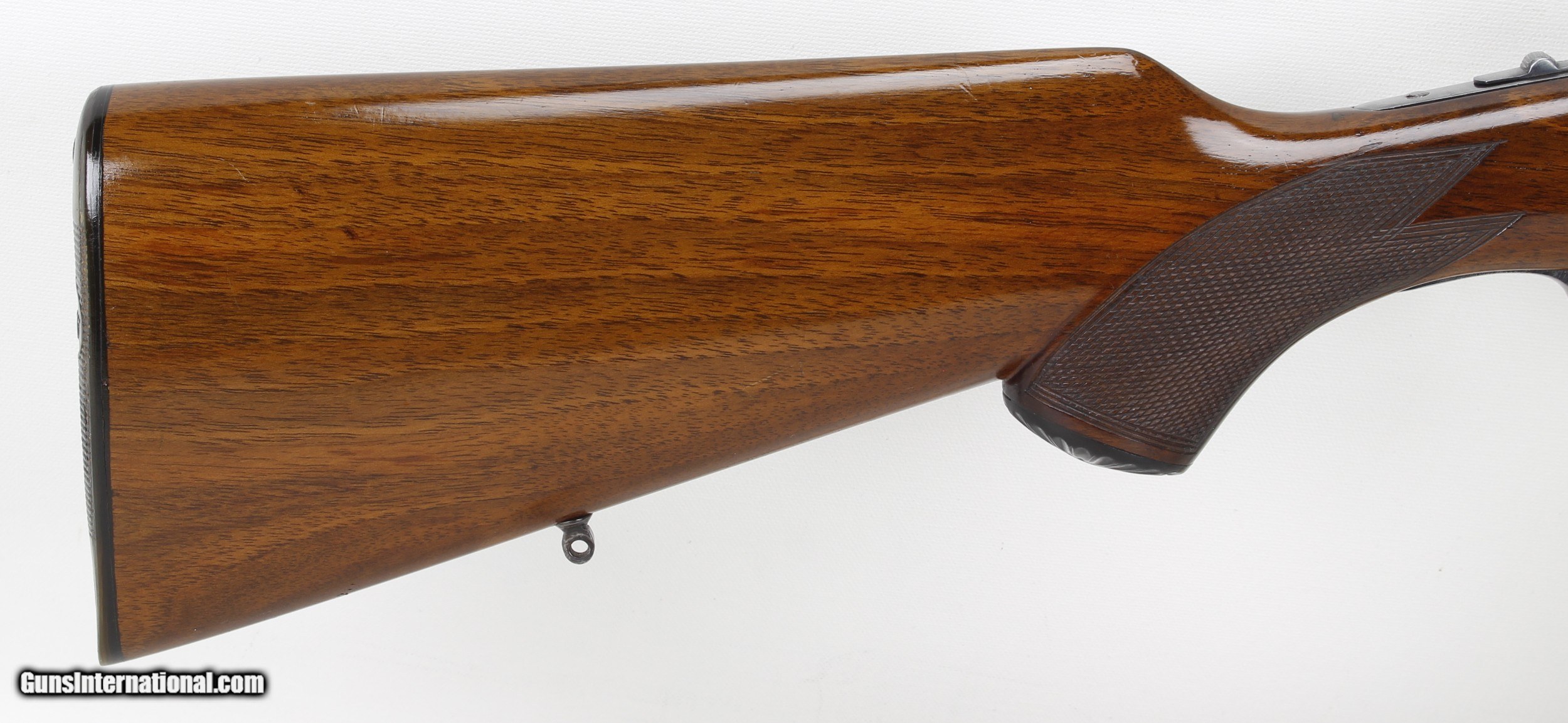 Description: REMO, Model K, GERMAN STALKING RIFLE, 24 3/4" Tapered Barrel with a Fine Bore. Bright with strong rifling. Excellent Bushnell Sportview Scope, 4 x32. Fine Quick Release Claw Mounts, Original Sights. Two leaf rear flip up sight. The Beautiful Checkered Walnut Sporting Stock & Fore-End has been nicely refinished. DOUBLE SET TRIGGERS, Sets at 8ozs. Caliber: 8.15 x 46R. Ammo Available Online. Weight: 6 1/4 lbs without scope, 6 3/4 lbs with scope. If you ever wanted a European Stalking Rifle, This is a fine one at a good price> Ships to Lower 48, With Insurance: $55.00 SN#31694, MFG: 1920's. EST. SOLD Curio/Relic: Yes |