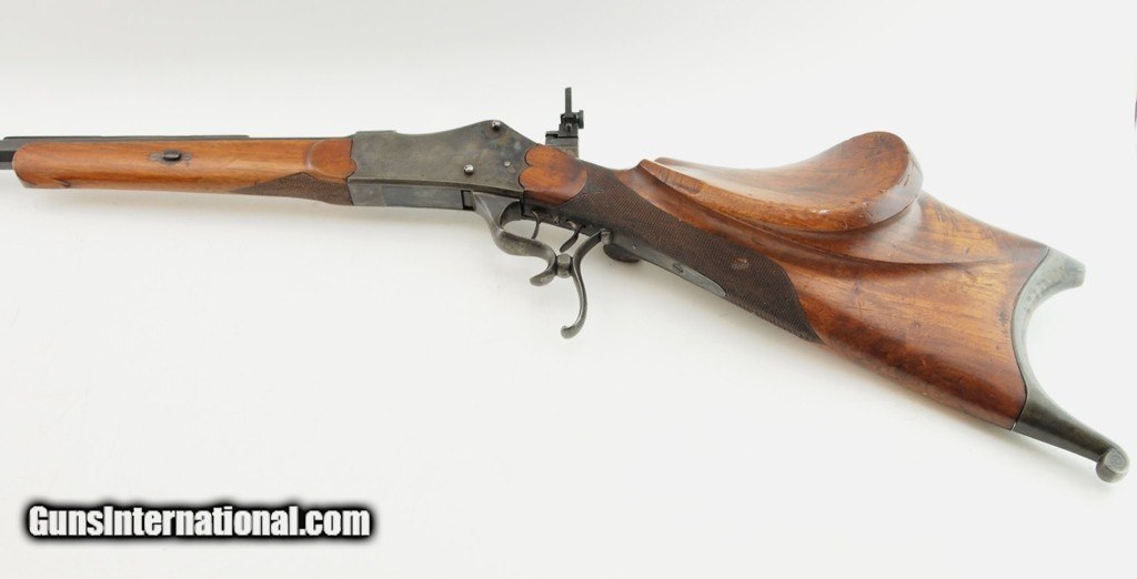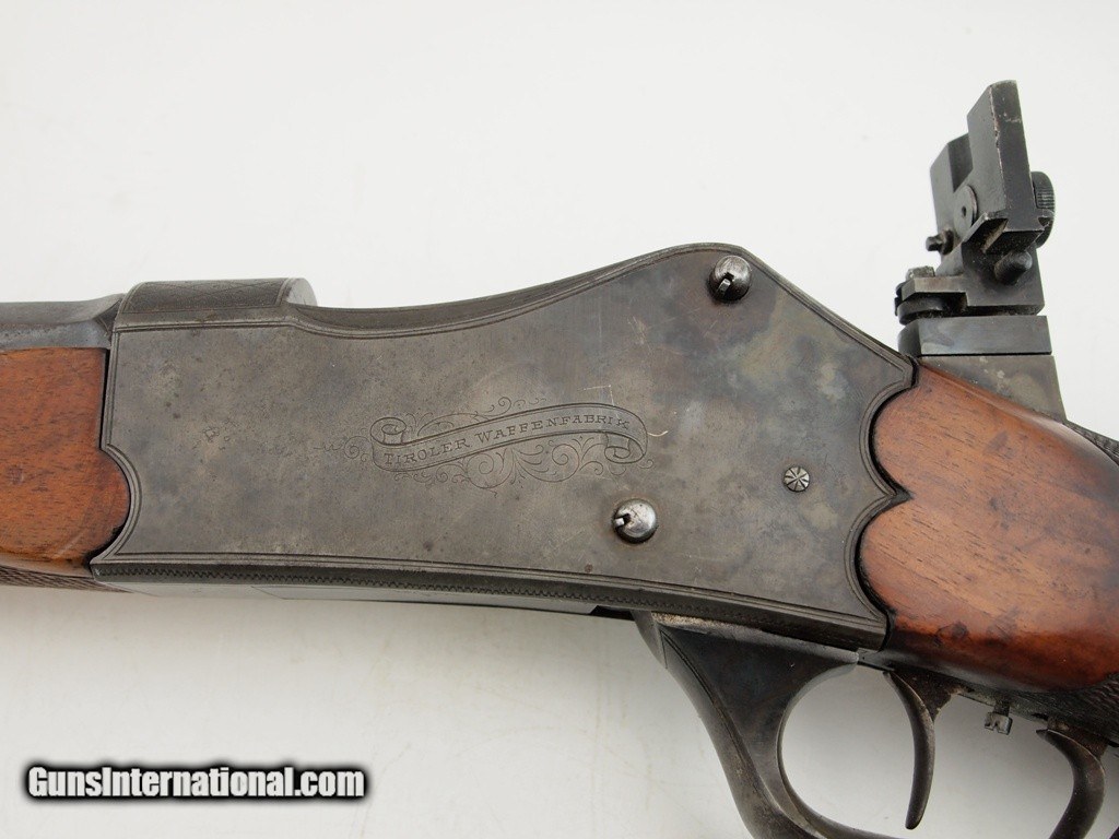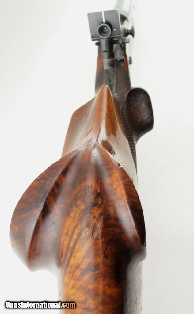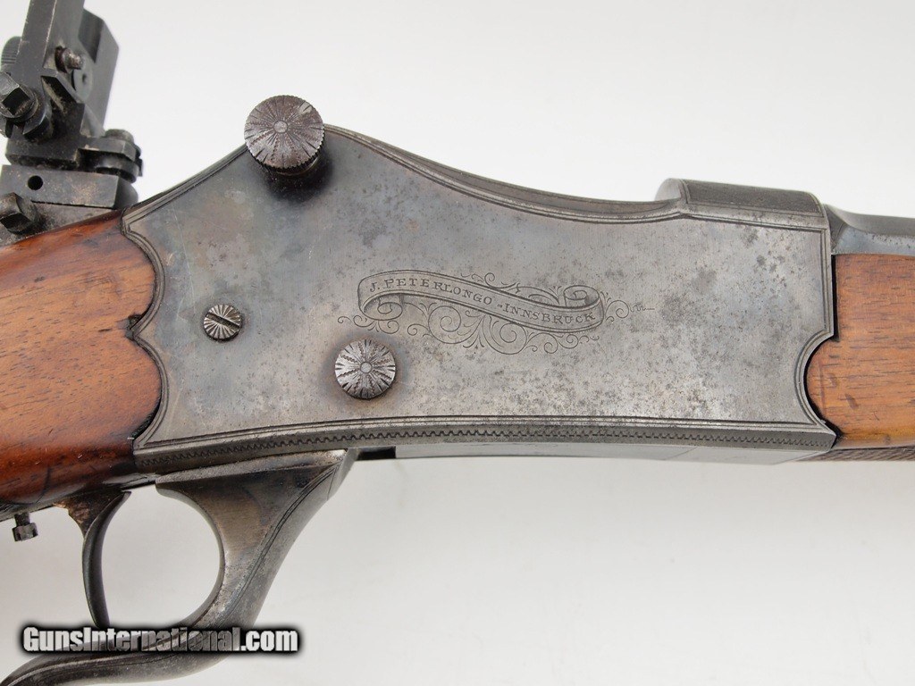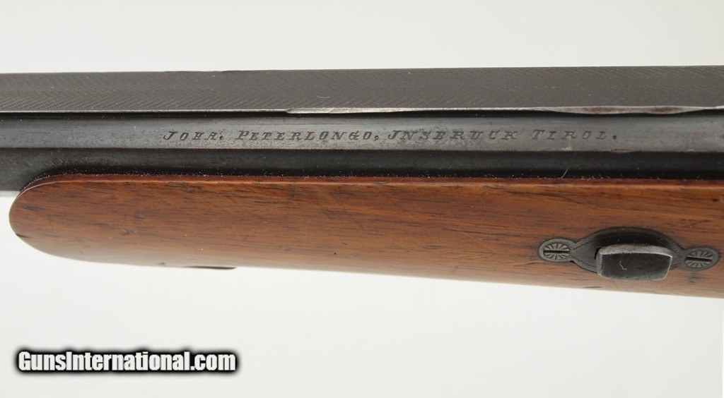 Description: Martini action / Schuetzen Rifle built by John Peterlongo. Chamber cast is either 8x48R Sauer or 8.16x46R caliber. 29 1/2in octagon barrel. Right side of receiver is "J. Peterlongo - Innsbruck" Right side of Barrel is Tiroler Waffen - Fabrik Left side of receiver is Tiroler Waffenfabrik Left side of Barrel is John Peterlongo, Jnseruck Tirol Double triggers and target peep rear sight Nice wood with some handling marks Bore is in good shape. Selling As-Is, No Return. C&R ok. Add 3% for Credit Card Shipping $40.00 SOLD |