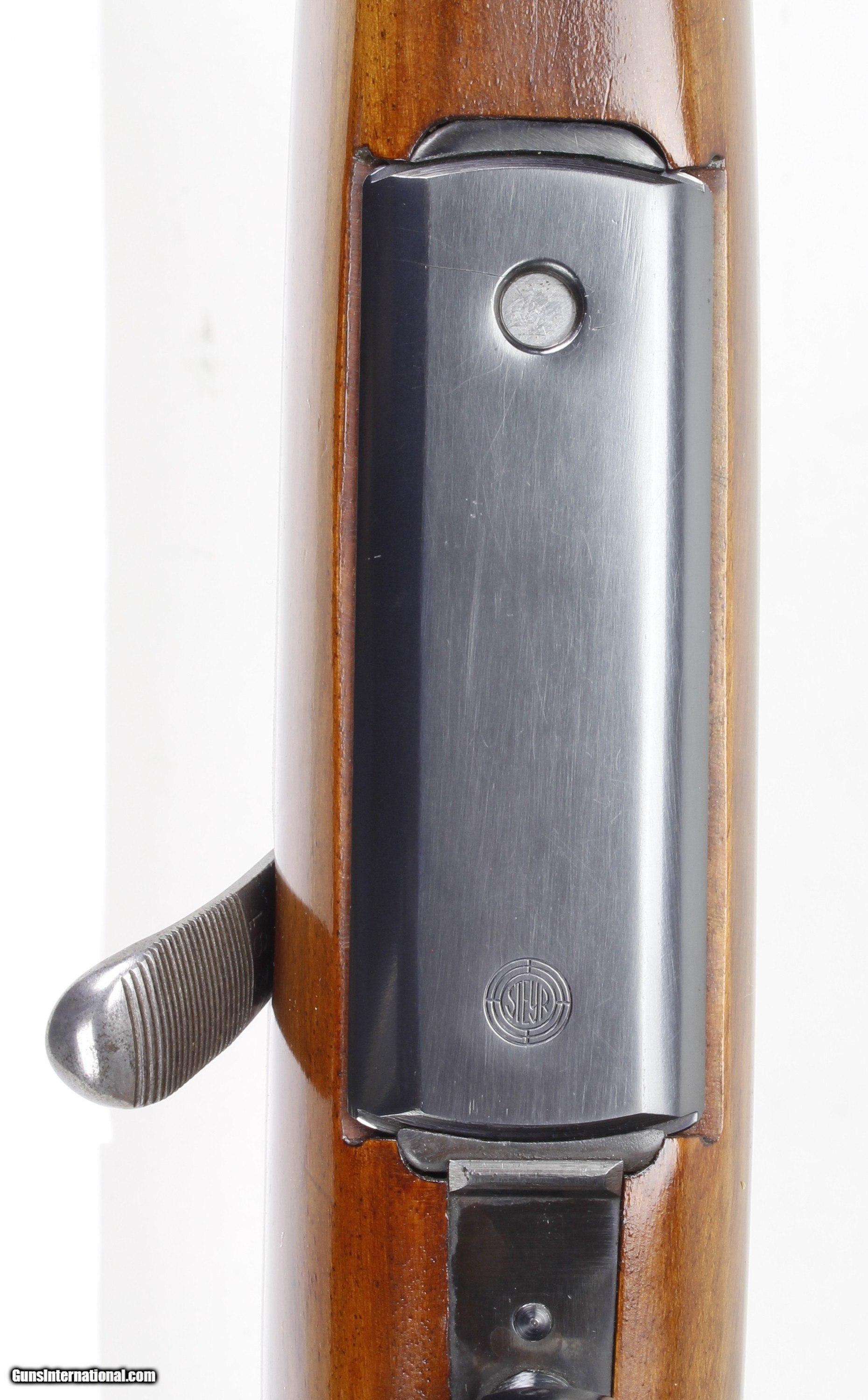 Description: STEYR-DAIMLER-PUCH, MANNLICHER SCHOENAUR, 308WIN, 20" Barrel, Excellent Bore, Double Set Triggers, Set at 1lb Pull. Redfield Scope Bases, With Peep Sight Built In to Bases. SN#44836. MFG: 1950's. Ships to Lower 48, W/Insurance: $50.00 SOLD Curio/Relic: Yes |