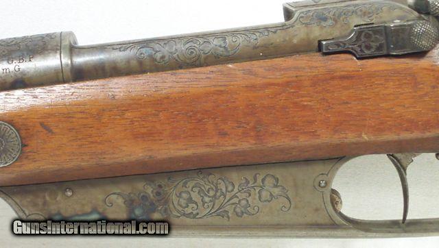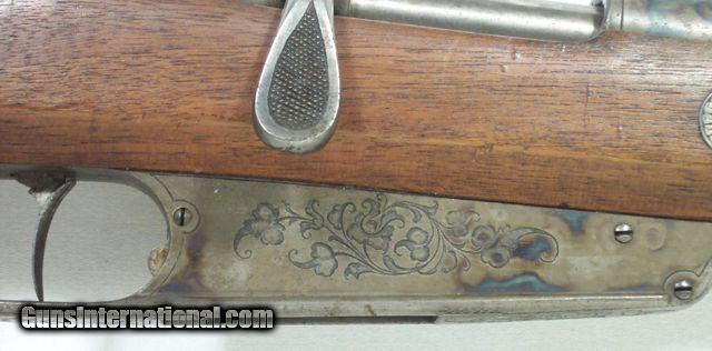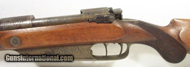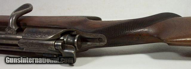 Description: SOLD!!! Very high quality antique German Sporting Rifle made by Schilling in Suhl Germany; best I can tell it is some sort of 8mm short cartridge; 24” octagon bbl. with EXCELLENT bore; double set triggers; checkered spoon bill bolt; PERFECT function; nicely engraved case colored action; good amount of original blue turning patina on bbl.; 13 ½” pull to engraved butt plate; #20598 on butt plate; VERY HIGH QUALITY ANTIQUE GERMAN SPORTING RIFLE; antique, no FFL/C&R required for out of state shipping; from my own personal collection; All items shipped fully insured Priority Mail- -Hand guns $30 --Long guns $45-- Spurs $30-- Knives, Swords & Sabers $30—Grips $20; return policy: three days inspection from the date the item is received; full refund of shipping both ways ONLY IF THE ITEM IS MISREPRESENTED. SOLD Antique: Yes Manufacturer: V.Chr. Schilling Model: German Sssporting |