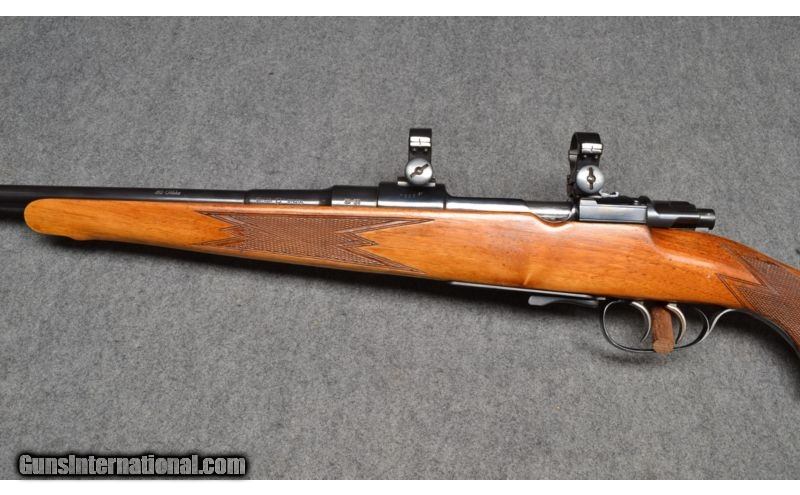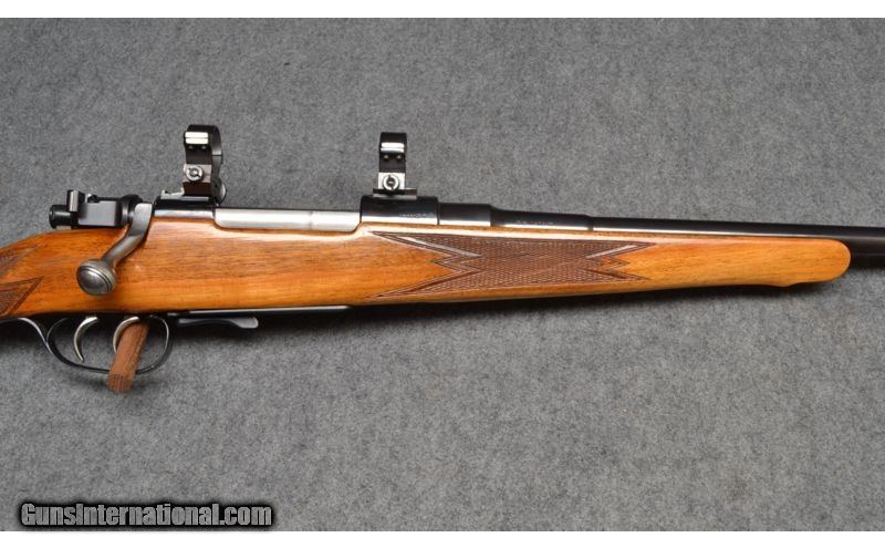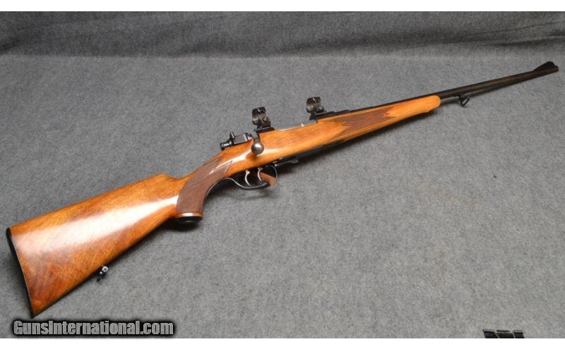 Description: SOLD Caliber Info: .30 Gibbs. Chambers: Bolt-action rifle. Metal Condition: Very Good Wood Condition: Good Bore Condition: Very Good Barrels: 24 Triggers: Double, Set Trigger Stock: Wood, Checkered Stock Dimensions: 14.50" LOP Fore End: Wood, Checkered Butt Pad: Grooved Plastic Plate Weight: 7.05 lbs Sights: Front Sight Only, Scope Rings Included Item Location: Wichita, KS |