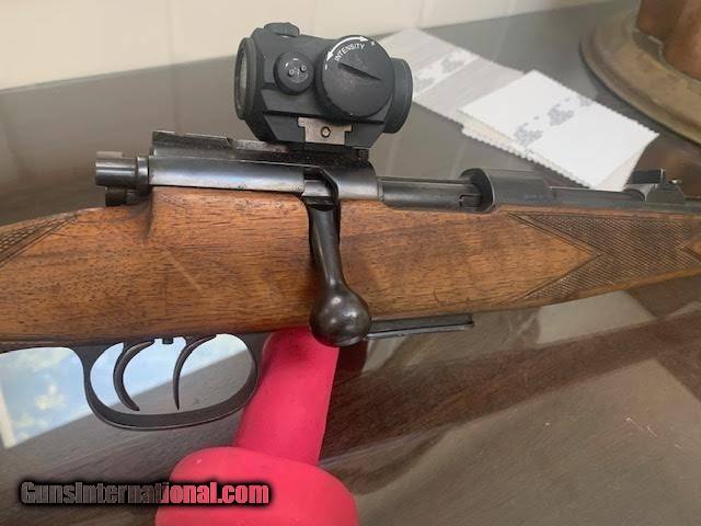 Description: Rare prewar .22 hornet ZIDI. Made in Suhl. Aimpoint Micro mounted on the rifles factory 11mm dovetail receiver rail. Butt plate marked "DIEM" This rifle is not drilled or tapped. $1500 Shipped. SOLD |