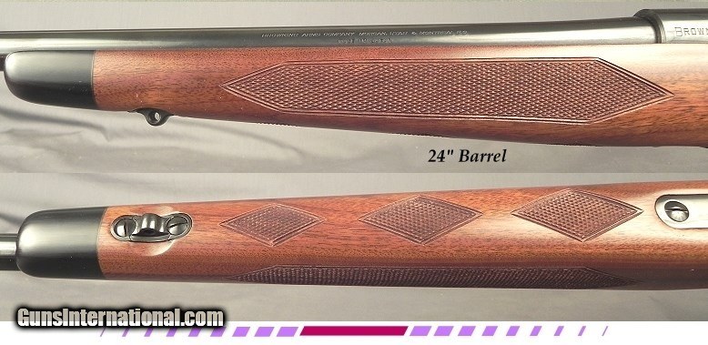 Description: #0343NZ496, Browning 22LR Model 52 Sporter Limited Edition, Identical to the Original Winchester Model 52C Sporter, Totally appears unfired and remains in the factory box, Made in Japan, 22 Long Rifle, Made 1991, 24" barrel without open sights, Factory scope bases with 1" rings, Micro Motion trigger with full adjustment, Standard sliding safety on the right side ahead of the bolt handle, Sporter stock with 13 3/4" LOP over the Browning buttplate, Point pattern checkering, Ebony forend tip, Steel grip cap, Double screw sling swivel bases, Cheekpiece, Slight Monte Carlo stock, 7 lbs. 4 oz. as is without the bases and rings, The factory original high gloss blue overall is 100%, The original wood finish at 99.9%, The checkering is 100%, The bore is new. Browning Arms Co. offered these Model 52's on a limited basis and stated that 5000 were made available in 1991 & 1992. SOLD |