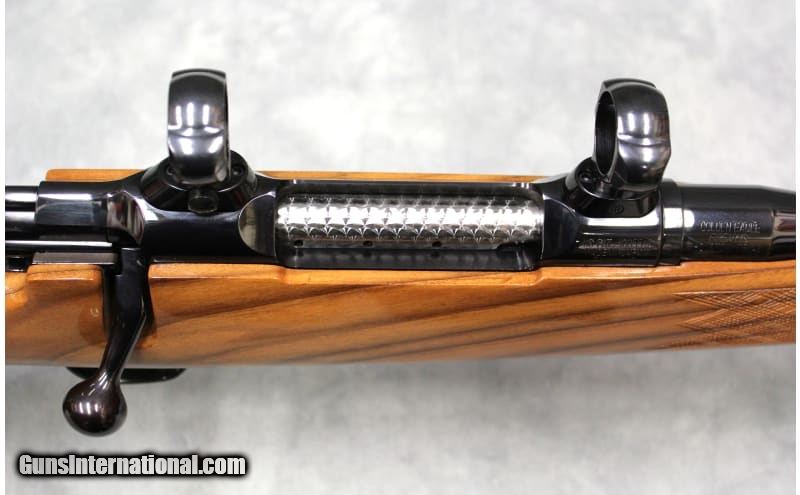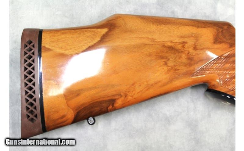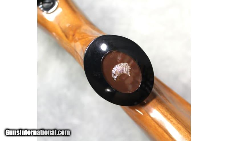 Description: This is a USED Golden State Arms, Model 7000 "Golden Eagle" chambered in .300 Winchester Magnum and manufactured in Japan in the late 1970s/early 80s. This rifle features a 24" barrel, stunning English walnut stock with skip-line checkering, a light ebony forend tip, a rich blued finish on the barrel and receiver, jeweled bolt, gold trigger, and a drilled/tapped receiver for a scope mount. The rifle is in excellent working order with a fully functional action, and a light, crisp trigger. The bore is mostly brilliant, with some very minor roughness at the muzzle end. Some areas of finish wear and stock scuffs/dings can be seen. This rifle would be an excellent big game hunting rifle! .300 Winchester Magnum SOLD Metal Condition: Overall Excellent with some scratches on the internal magazine floor plate. Wood Condition: Overall Excellent with some light scratches and marks from handling/use. Please Note there are some scratches on the left side of the stock between the receiver and trigger. Bore Condition: Excellent Barrels: 24 Weight: 9 LBS Item Location: Las Vegas, NV |