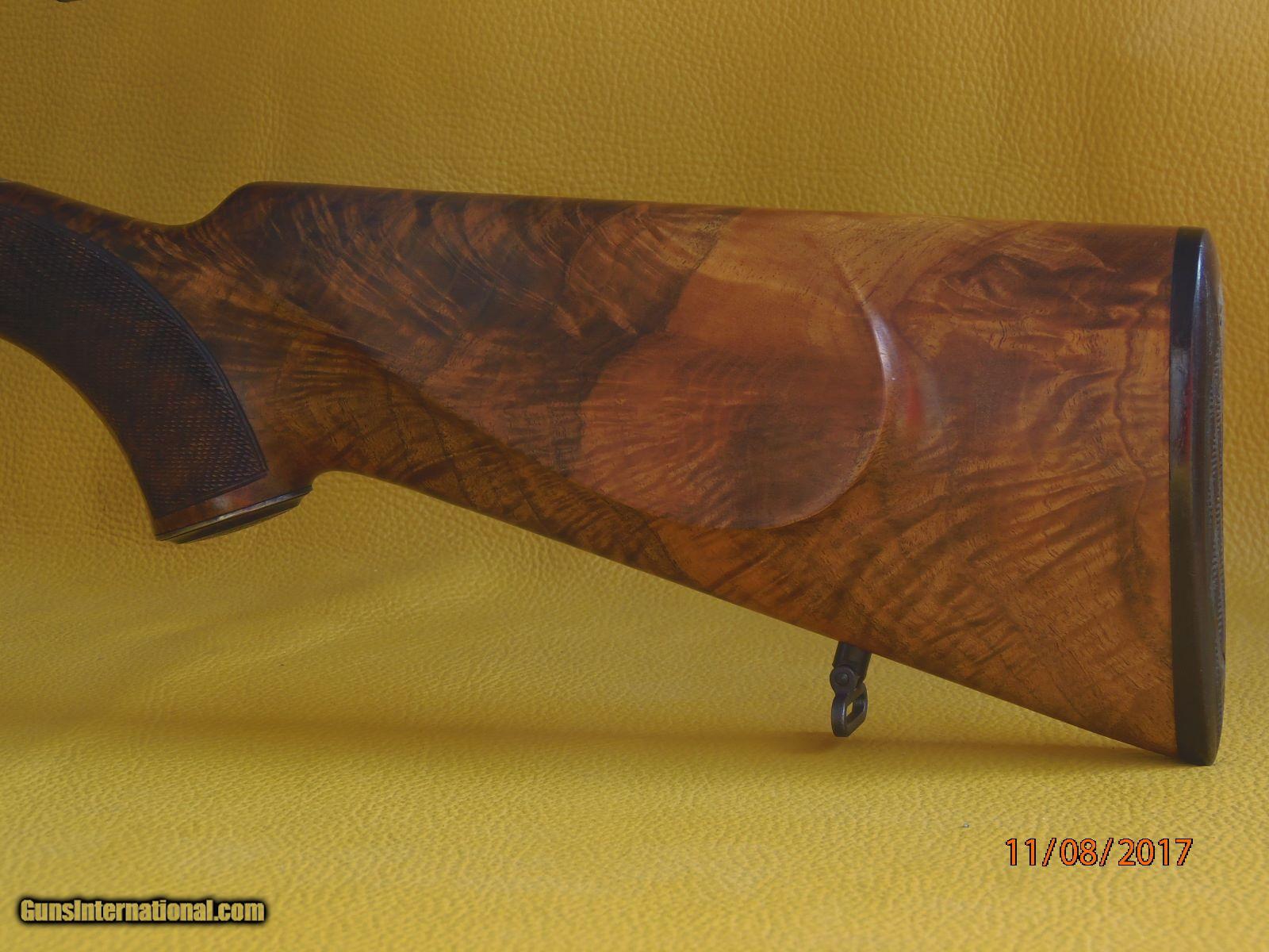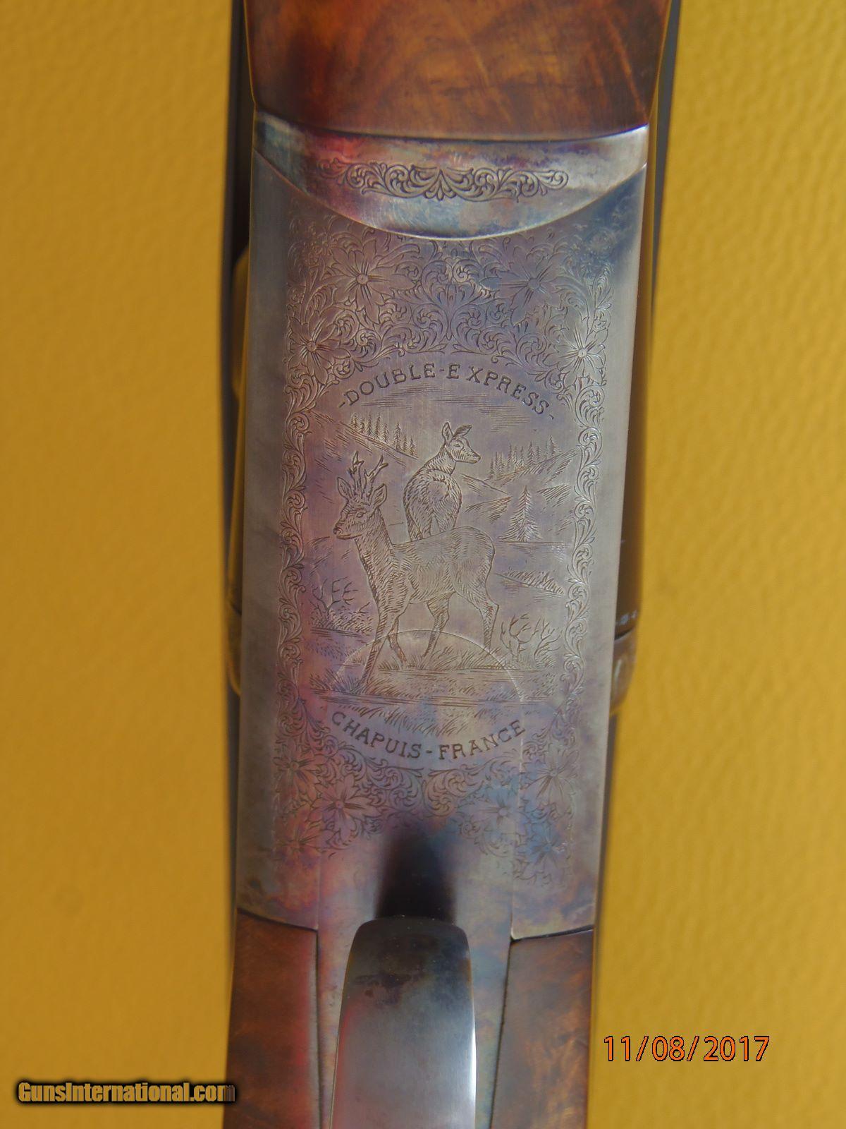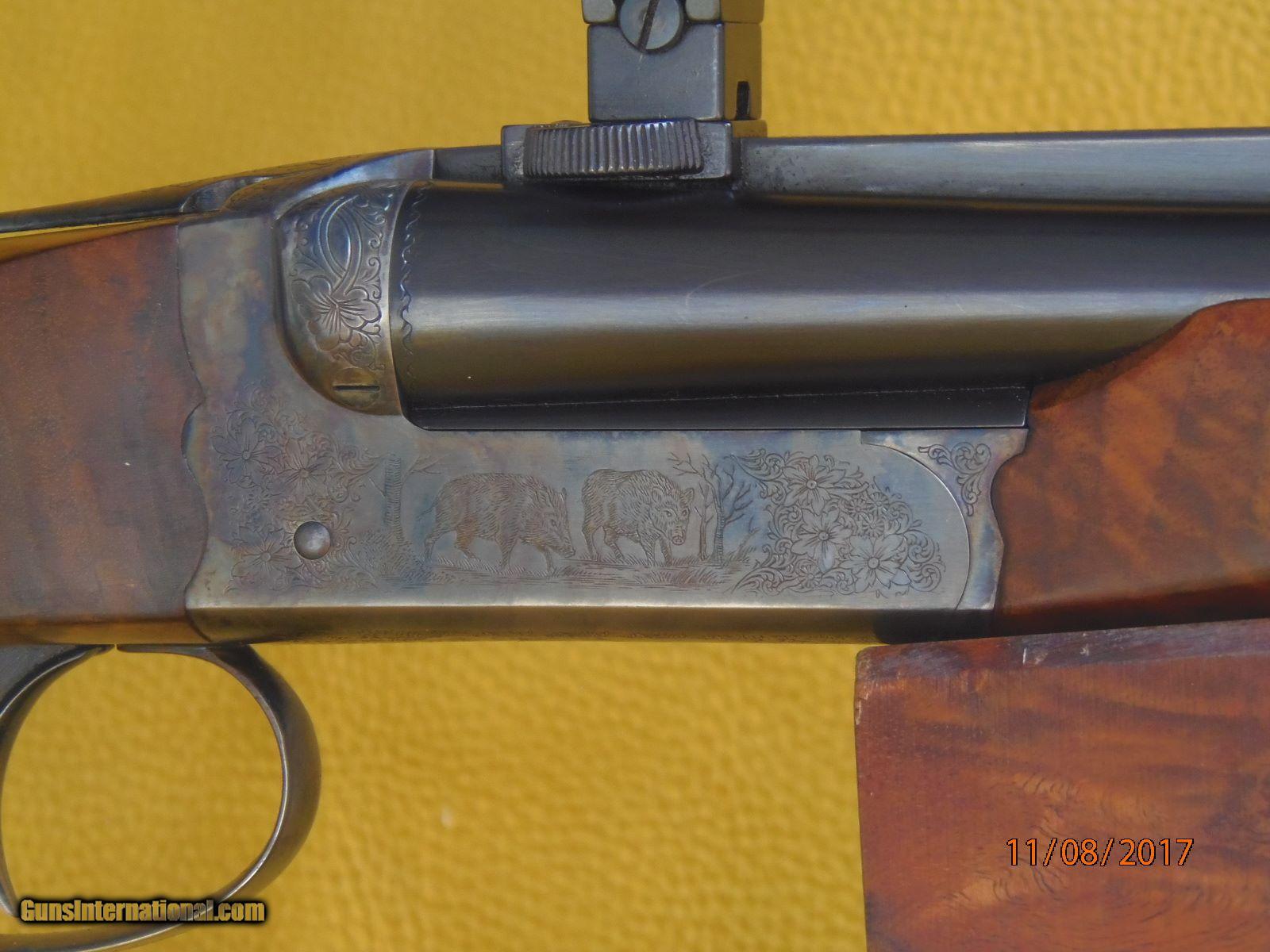 Description: Sold!!! #33946 Chapuis RGEX 7x65R and 20 Ga 3” ejector , scoped and cased. Made in 2001 , our import , a double rifle with a 23 ½” barrel in 7 x65 R and an extra 27 ½ “ barrel in 20 Ga 3 “. Both with ejectors and individual forend. All bores and chambers are like new , blacking is 98% + original condition. The rifle has a claw mounted Schmidt and Bender 1.5 to 6 x 42 rail scope with a number 4 reticule. Regulated at 100 Yards for handload ; 154 Gr bullet and 53 gr of IMR 4350. The shotgun tubes are chocked .010” and .020” SK2 and Imp Mod. Both barrels have sling swivels , Weight Is 6#11oz 20ga , 7#9oz rifle without scope , 8#14oz with scope. Long tang trigger guard, steel grip cap. Action and furnitures are case color harden and retain 75% of the original colors. Great mechanical condition, with good trigger pulls Tight on face, strong ejectors. Stock is 15 ¼” long over a .600” ebony checkered butt plate, dimensions with the shotgun tubes are 1 3/8” and 2 ½” drop , ¼” cast off. All the wood finish and checkering is in 90% plus original condition and with grain that has great character. Replacement cost is north of $14K. SOLD Manufacturer: Chapuis Armes France Model: RGEX Serial Number: 33946 Caliber Info: 7x65R - 20Ga Ejectors: Yes Condition: Great Wood Condition: 90% + LOP: 15 1/4 Manufacture Date: 2001 Extras: Scope Case: Yes |