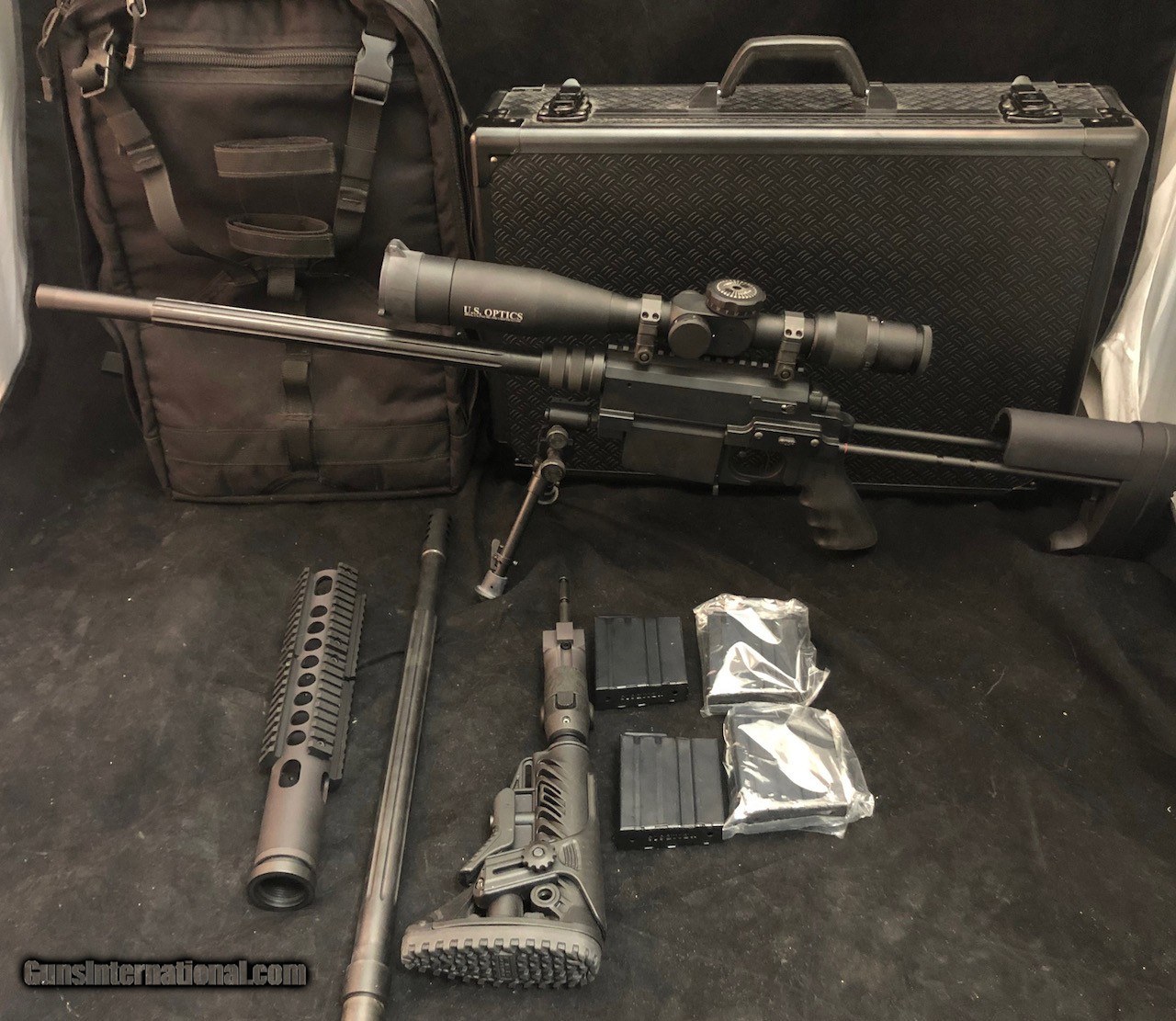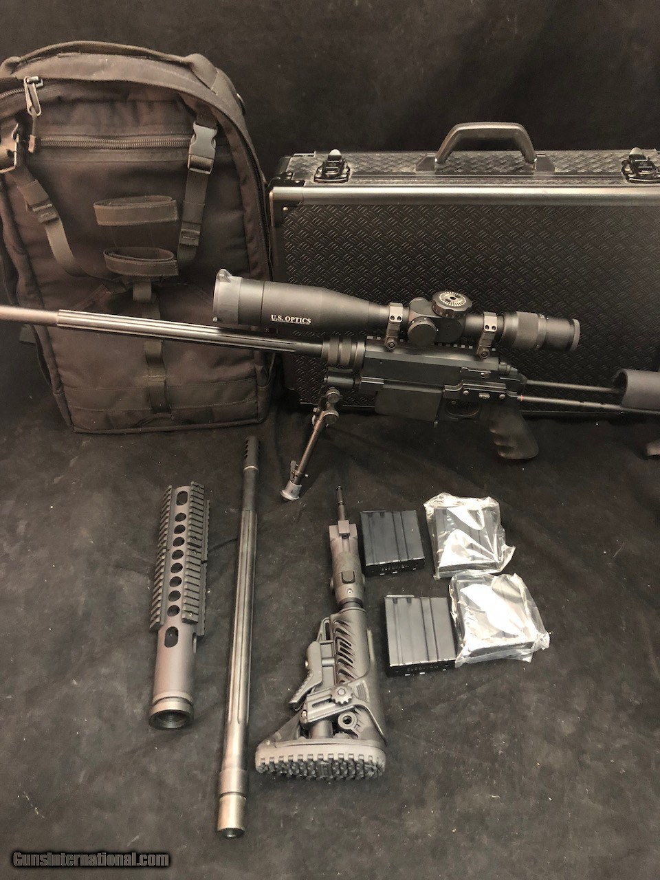 Description: Offered for sale is a Nemisis Arms Multi Caliber Takedown Rifle Systems model Model: Vanquish Caliber: 300WSM Accessories : Briefcase carrying case Backpack carrying case (accommodates armor plate) 4 magazines Extra brl (300WSM) with Picatinny railed handguard barrel nut Extra muzzle break Bipod Forward bipod attachment Optics: US Optics 3.2x-17x with FDN 17X GAP reticle. Night force scope rings. This rifle is in like new condition with a LOW round count. The two barrels of the same caliber are so the rifle can be set up with the original no handguard configuration or with the barrel with the handguard configuration. The barrels can be removed and reinstalled while maintaining a 1/2 MOA 600yds. IMPRESSIVE. The optic goes without saying. THE BEST! There is a three day non-firing inspection available upon receipt by the FFL. Shipping wil be actual cost of shipping plus insurance. There is a 3% additional charge for using a credit card for payment. SOLD Rifle Caliber: .300 Winchester Short Magnum Manufacturer: Nemesis Model: Vanquish Action: Bolt Sights: Telescopic |
