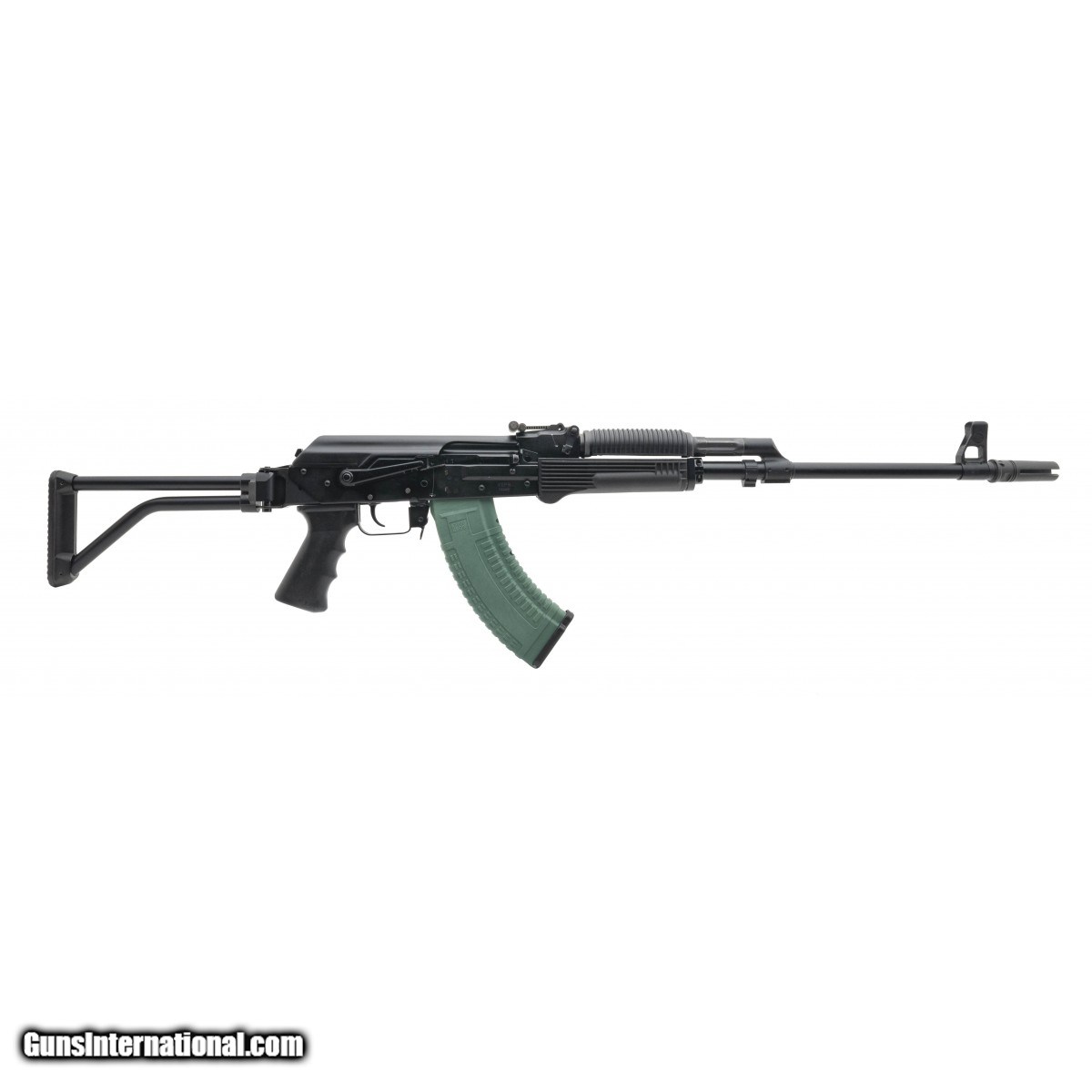 Description: " SN: 13VPP3397. Modern production. 7.62x39mm with a 20"" barrel, bore is excellent. Russian semi automatic AK rifle with RPK style barrel, Surefire 3 prong flash hider, polymer handguard and folding stock. Overall excellent condition. Comes with 1 10rd magazine and 3 PUF 30rd magazines. (Consignment) SOLD |