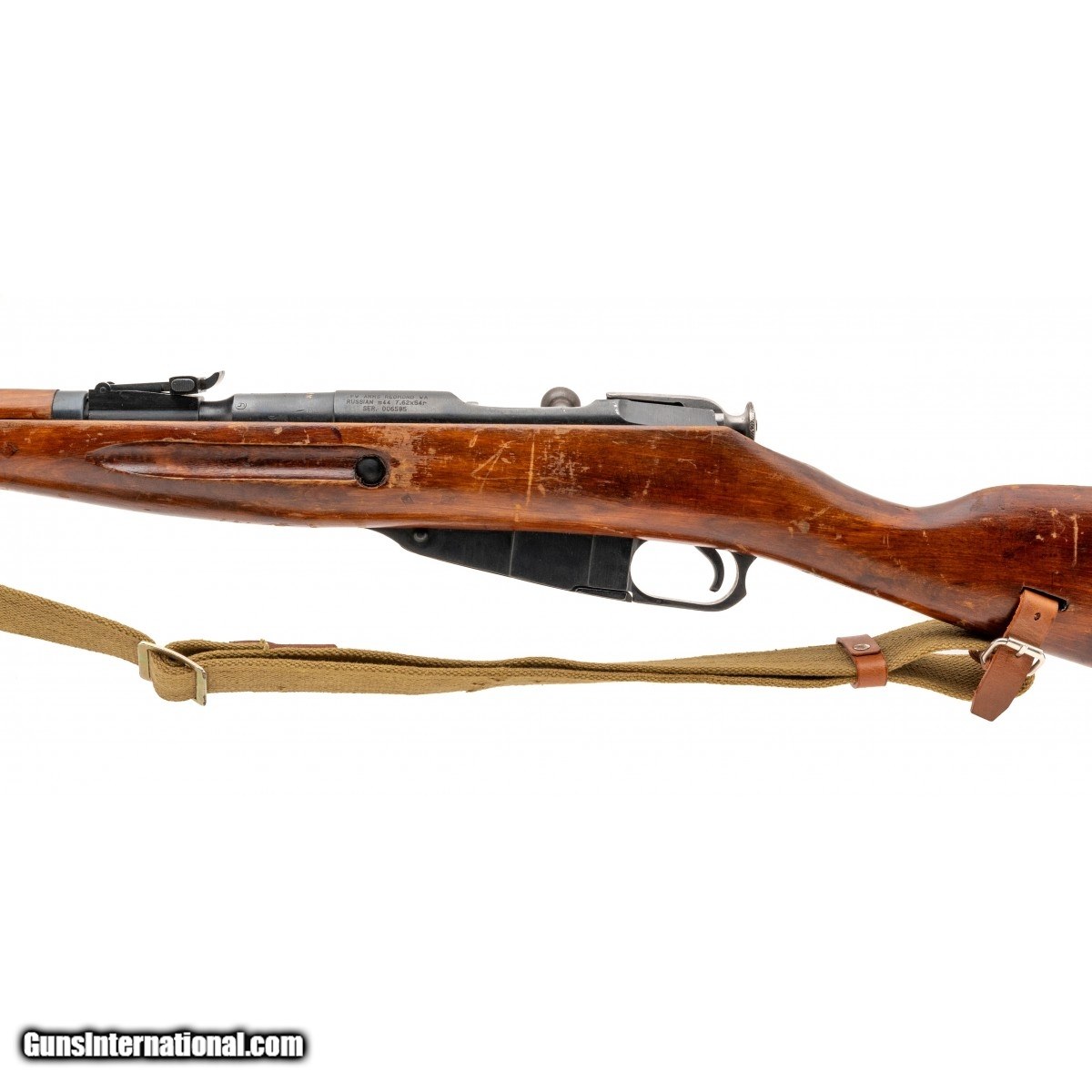 Description: " SN: 006585. Made in 1944. 7.62x54R with a 20.5"" barrel. Bore is bright with strong rifling. WWII Russian military rifle. Finish is in very good condition with stampings clearly present, import mark is present on the left side of the receiver. Stock is in good condition with handling wear noted throughout. Comes with side folding bayonet and sling. Overall condition is very good. SOLD |