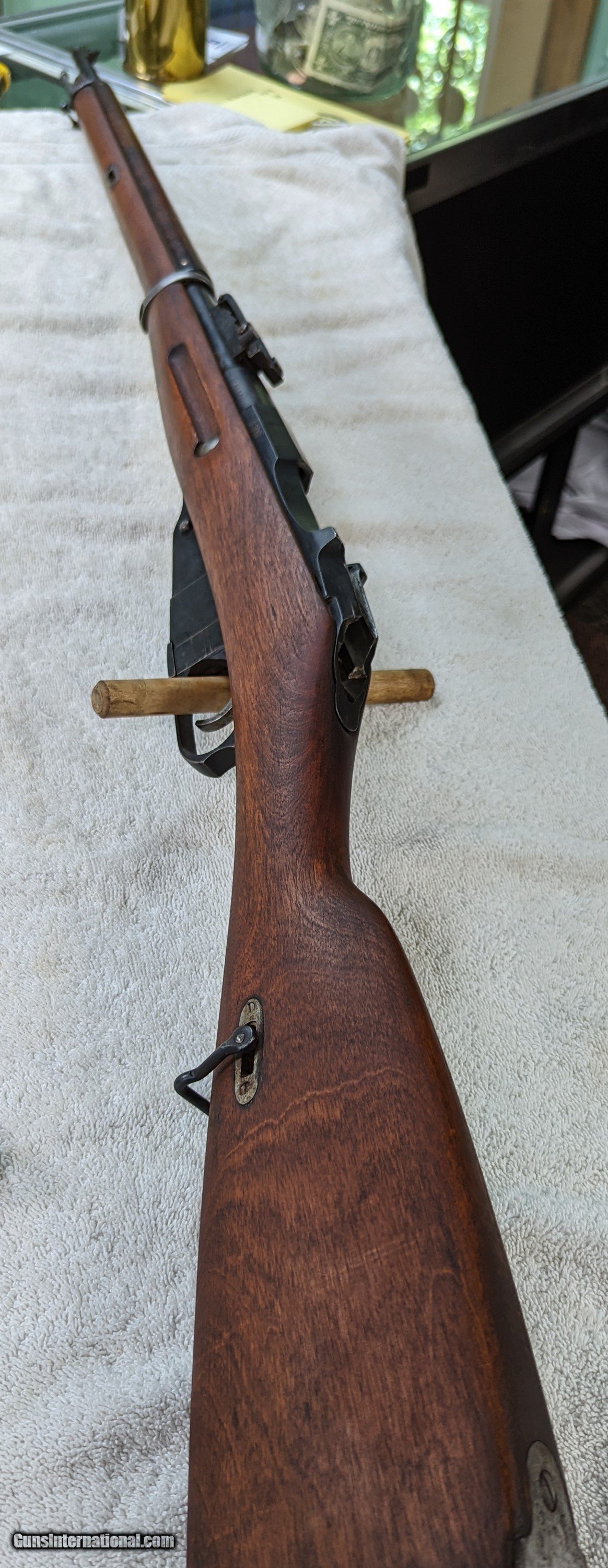 Description: This mosin.. has Finnish foot prints all over. It has the heavy duty German barrel. You will see it in the picture. The word is excellent and the rifling is excellent. This is a nice, nice piece. Look at the pictures. Let me know what you think. Have a good day! SOLD Curio/Relic: Yes Rifle Caliber: 7.62x54mmR Manufacturer: Russian Model: Mosin Nagant Serial Number: 5662 Barrel Length: 30.5 Bore: Excellent! Chambers: Very good Ejectors: Very good Condition: Excellent! Metal Condition: Very good Wood Condition: Very good Bore Condition: Excellent! Barrels: German Barrel Type: German barrel Action: Bolt action Triggers: Good Stock: Wood Butt Pad: Metal Finish: Very good Weight: Not bad Sights: Straight j Manufacture Date: Unknown Item Location: Virginia |