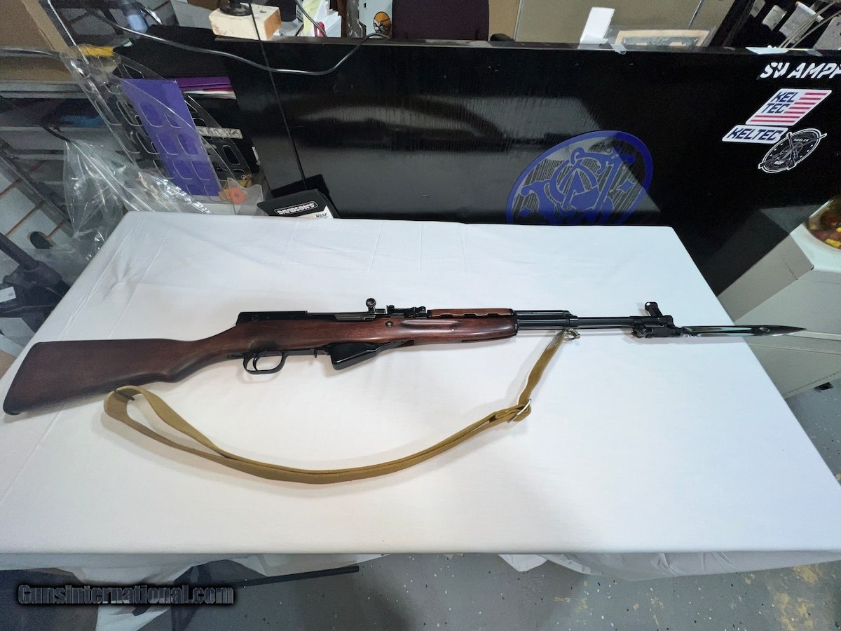 Description: Guns Listing ID: 846206 The SKS was manufactured at Tula Arsenal from 1945 to 1958, and at the Izhevsk Arsenal from 1953 to 1954, resulting in a total Soviet production of about 2.7 million. This gun has minor blemishes as shown in pictures. This is possibly a parade model due to condition, with polished bolt and bayonet. See pictures. SOLD Manufacturer: TULA Model: Russian SKS Caliber Info: 7.62X39MM Condition: Used - Non-Certified Barrels: 0.001 BARREL Finish: BLUE AND BLACK |