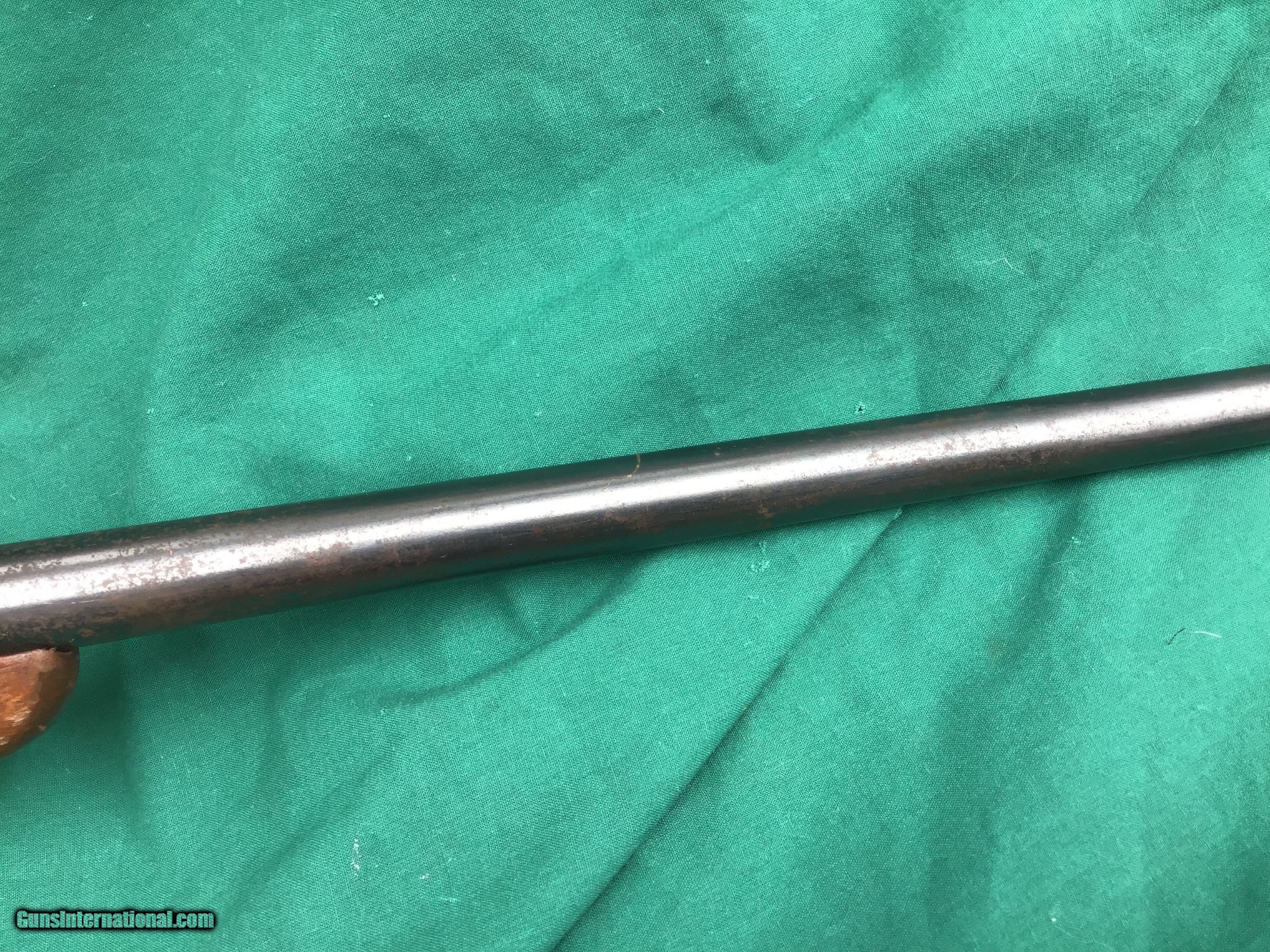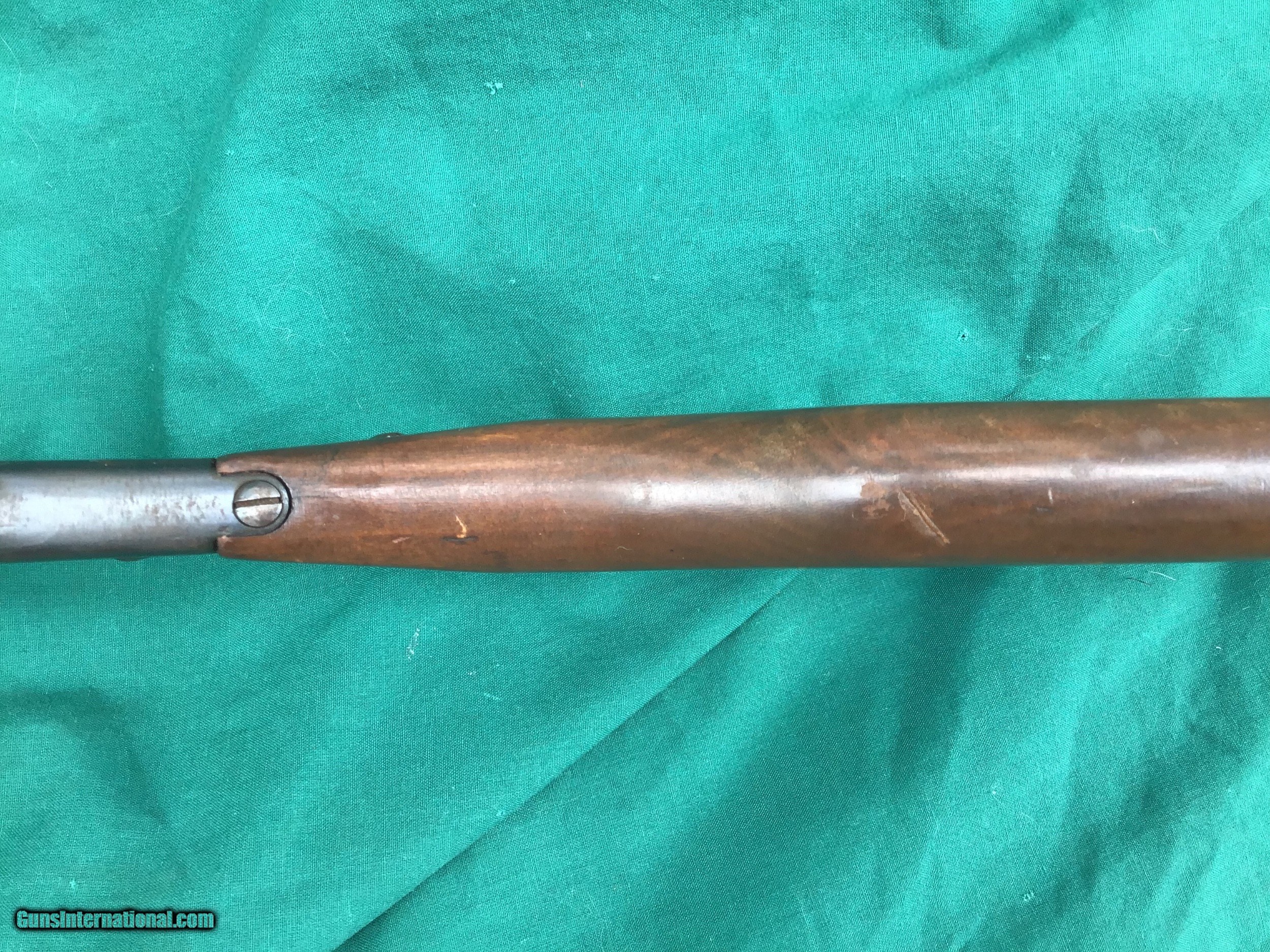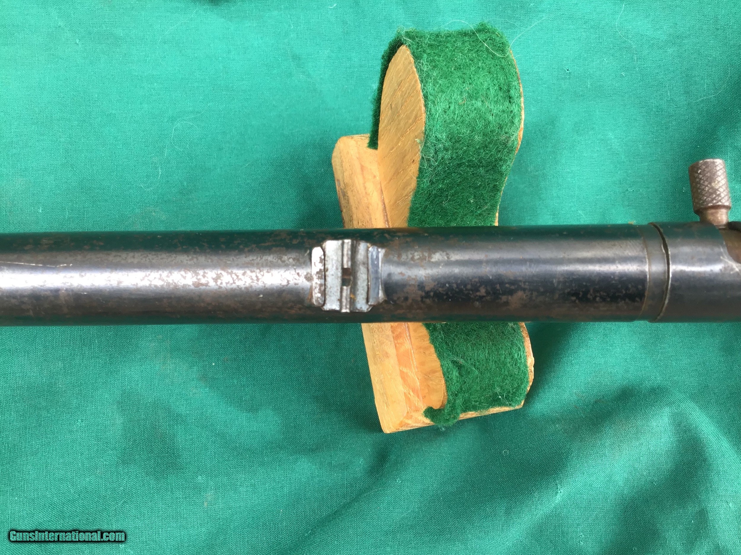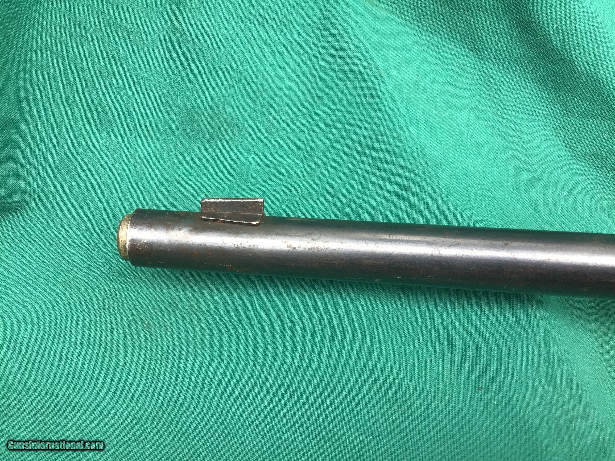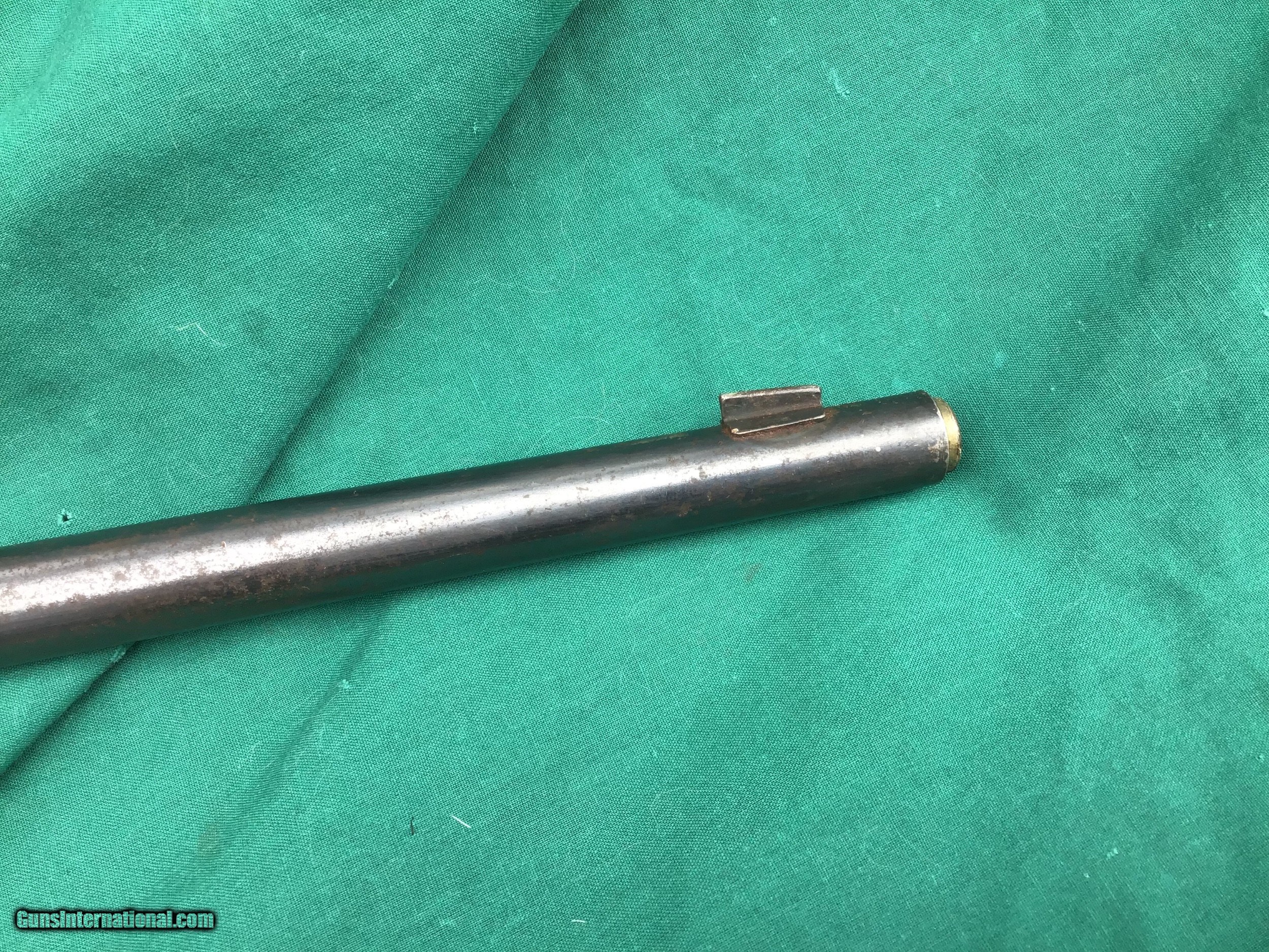 Description: Sold .......This is probably one of the best Hamilton Model 27 that I’ve seen in a very long time. .22 caliber with 16” barrel. The bore is very nice and I will rate a 7 on a scale from 1 to 10. I will rate the overall finish 85 to 90% original blue with brown patina mixing in throughout. Great markings. Both forend and buttstock are in good condition showing normal handling marks you would expect to see from a boys rifle. The only negative thing I can say is that the takedown screw was obvious lost sometime in the past and replaced with a brass screw. It will be hard to find a better one. Must ship to a FFL or Curio and Relics license holder. This firearm as with any other should be checked first by a gunsmith before any attempt is made to fire / operate it. Please feel free to ask questions. SOLD Antique: Yes Manufacturer: Hamilton Model: 27 |
