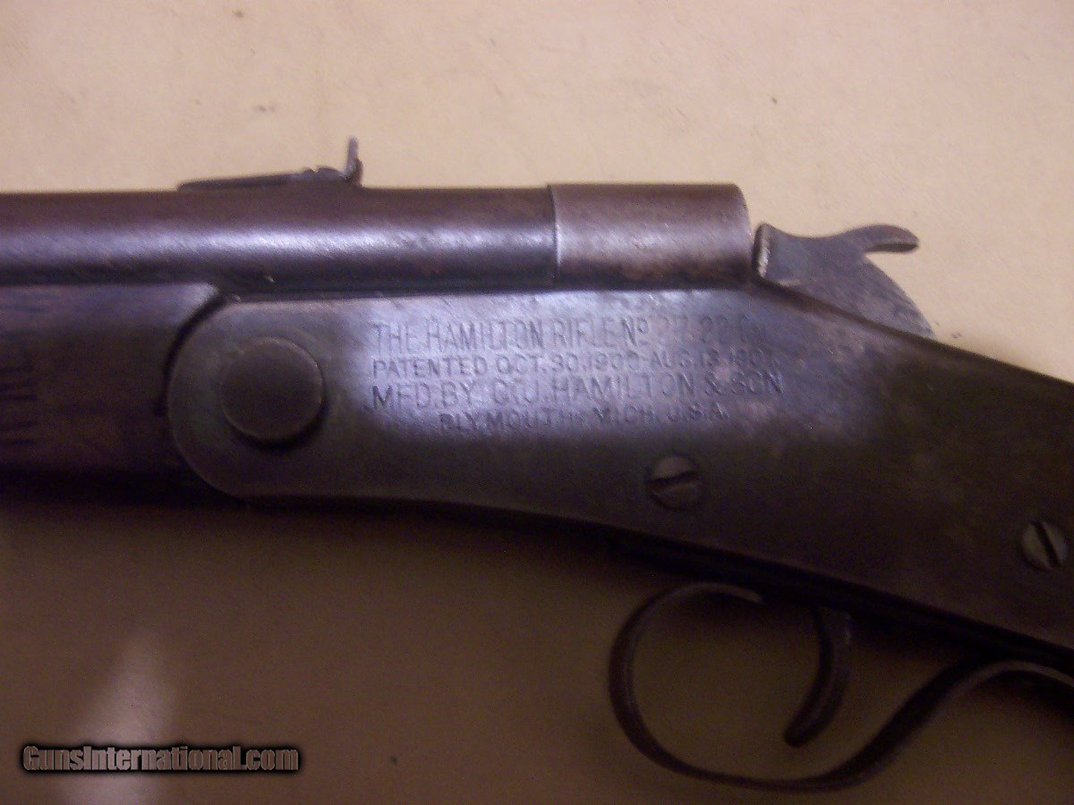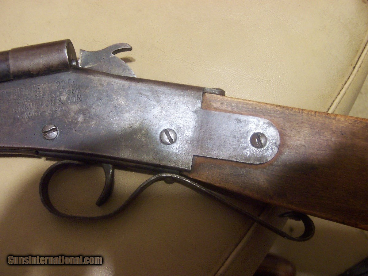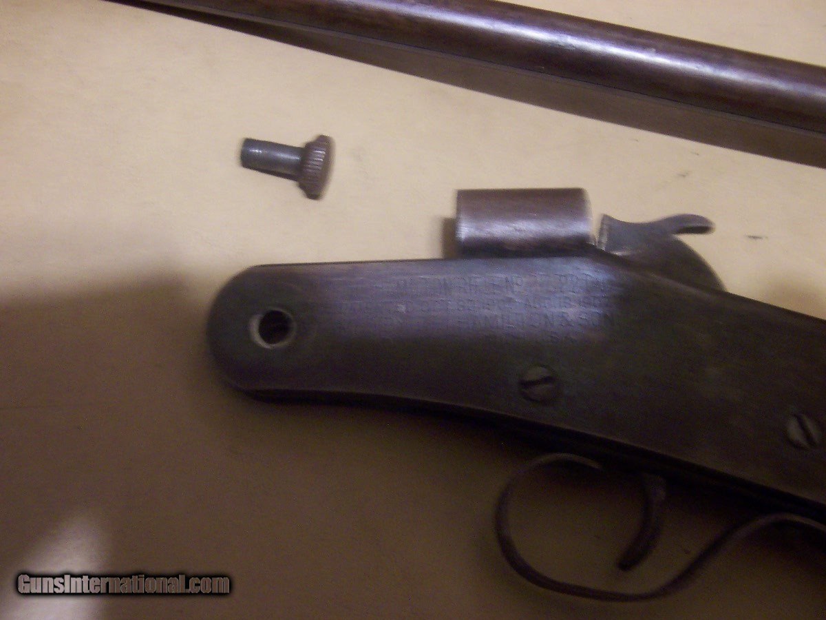 Description: good shootable bore i shot it and hit the barn every time blue brown patina ''' i have never seen a stock like this but looks factory made looks all original ???? $40 sh works fine SOLD Curio/Relic: Yes Manufacturer: hamilton Model: 27 |