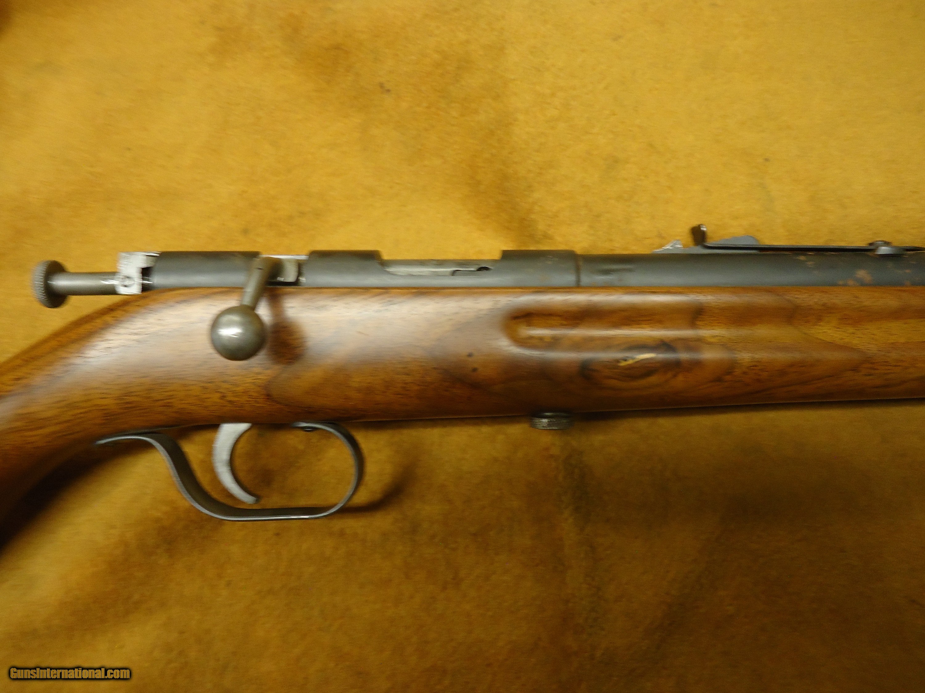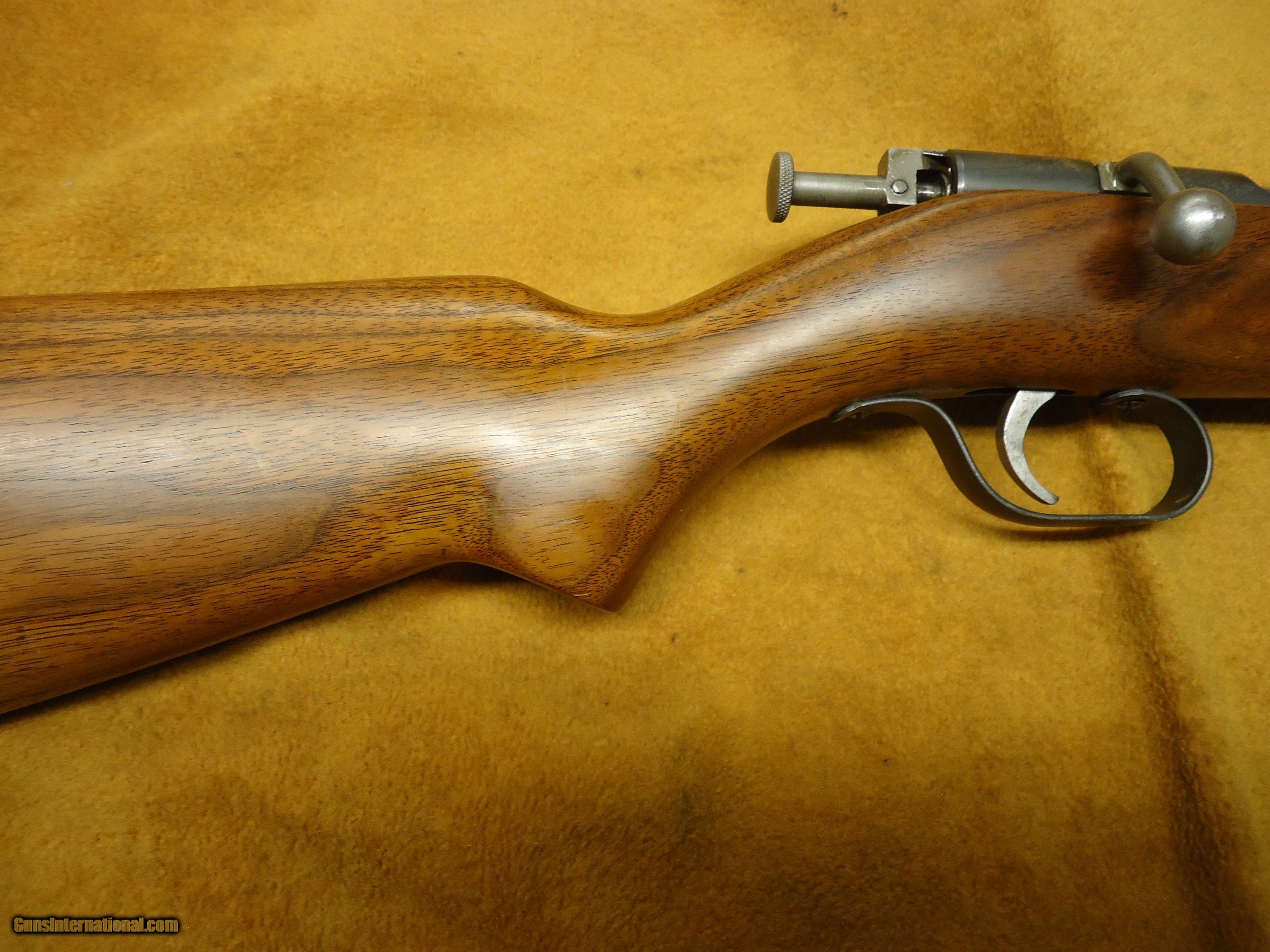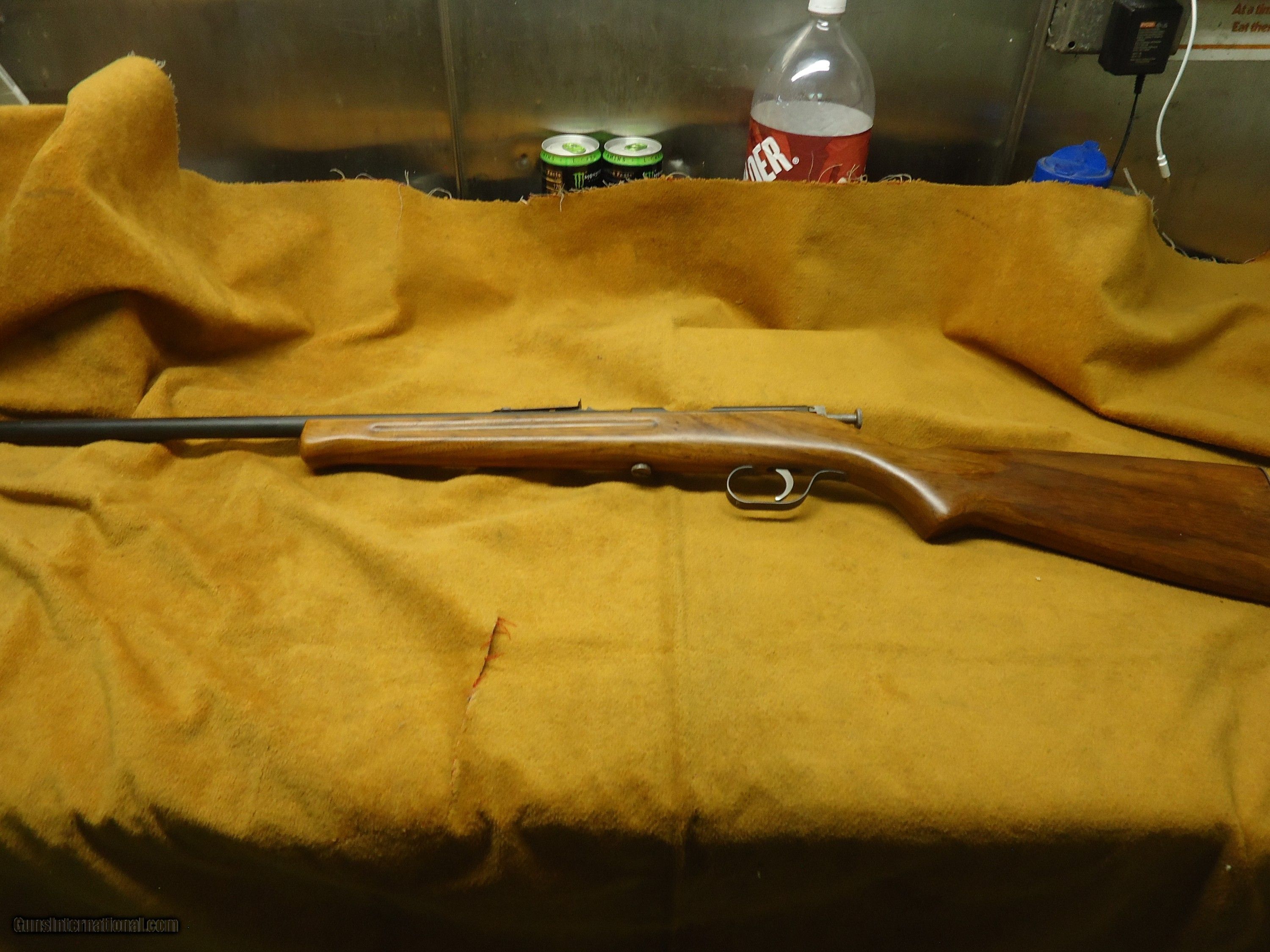 Description: Ranger 22 Single shot Rifle bolt action. Very nice condition. Made in the USA. Shot, Long and Long Rifle. A little bit of rust on the barrel (000 steel wool with oil will clean it up) SOLD Curio/Relic: Yes Rifle Caliber: .22 Long Rifle, .22 Short, .22 Long Manufacturer: Ranger Model: M34 Serial Number: none Bore: EXC |
