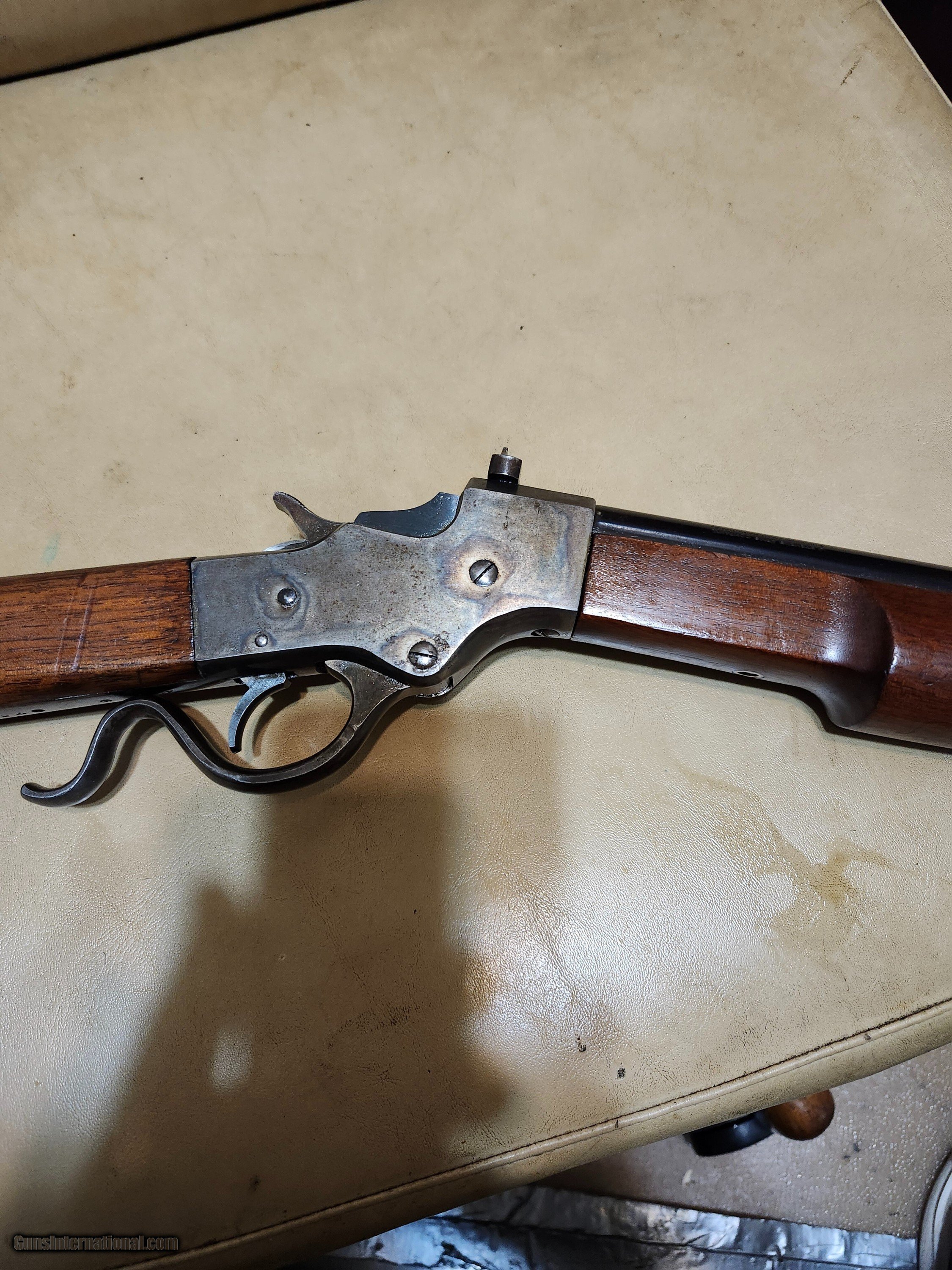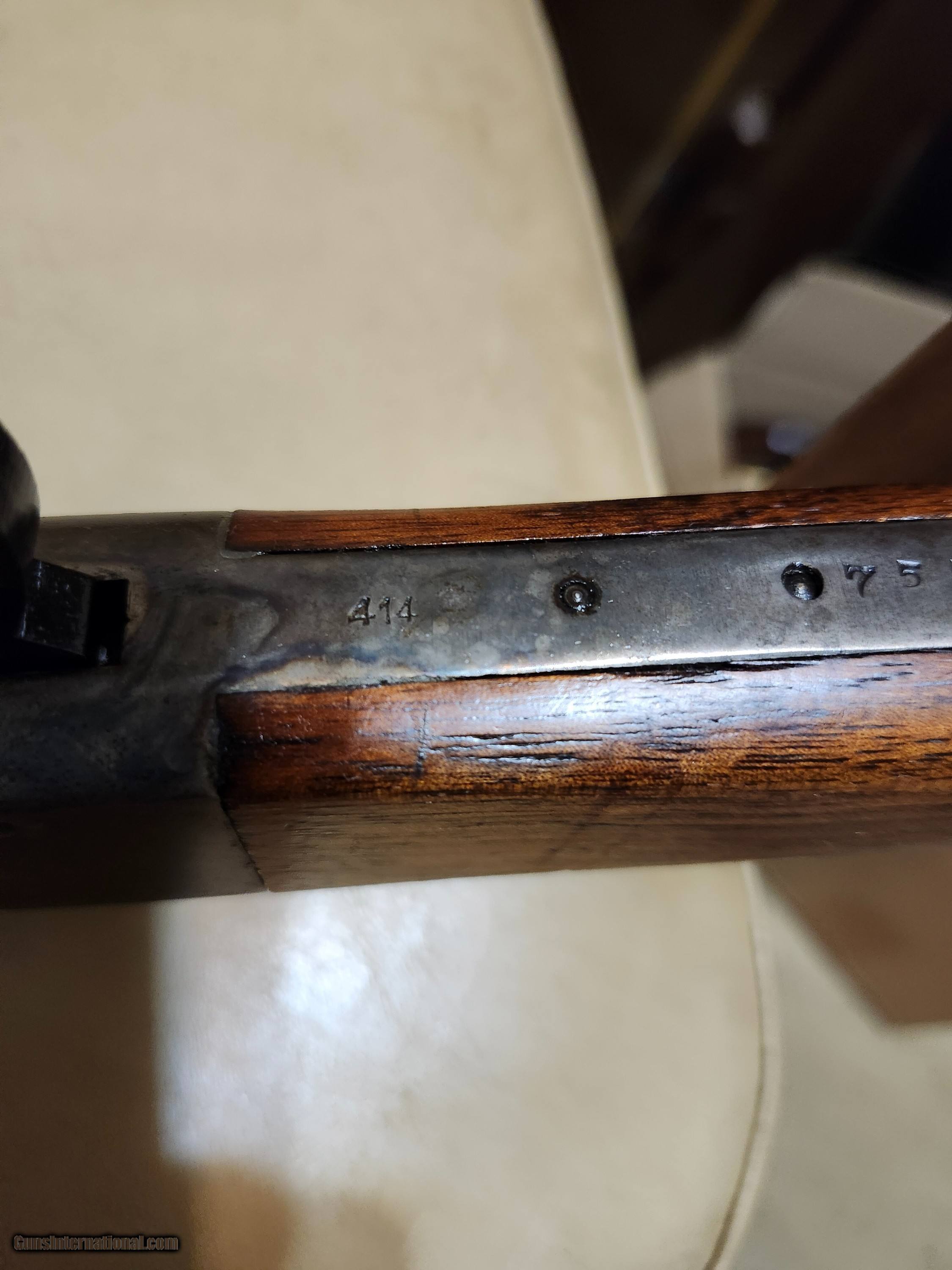 Description: gun has ex bore / gun in fine condition// tang marked 414 and serial # 75524 // shoots fine / cartridge flies out after shooting / gun has the safety hammer need to point barrel down to ground to cock hammer // blue and case 90% / has been drilled and tapped for long scope with 8 inch seperation between screws ////// stock fine with normal scratches and dings///// $60 sh / have drivers license for transfer /// c&r ok very nice original gun except for scope taps Curio/Relic: Yes Manufacturer: stevens Model: 414 Price: $1,100.00 Contact Seller |