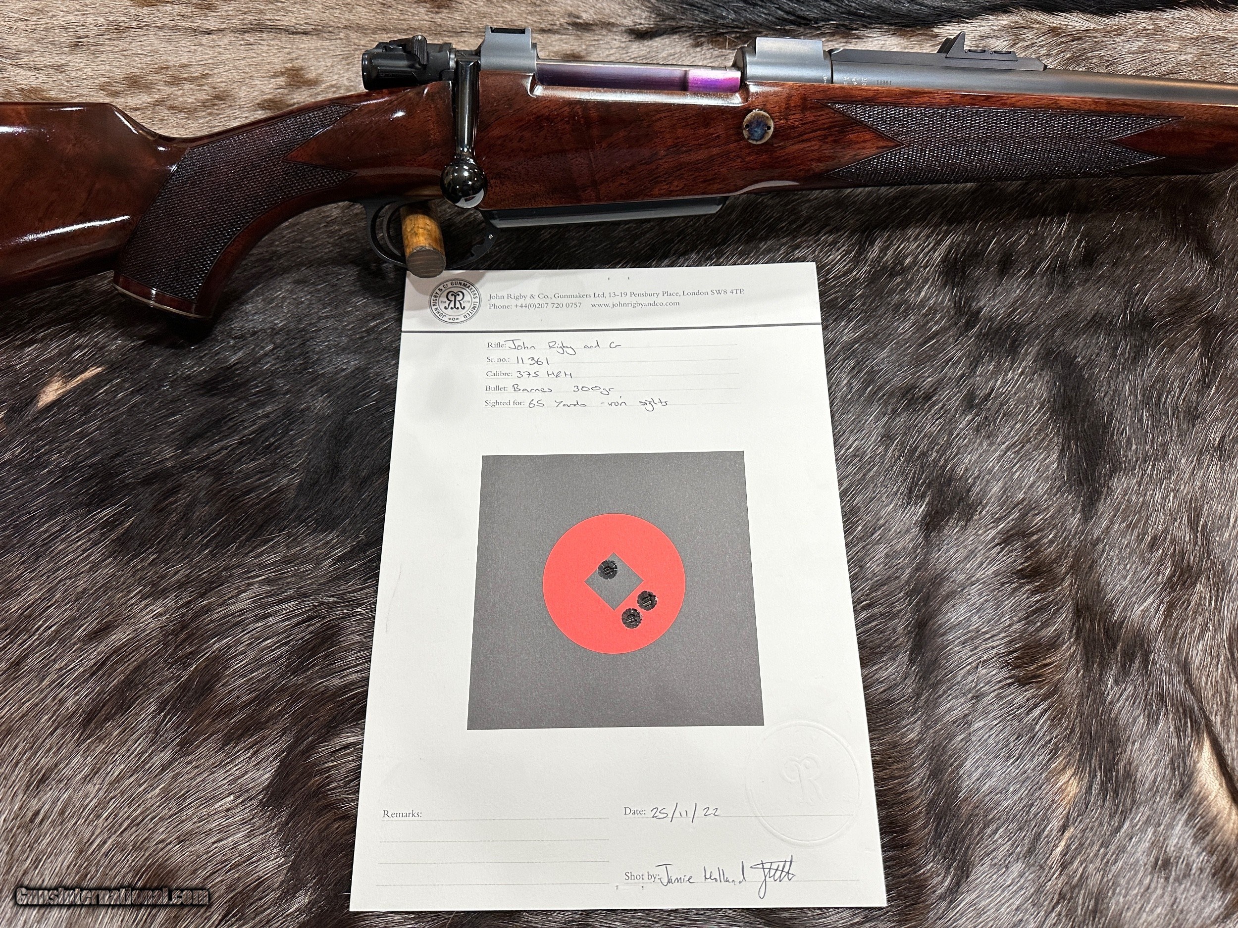 Description: NEW JOHN RIGBY & CO. BIG GAME DOUBLE SQUARE BRIDGE RIFLE IN THE AFRICAN CLASSIC 375 H&H! LAYAWAY AVAILABLE FREE AFRICAN SAFARI WITH KUCHE SAFARIS (KUCHE.CO.ZA) INCLUDED WITH THIS RIFLE! SAFARI IS FOR 1-HUNTER / 5-DAYS / 3-ANIMALS (IMPALA, BLESBUCK, WARTHOG). SAFARI IS CUSTOMIZABLE WITH ADDITIONAL DAYS AND ANIMALS AVAILABLE. CERTIFICATE PROVIDED UPON PURCHASE. NOTE: THE SAFARI IS FREE AND DOES NOT ADD ANY COST TO THE RIFLE. A True 21st century classic, the Big Game model invokes aspiration and adventure. Hand-built in London on barrelled actions supplied by Mauser, this rifle harkens back to the golden age of big game hunting and – like its forebears – is perfectly suited for use around the world. Features Of This Great Rifle Include: