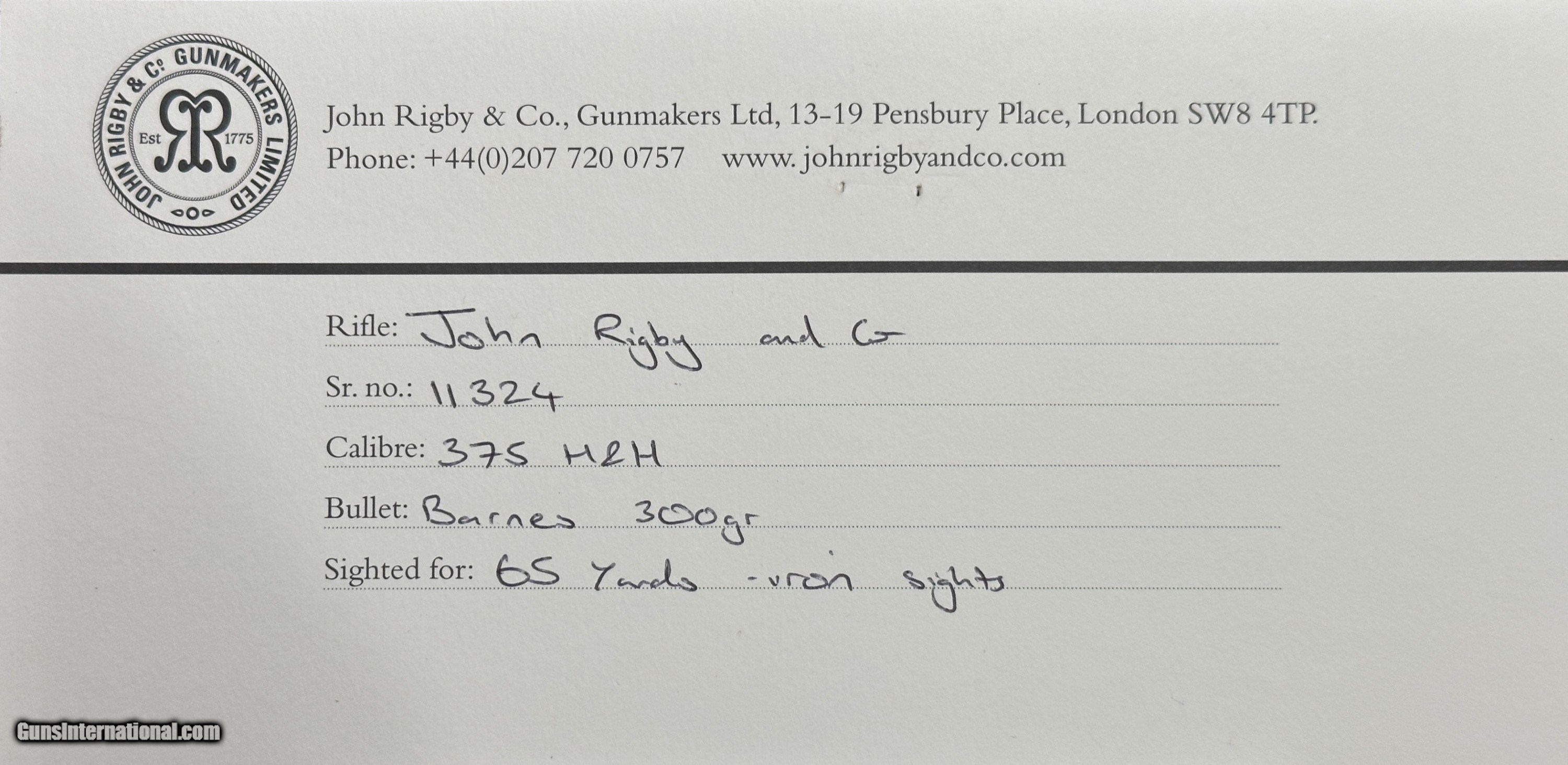 Description: NEW JOHN RIGBY & CO. BIG GAME DOUBLE SQUARE BRIDGE RIFLE IN THE AFRICAN CLASSIC 375 H&H! LAYAWAY AVAILABLE FREE AFRICAN SAFARI WITH KUCHE SAFARIS (KUCHE.CO.ZA) INCLUDED WITH THIS RIFLE! SAFARI IS FOR 1-HUNTER / 5-DAYS / 3-ANIMALS (IMPALA, BLESBUCK, WARTHOG). SAFARI IS CUSTOMIZABLE WITH ADDITIONAL DAYS AND ANIMALS AVAILABLE. CERTIFICATE PROVIDED UPON PURCHASE. NOTE: THE SAFARI IS FREE AND DOES NOT ADD ANY COST TO THE RIFLE. A True 21st century classic, the Big Game model invokes aspiration and adventure. Hand-built in London on barrelled actions supplied by Mauser, this rifle harkens back to the golden age of big game hunting and – like its forebears – is perfectly suited for use around the world. Features Of This Great Rifle Include: