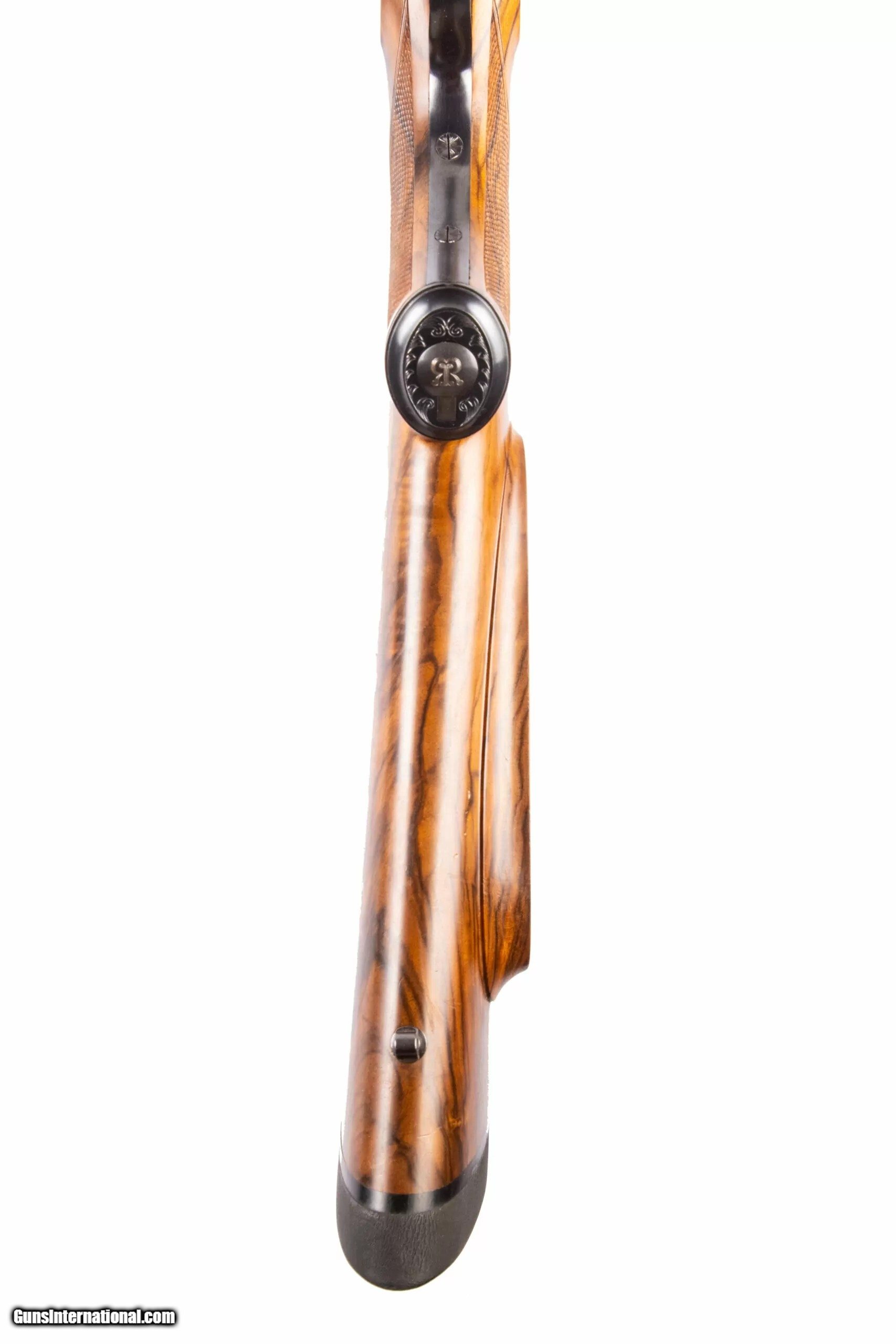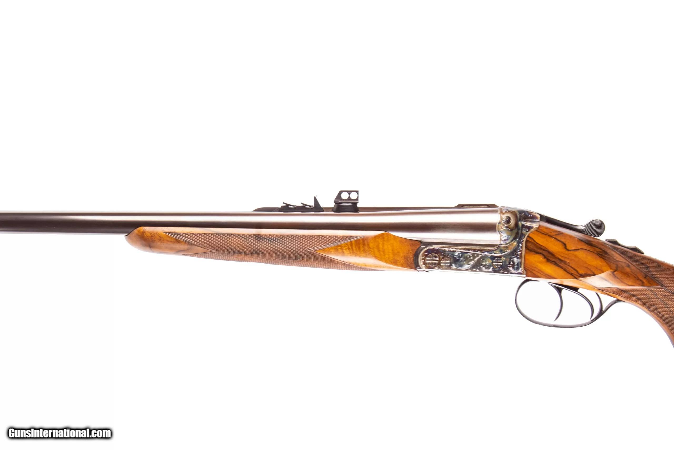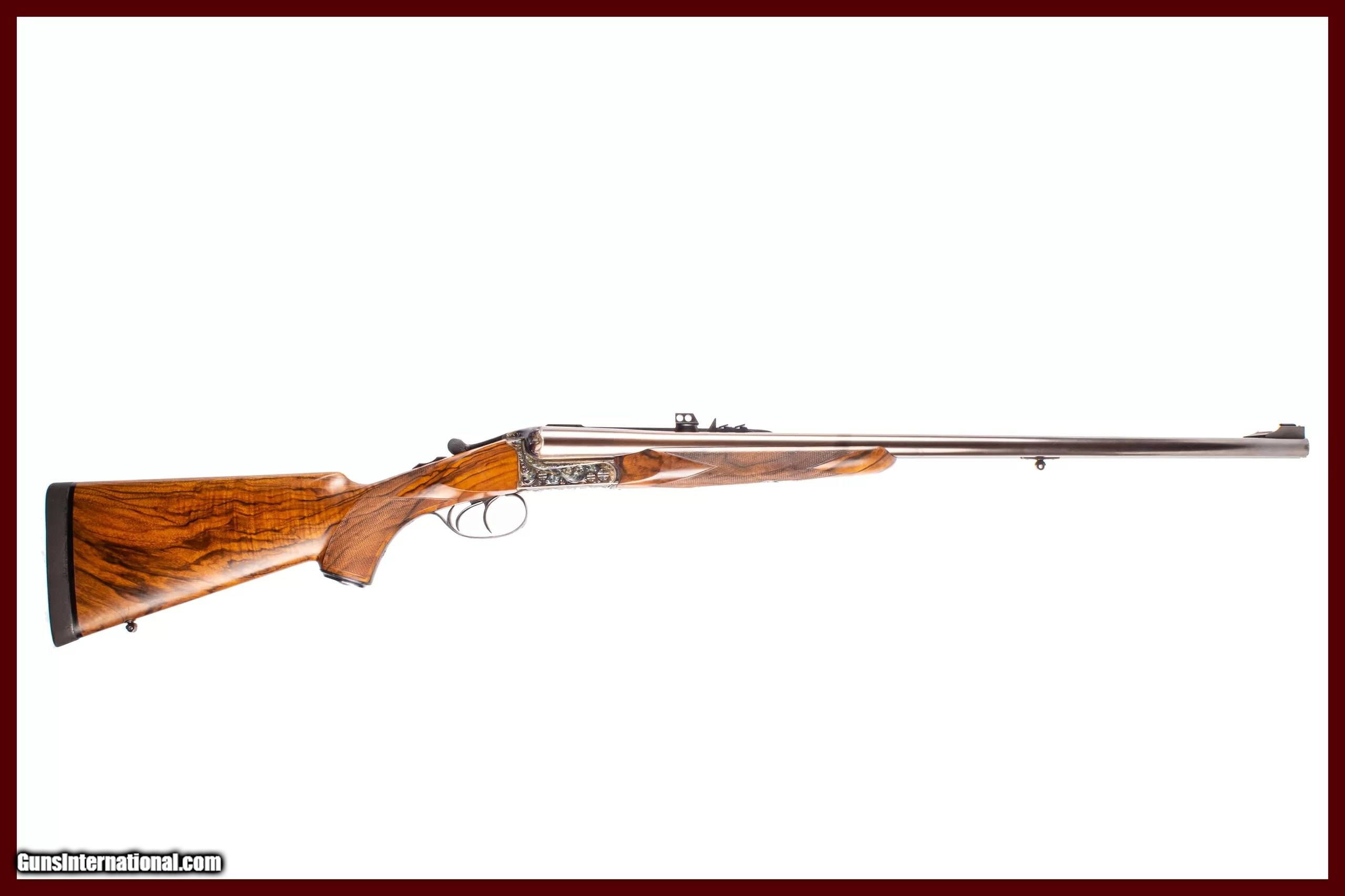Description: Rigby Boxlock Ejector Double Rifle chambered in 450/400 Nitro Express with 24 inch barrels, mirror-shine bores with near-pristine immaculate rifling and superb lockup. Based on a Merkel A&D boxlock action, this double rifle is engulfed with a beautifully engraved color hardened finish adorned in Turkish walnut supporting a set of mono-bloc barrels topped with Express leaf sights witness to a ramped front sight that can be accompanied with a Leupold Vari X-III optic that also comes with the rifle along with the proper mounts. Utilizing a dual trigger setup and sling-compatible, this rifle is ready to take on the most desired of big game. Length of Pull measures in at 14&9/16 inches with a slight cast off at the comb. The NRA grading condition for this USED firearm is Excellent. We ship domestically in the United States. Additional shipping rates apply to Alaska and Hawaii. Dury's Lifetime Warranty: All firearms purchased from Dury’s Gun Shop, NEW or USED, are covered by a lifetime warranty. We will repair or replace, at our discretion, any firearm purchased from Dury’s Gun Shop, Inc. for as long as it is owned by the purchaser. This warranty is not transferable. WE BUY GUNS! NO COLLECTION TOO BIG OR SMALL FOR OUR GUNS INTERNATIONAL CUSTOMERS ALL OF OUR FIREARMS CAN BE PURCHASED DIRECTLY FROM OUR DURY'S GUNS SITE ! SOLD Manufacturer: John Rigby & Co. Model: Boxlock Ejector Caliber Info: 450/.400 Nitro Express Barrels: 24inches |