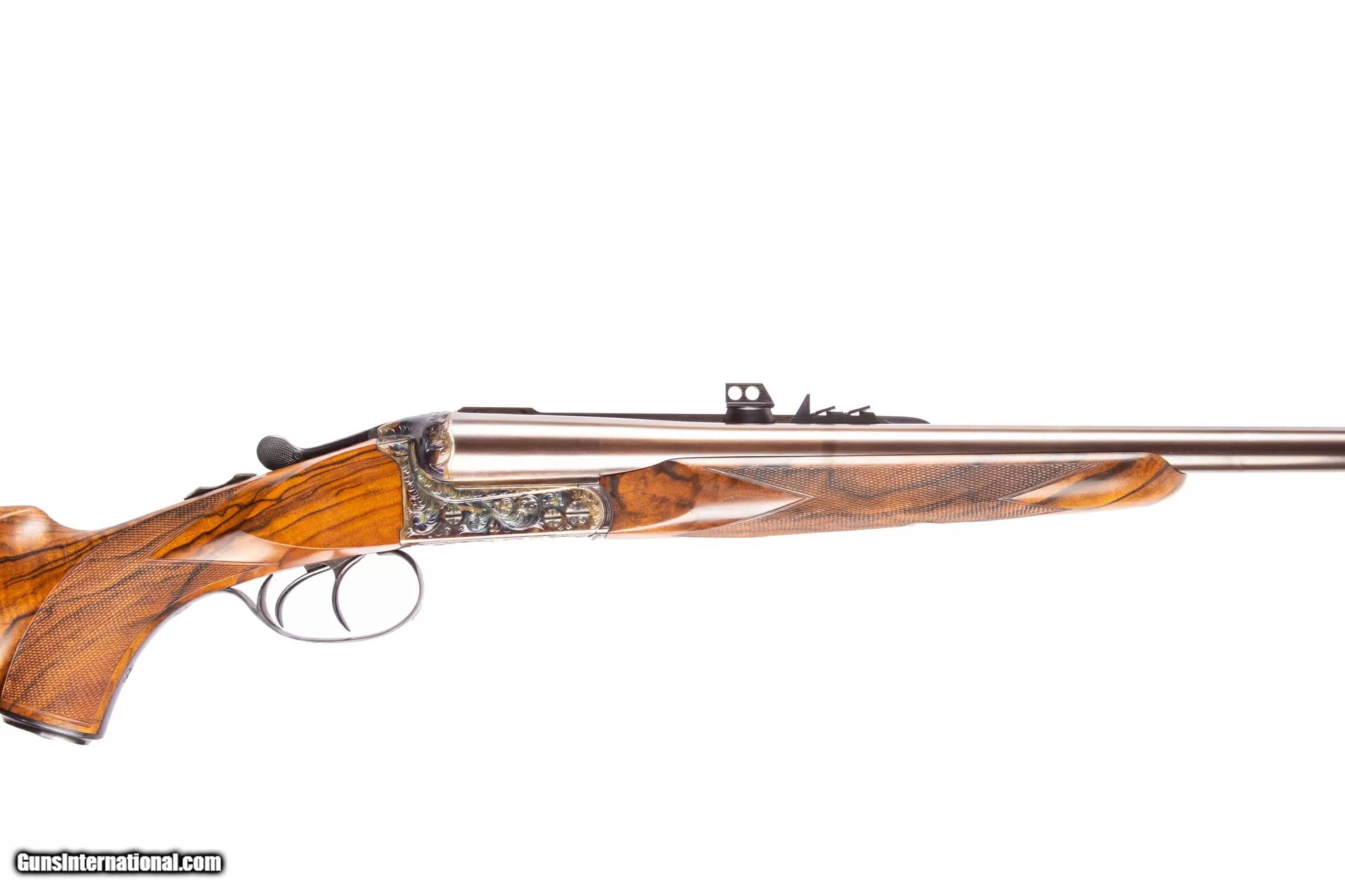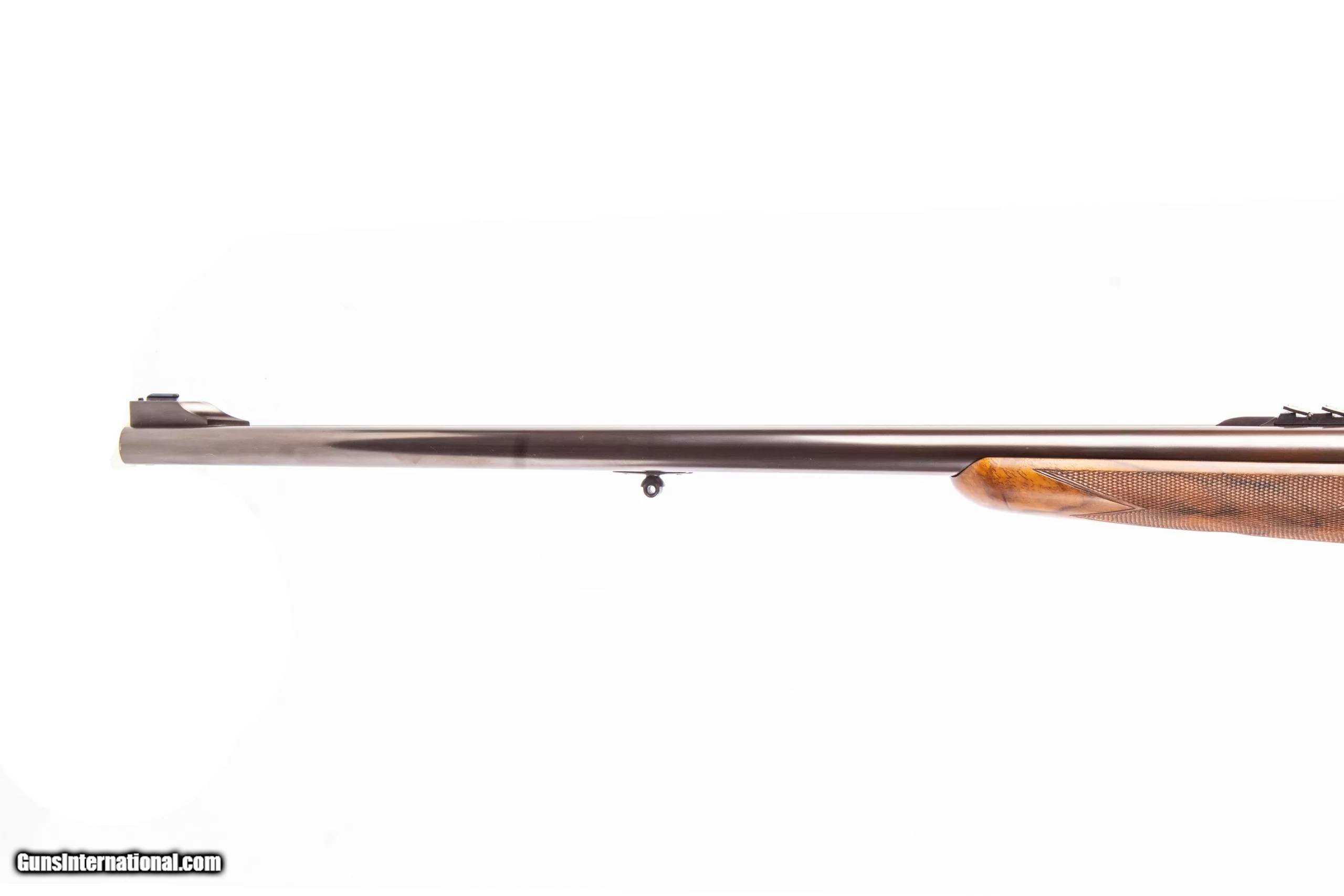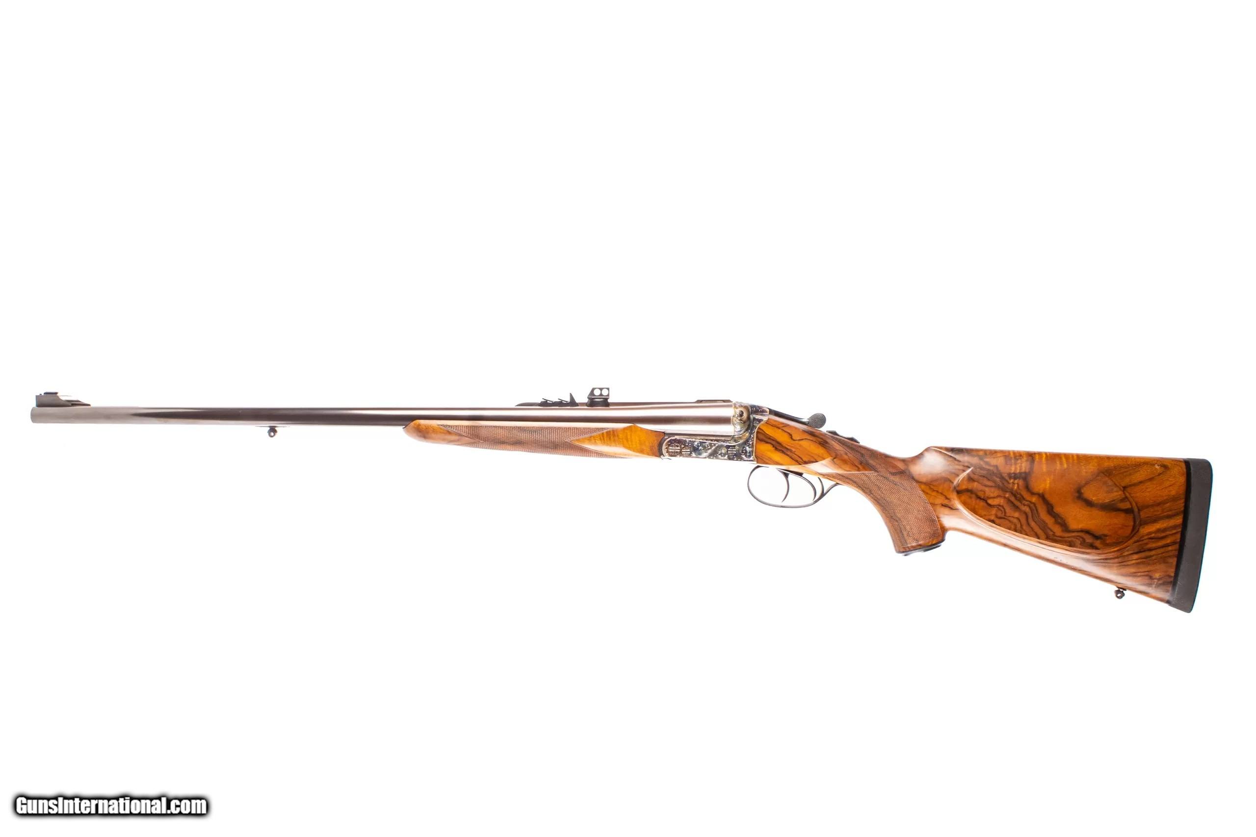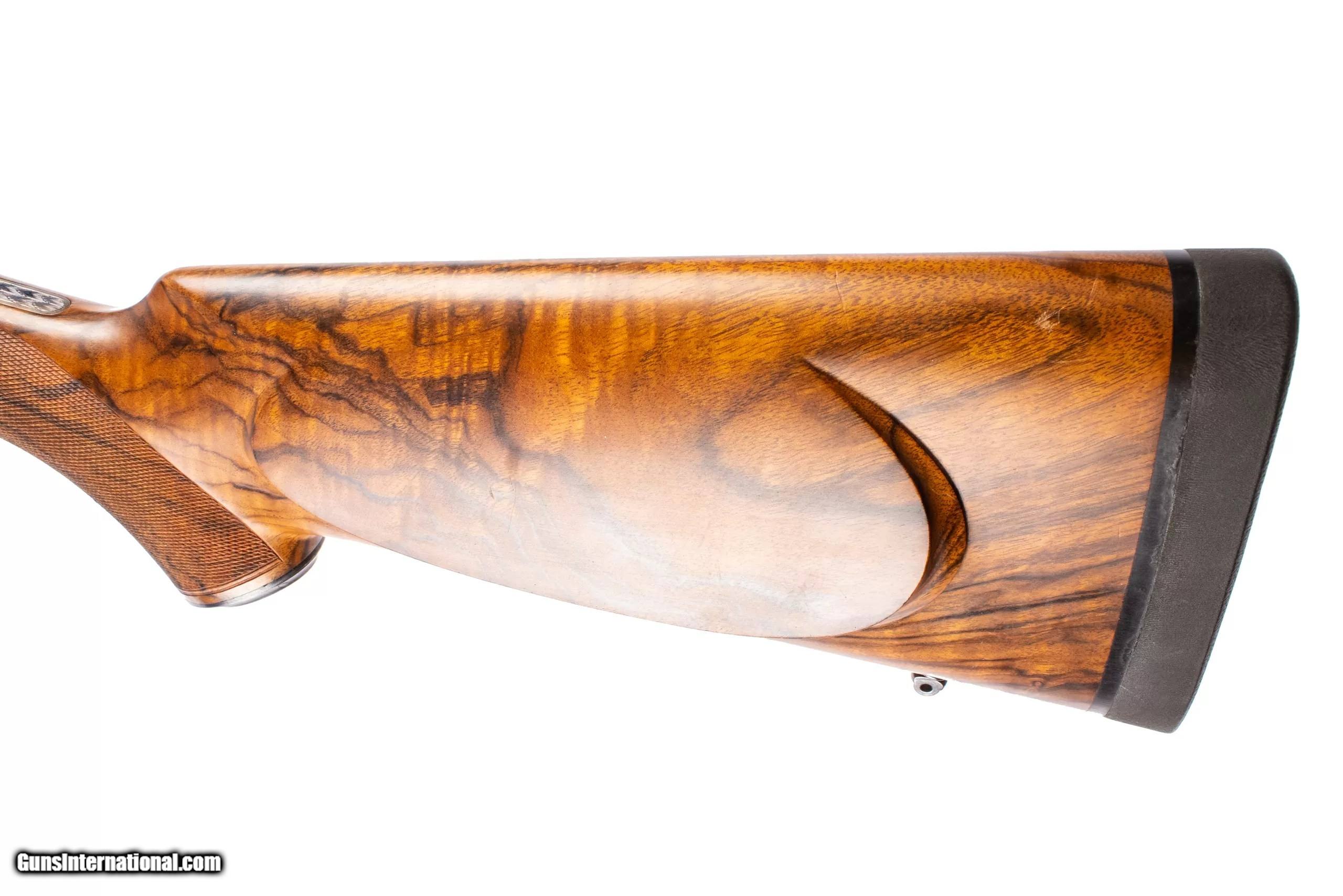 Description: Rigby Boxlock Ejector Double Rifle chambered in 450/400 Nitro Express with 24 inch barrels, mirror-shine bores with near-pristine immaculate rifling and superb lockup. Based on a Merkel A&D boxlock action, this double rifle is engulfed with a beautifully engraved color hardened finish adorned in Turkish walnut supporting a set of mono-bloc barrels topped with Express leaf sights witness to a ramped front sight that can be accompanied with a Leupold Vari X-III optic that also comes with the rifle along with the proper mounts. Utilizing a dual trigger setup and sling-compatible, this rifle is ready to take on the most desired of big game. Length of Pull measures in at 14&9/16 inches with a slight cast off at the comb. The NRA grading condition for this USED firearm is Excellent. We ship domestically in the United States. Additional shipping rates apply to Alaska and Hawaii. Dury's Lifetime Warranty: All firearms purchased from Dury’s Gun Shop, NEW or USED, are covered by a lifetime warranty. We will repair or replace, at our discretion, any firearm purchased from Dury’s Gun Shop, Inc. for as long as it is owned by the purchaser. This warranty is not transferable. WE BUY GUNS! NO COLLECTION TOO BIG OR SMALL FOR OUR GUNS INTERNATIONAL CUSTOMERS ALL OF OUR FIREARMS CAN BE PURCHASED DIRECTLY FROM OUR DURY'S GUNS SITE ! SOLD Manufacturer: John Rigby & Co. Model: Boxlock Ejector Caliber Info: 450/.400 Nitro Express Barrels: 24inches |