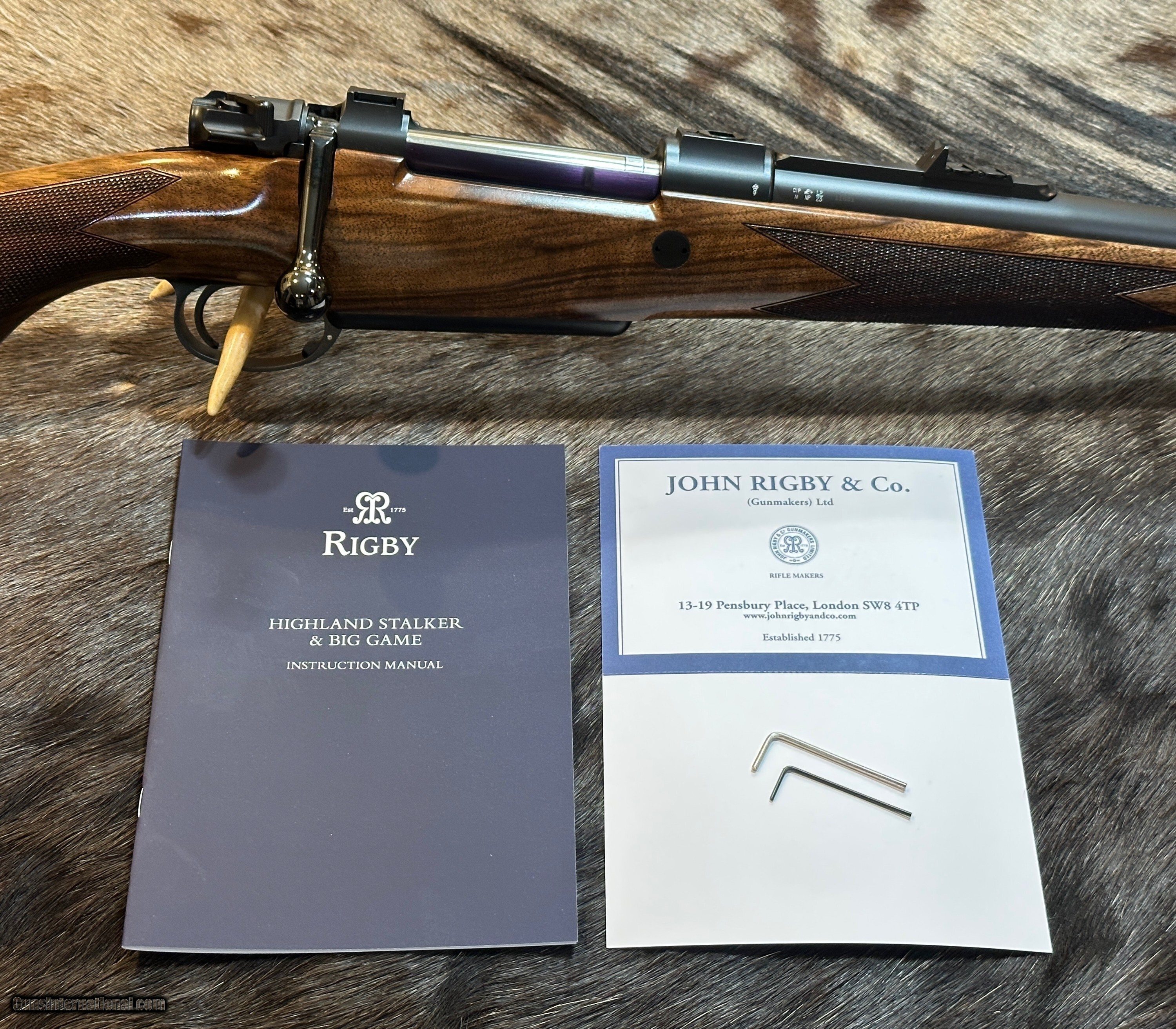NEW JOHN RIGBY BIG GAME DOUBLE SQUARE BRIDGE 375 H&H MAGNUM, MAUSER 98 ACTION, GRADE 5 WOOD - LAYAWAY AVAILABLE