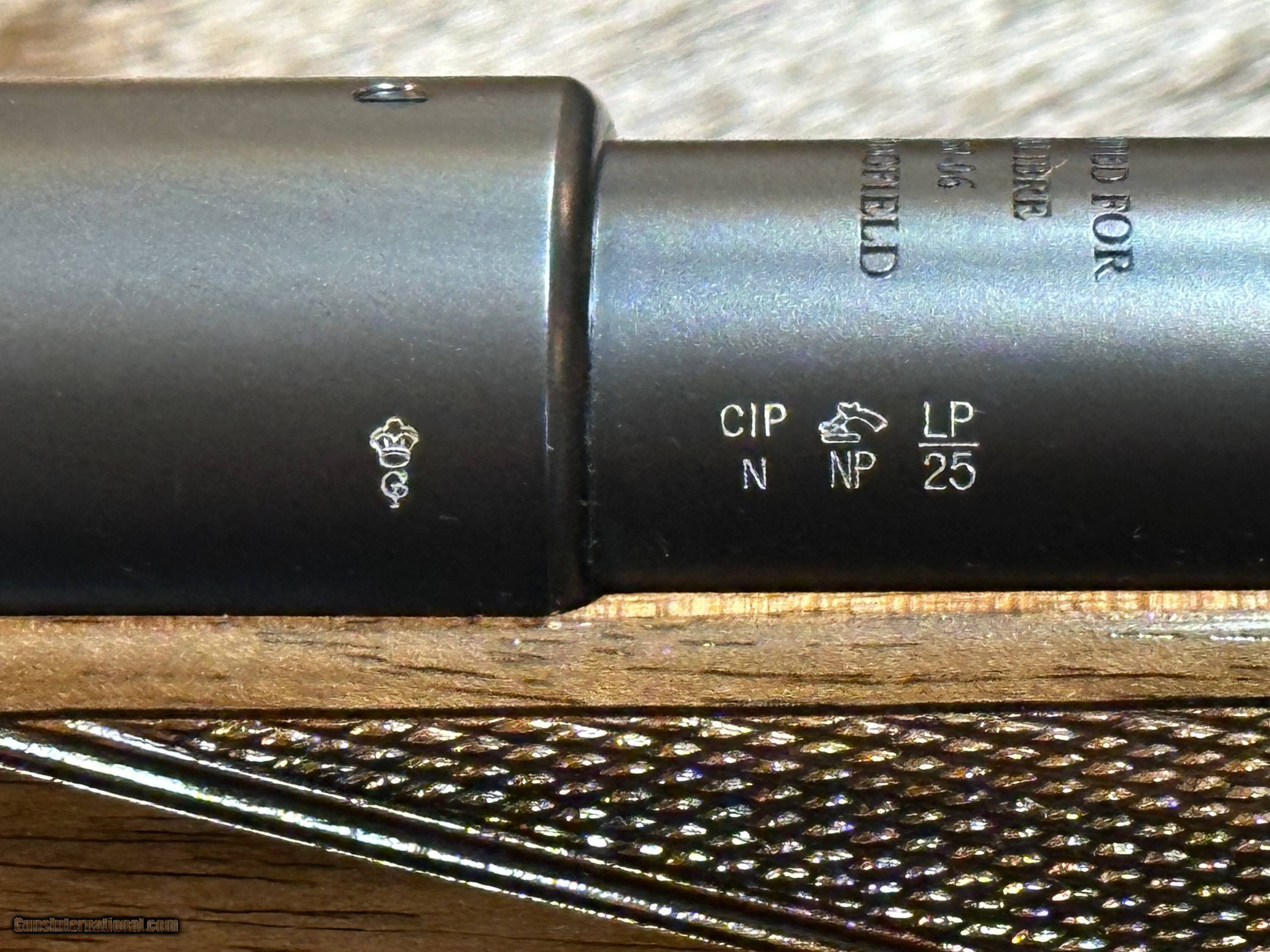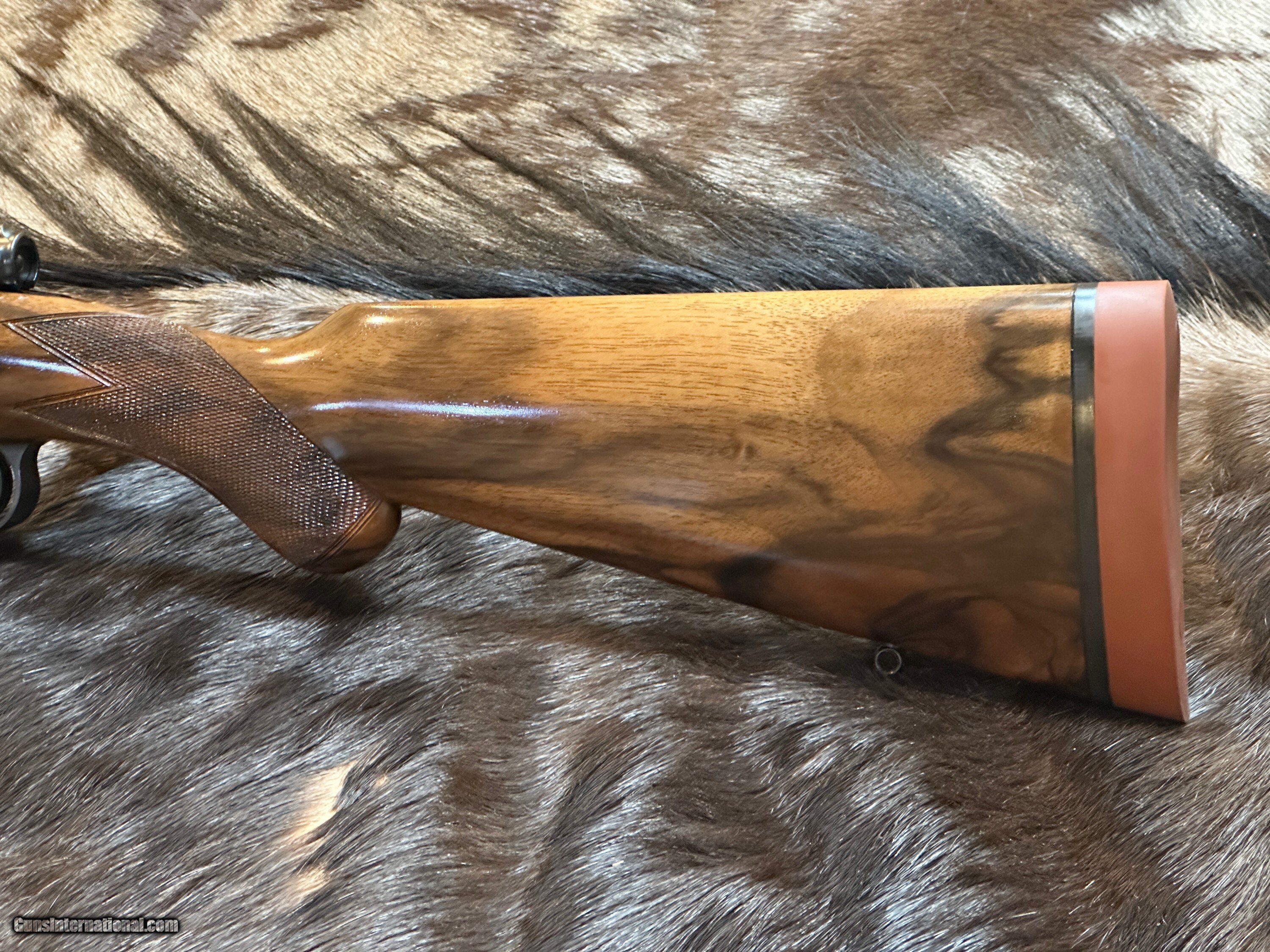 NEW JOHN RIGBY OF LONDON, HIGHLAND STALKER 30-06, MAUSER 98 BARRELED ACTION GRADE 6 WOOD, CHECKERED BOLT, GOLD REAR SIGHT #s - LAYAWAY AVAILABLE