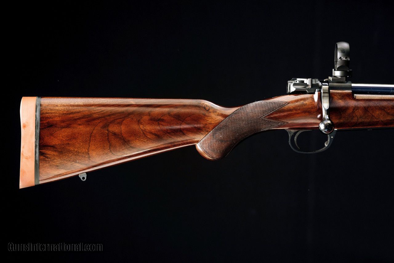 Description: Rigby Highland Stalker in 300 win mag feaures a 26" barrel for added accuracy. These rifles are an exclusive to Gordy & Sons Outfitters chambered in 300 win mag. The gun has a grade 7 stock and a traditional Rigby fashioned stock with a round knob semi-pistol grip. SOLD Manufacturer: J Rigby and Co Caliber Info: 300 Win Mag Barrels: 26 Action: Bolt-Action Triggers: single selective Gauge Info: 300 Win Mag Stock Comb: n/a Stock Heel: n/a Stock Cast: n/a LOP: 14 1/2 Rib: quarter rib with exr Weight: 7.0 Chokes: n/a |