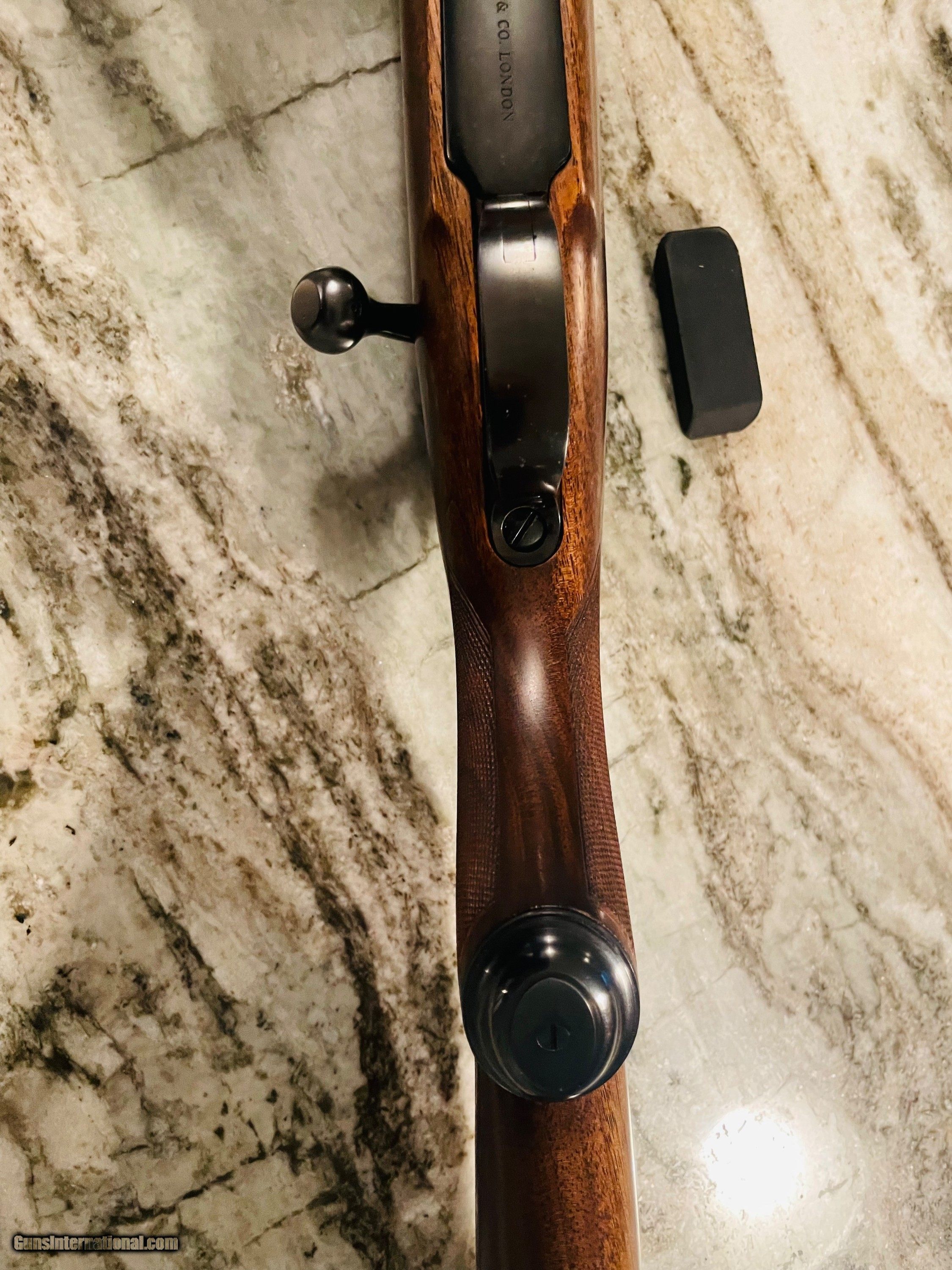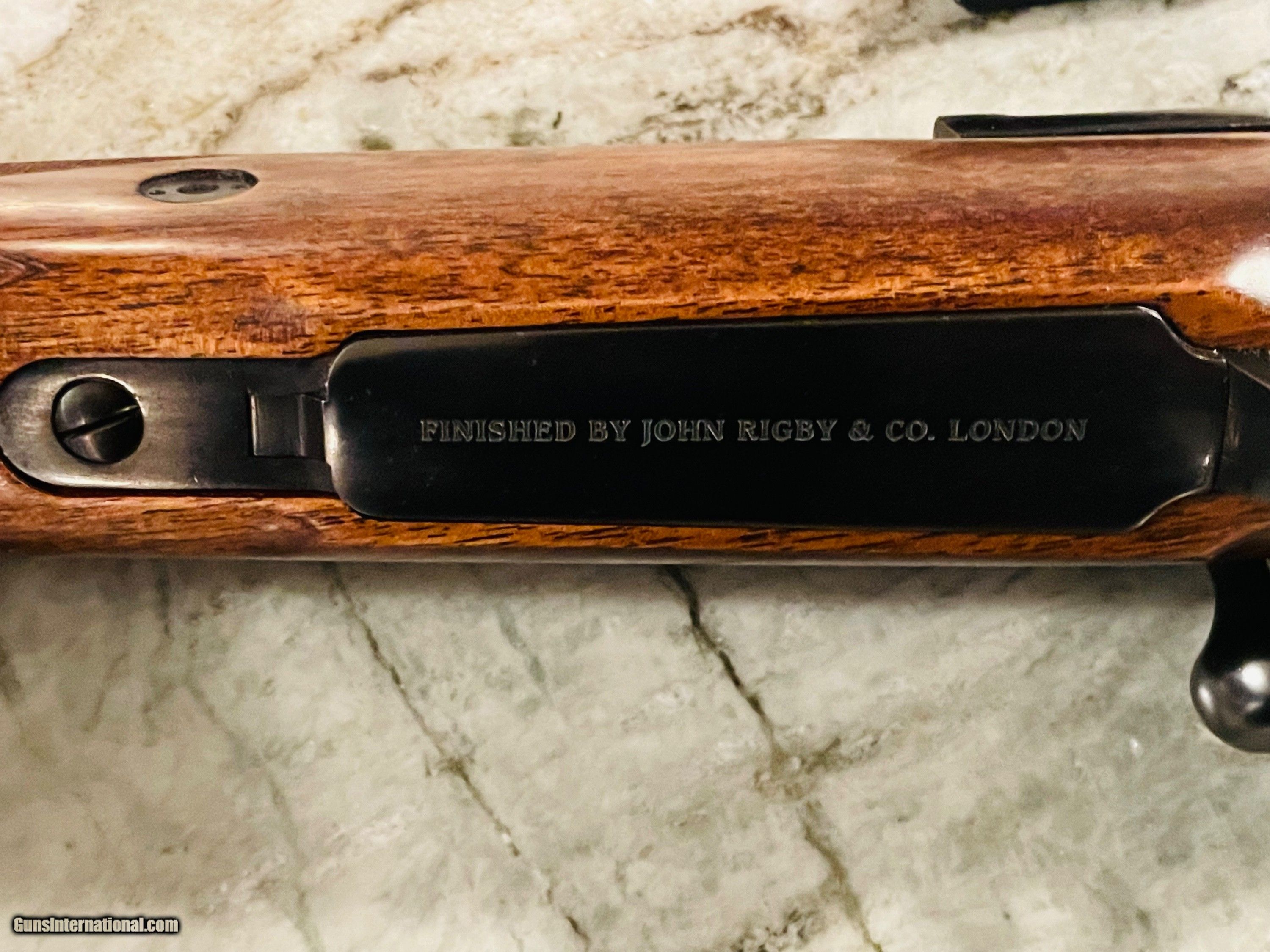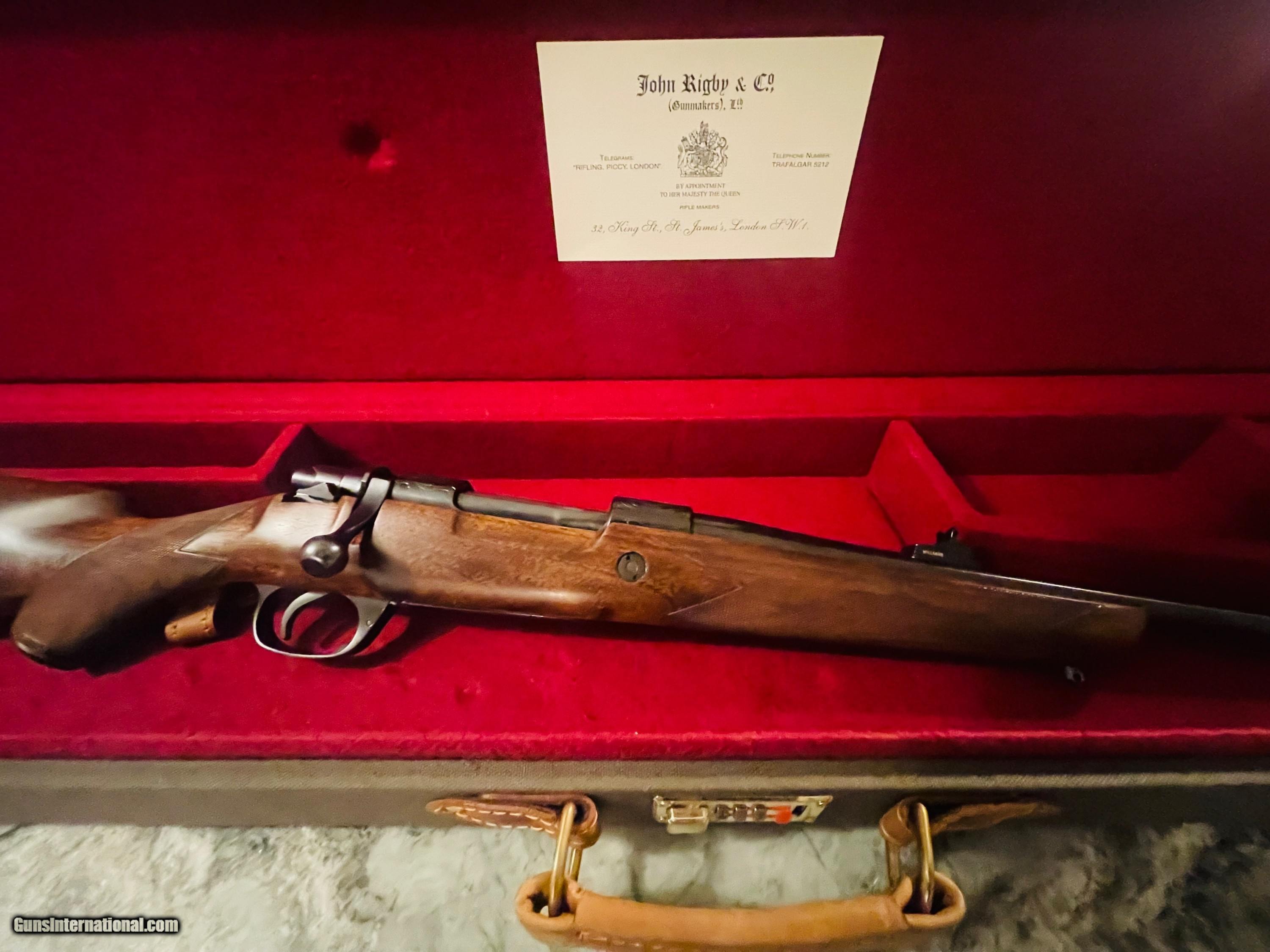 Description: A rare opportunity to purchase a later model English made Rigby/PH that’s every bit as good as the new Highland Stalker model for a fraction of the $13,000 price. In excellent condition and seen very little use. Mauser 98 action chambered in the versatile .270 caliber. Stocked, assembled, glass bedded, shot and regulated by John Rigby in London. Hammer forged Parker Hale barrels and Mauser 98 action. Hand rubbed oil finish and sharp checkering. Adjustable trigger. Magazine floor plate engraved “Finished by John Rigby”. Has a classic red Silvers pad and blued steel grip cap. Includes a mint condition canvas and leather case. An exellent example of a classic English stalking rifle. Email or call 786-375-1709 for any additional information. SOLD Rifle Caliber: .270 Winchester |