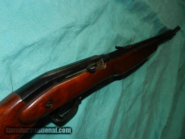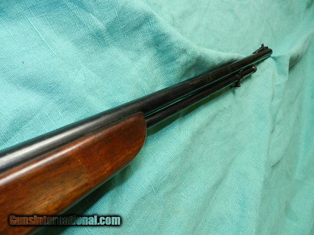 Description: High-Standard semi-auto rifle with a 24" barrel, and clean shiny micro groove bore. Action works good, and the American walnut wood is good, and has aggressive crotch grain at the back of the stock, and with a few small field dings. Finish is about 85% blue, some age freckling and the frame color of black is also very good.This tube feed model is a fast shooter. This model called J.C. HIGGINS MODEL 31.With most of production was sold through SEARS! and called Model 31 J.C. HIGGINS.This is for the .22lr or 22long only, even though the barrel states it will feed the .22 short it may be underpowered to work the action on a tight gun!Has both sights and the top rail has grooves for scope mount,. We don’t have asite .I prefer money orders or a check. Item ships when funds come in. If you can only pay with a card let me know. I hope you like my wide selection of unusual guns, knives and gun parts. I try to keep the prices affordable, which means I make less money than most dealers. I consistently have the best selection of older guns If you BUY IT NOW you must still contact us for details buy it now doesn't end the sale, it just sends an email telling us you want to buy this gun. A phone call won’t secure a sale! Not home many times, the first buyer by email buys the gun !Thissite doesnot close down a sale when you do a BUY IT NOW like Ebay!I can get six buy it nows in an hour, first buyer to email gets the guns, others are in second place! Best to send another email . Sometimes not home to get calls. Some guns are required shipment to a gun dealer near you for a transfer to you when it arrives. With the widest selection of older guns at great prices, We don’t have a store, and sell on the internet only. SOLD Curio/Relic: Yes |