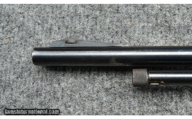 Description: This rifle is in good condition overall. The pump mechanism is worn but functions. There is wear on the receiver and barrel with the bluing thinning and coming off. The wood stock shows light wear as well. .22 Long Rifle SOLD Metal Condition: Good Wood Condition: Good Bore Condition: Good Barrels: 24 Butt Pad: Wood Weight: 5.35 lbs. Sights: Front post with rear notch. Item Location: Gainesville, VA |