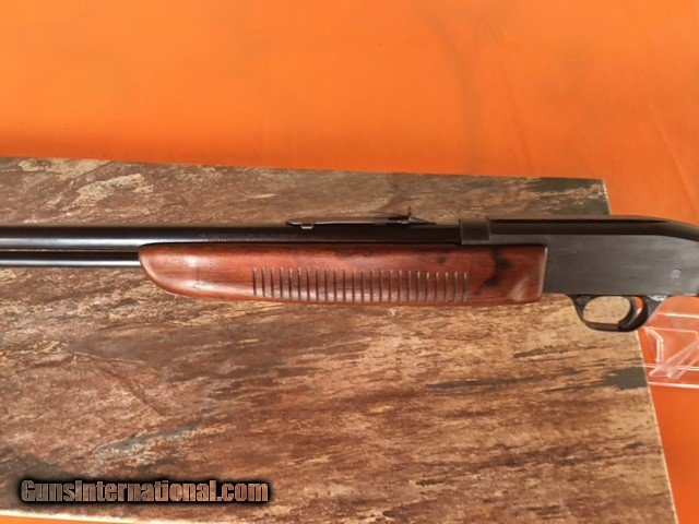 Description: J.C. Higgins - Model 33 - Pump Action - .22 LR Rifle - Smooth Monte Carlo walnut pistol grip style stock with a grooved slide forend. Tubular magazine 19 LR round capacity . 24 in . long barrel, 41.75 in. overall length. Wgt. 5.5 lbs. Bore is clean and bright. Open rear adj. sight and a ramp style front blade sight. Blade and receiver are retaining approx. 85% - 90% bluing. Stock and forend are in very good condition with few minor handling marks. Butt plate and wrist emblem are in great condition. Manufactured from 1962 to 1975 . Overall condition is very good. These are great shooters . Nice addition for our J.C. Higgins collectors. All our rifles have been cleaned and lubricated . We can ship to your FFL dealer at a flat rate of $50.00 S&I to lower 48 states. New Simmons 9x32 Magnum Scopes are available add $50.00 installed. SOLD Rifle Caliber: .22 Long Rifle Manufacturer: J.C. Higgins Model: 33 Serial Number: NSN Barrel Length: 24 in. Condition: Very Good Metal Condition: Very Good Wood Condition: Very Good Bore Condition: Clean / Bright Butt Pad: Very Good Weight: 5.5 lbs Sights: open |