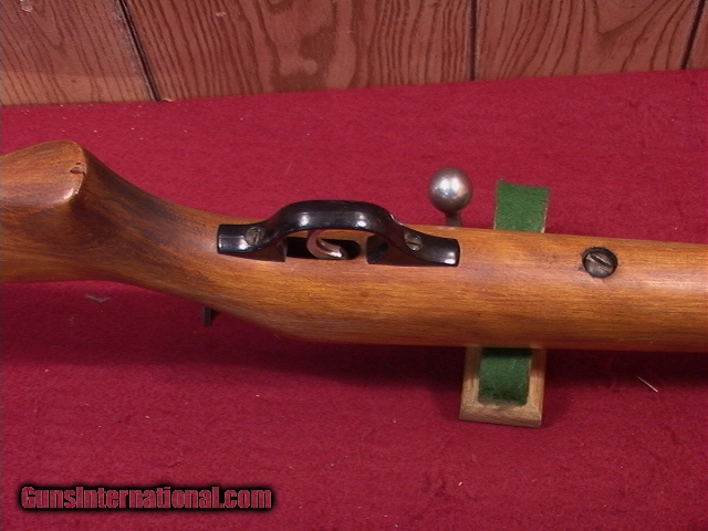Description: JC HIGGINS 103.18 (MARLIN 100) 22 BOLT SINGLE SHOT, GRAY METAL, EXC. BORE, REFINISHED WOOD, CHIP IN THE TOE OF THE BUTT PLATE SOLD |