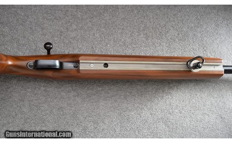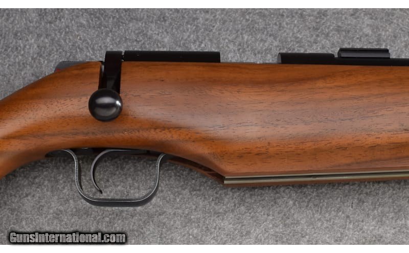 Description: This Kimber of Oregon Model 82 Government in .22 Long Rifle remains in excellent condition. It has a 25" target barrel with a target style front sight. No rear sight is present. The bore is bright and shiny with distinct rifling. The wood stock has a target rail under the forend. The barrel is free floated. This is a single load target .22 rifle. No box. .22 Long Rifle Metal Condition: Excellent Wood Condition: Excellent Bore Condition: Excellent Barrels: 25" Target Triggers: Factory Stock Dimensions: 13.75" LOP Fore End: Uncheckered Walnut Semi Pistol Grip Stock - Uncheckered Free Float Target Rail Forend Butt Pad: Black Recoil Pad Weight: 10.5 lbs Sights: Circle Target Style Front - No Rear Sight Item Location: Wheeling Price: $1,099.99 Contact Seller |