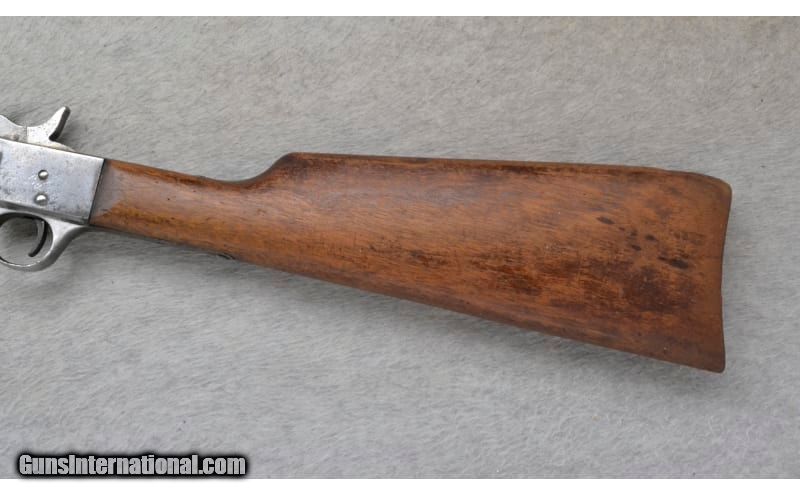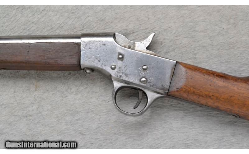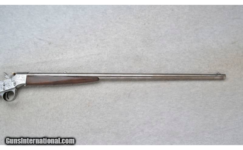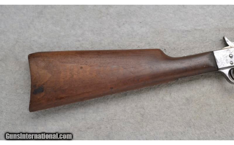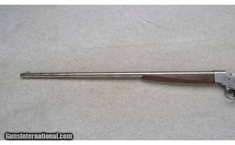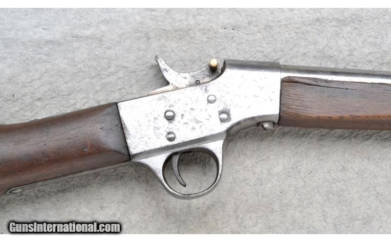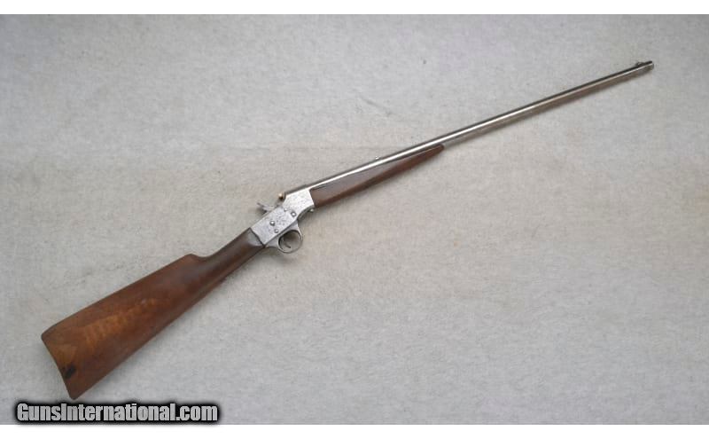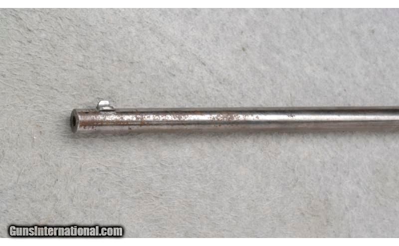 Description: This Meriden Firearms Model 10 is a single shot rifle in .22 Short or Long Cal. It has a 22 inch barrel with a blade front sight and notch middle sight. The butt stock is a smooth grip hardwood straight grip. The forearm is a smooth grip hardwood. .22 Short SOLD Chambers: Single Shot. Metal Condition: No bluing. Handling/use marks and light freckling. Wood Condition: Has many handling/use marks. Finish wear. Piece of wood missing top of butt stock at butt. Bore Condition: Dark. Pitting. Barrels: 22 inch. Stock Dimensions: LOP 13 inch. Fore End: Smooth grip hardwood. Butt Pad: Butt plate is missing. Weight: 3 lb. 8 oz. Sights: Blade front. Notch middle. Item Location: Richfield, WI |