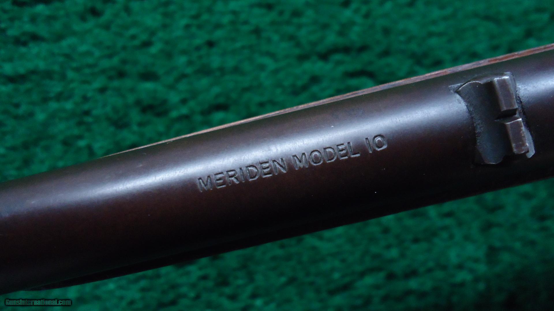 Description: Marked " Meriden model 10". 20" full round bbl. Very nice bore. Wood has most varnish remaining and correct buttplate. A small crack coming off the receiver. Stock is sound and solid. Overall metal has turned a nice brown color with traces of finish. Sharp markings. Nice clean little gun. Leroy Merz Antique Firearms specializes in antique and vintage Winchesters and other fine American firearms. Since 1965 Mr. Merz has taken part in the world of firearms and has been a contributor to many well known reference books. Just recently we mailed the 127th edition of our privately-published catalog. We have hundreds of additional guns in every price range at our home online. Search for Merz Antiques in google. SOLD Curio/Relic: Yes |