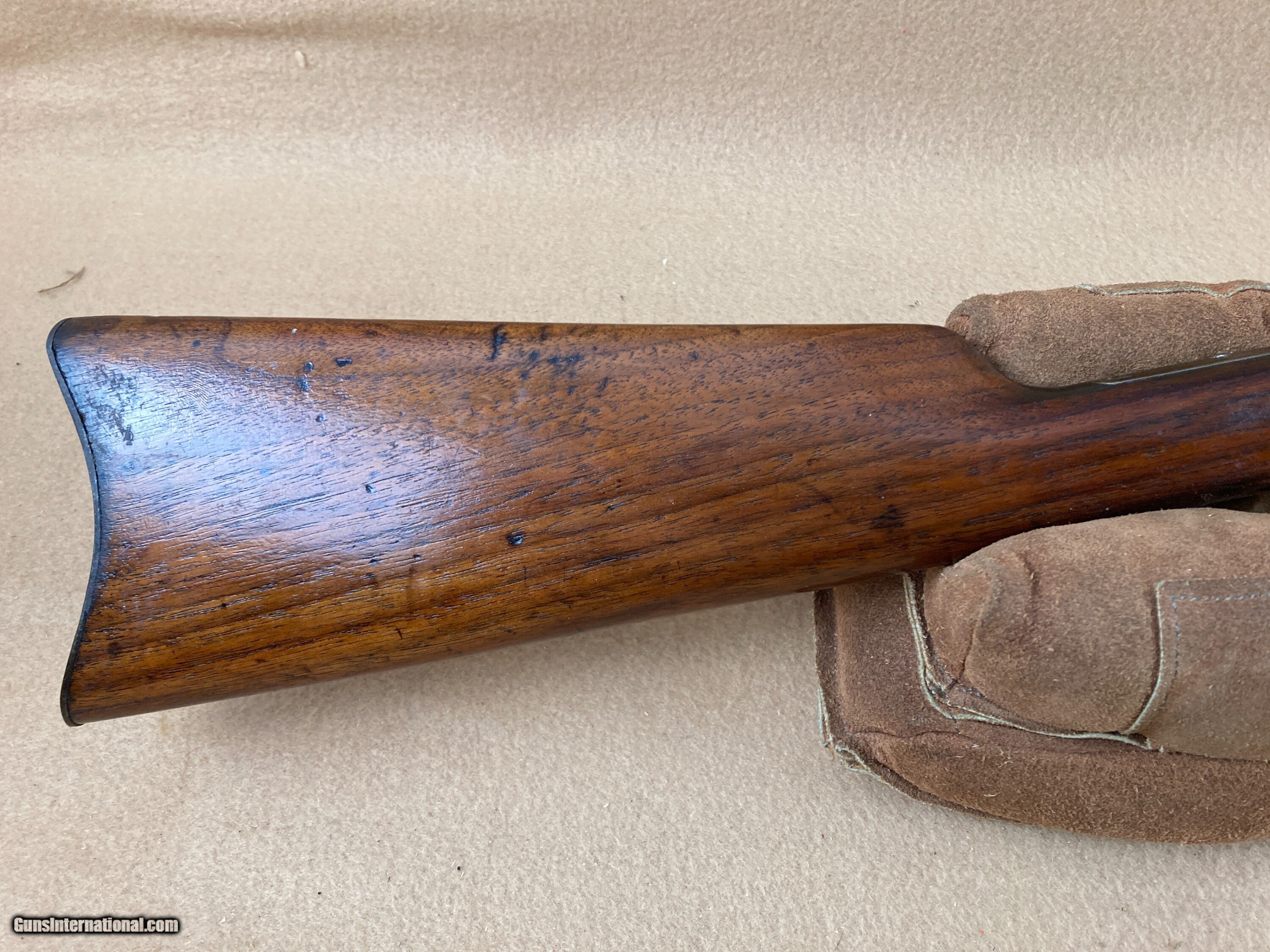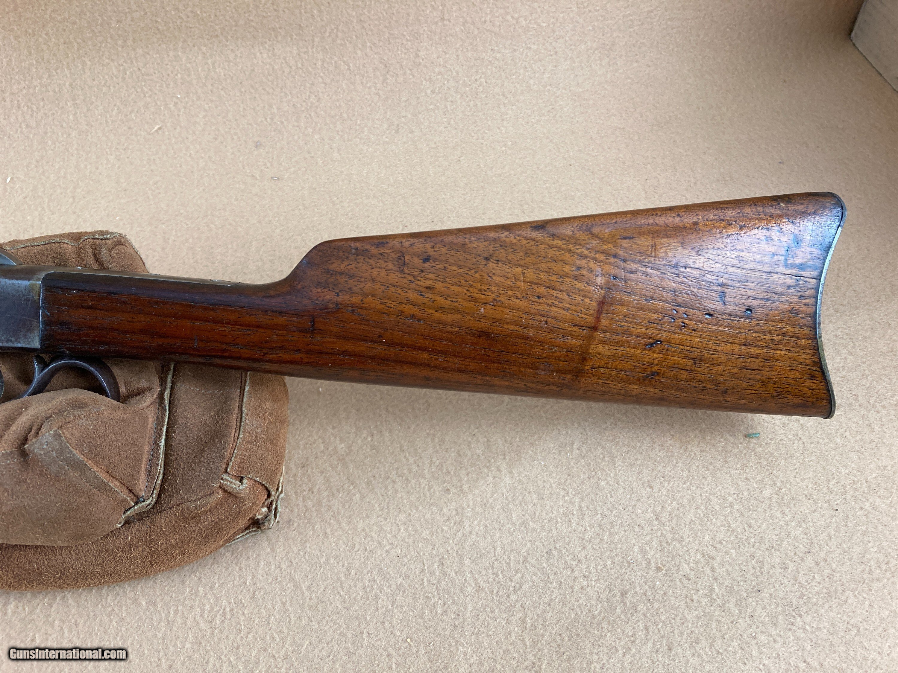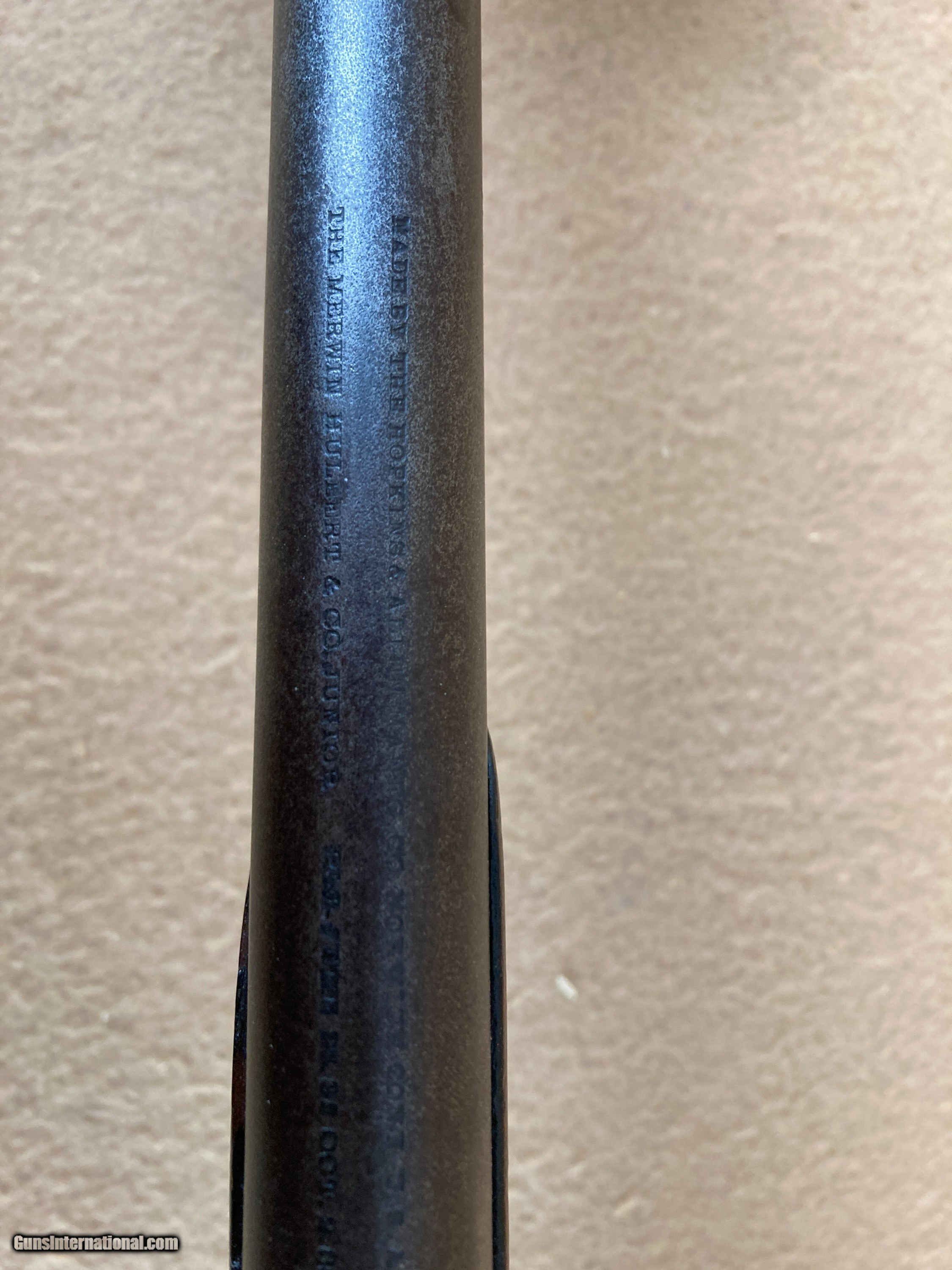 Description: Rarely seen Merwin Hulbert & Co. Junior Rifle in .32 rimfire caliber. These rifles where produced with no serial numbers on the early models. Information on the Merwin Hulbert rifles is hard to come by due to a warehouse fire in 1891. The barrel is 26 inches long with good bore, nice rifling and some pitting. Bluing has faded away and has turned to a fine patina. For a rifle of this age, it is in decent shape. The lever and butt plate have pitting on them. The elevator for the rear sight is missing. The ivory bead on the front sight is also missing. The forearm has cracks and a piece missing at the front end of forearm. The butt stock has some dings and cracks as well. Please review the photos as they are part of the description. Due to its ingenuity and rarity, the addition of this rifle would enhance any collection of Merwin Hulbert & Co. firearms. I do not shoot my collectable weapons. The rifle is sold as is with no warrantee. All used weapons should be checked by a gunsmith before firing. The weapon will be shipped to the FFL of your choice. Payment method: GunTab or personal check or bank cashier check. Payments made by check will be shipped after they clear our bank, approximately five to seven days. Buyer pays sales tax and all return shipping fees including insurance. Antique: Yes Rifle Caliber: .32 RF Manufacturer: Merwin Hulbert & Co. Model: Junior Serial Number: none Barrel Length: 26 Inches Condition: Good Metal Condition: Good Wood Condition: Fair + Bore Condition: Good Butt Pad: Steel Weight: 5.5 pounds Sights: original Price: $445.00 Buy Now Pay with