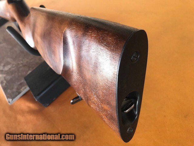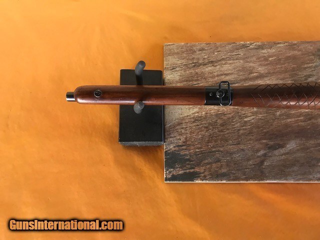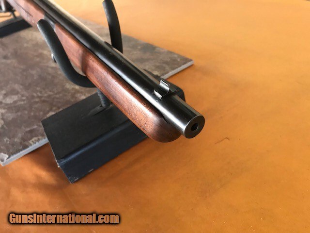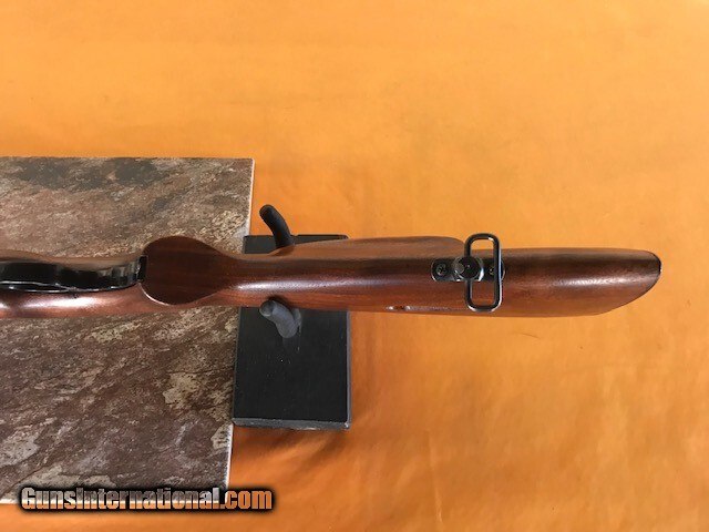 Description: Mossberg Model S 51M - Semi - Auto .22 LR Rifle - Two piece Mannlicher style pistol stock raised cheek piece, hard rubber butt plate and sling swivels. 20 In. long barrel with rear adj. open sight and a front bead sihght. 15 Round .22 LR butt feed tubular magazine. Magazine drilled for scope and rear peep sight. Bore is clean and bright. Barrel and receiver retaining approx. 75% bluing. Stock and forend are in good solid shape with minimal handling marks . Includes a new soft sleeve . Note: Previous owner added some DYI hand grip checkering. See photo's. Internal parts are in good condition operates well . Manufactured from 1939 to 1946. We can ship to C&R or to your FFL dealer at a flat rate of $50.00 S&I to lower 48 states. All of our rifles have been cleaned and lubricated. Curio/Relic: Yes Rifle Caliber: .22 Long Rifle Manufacturer: Mossberg Model: S51-M Serial Number: NSM Barrel Length: 24 in. Long Condition: Very Good Metal Condition: Very Good Wood Condition: Good Bore Condition: Clean / Bright Action: Semi Stock: Mannlicher Fore End: Extended Butt Pad: Very Good Weight: 7 Lbs. Sights: Open / Bead Case: New Soft Sleeve Price: $395.00 Shipping: $50.00 Buy Now Contact Seller |