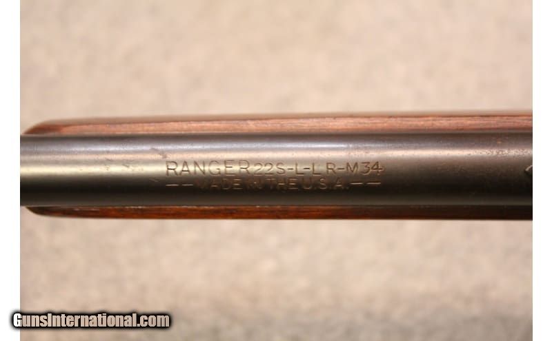 Description: This Ranger Model M34 chambered in .22 Lr is in good shape. The finish has minor spots of surface rust throughout, with a bright bore. The wood stock has no cracks or splits. .22 Long Rifle SOLD Metal Condition: Good Wood Condition: Good Bore Condition: Bright Barrels: 24 Weight: 4.6 lbs. Item Location: Hoffman Estates, IL |