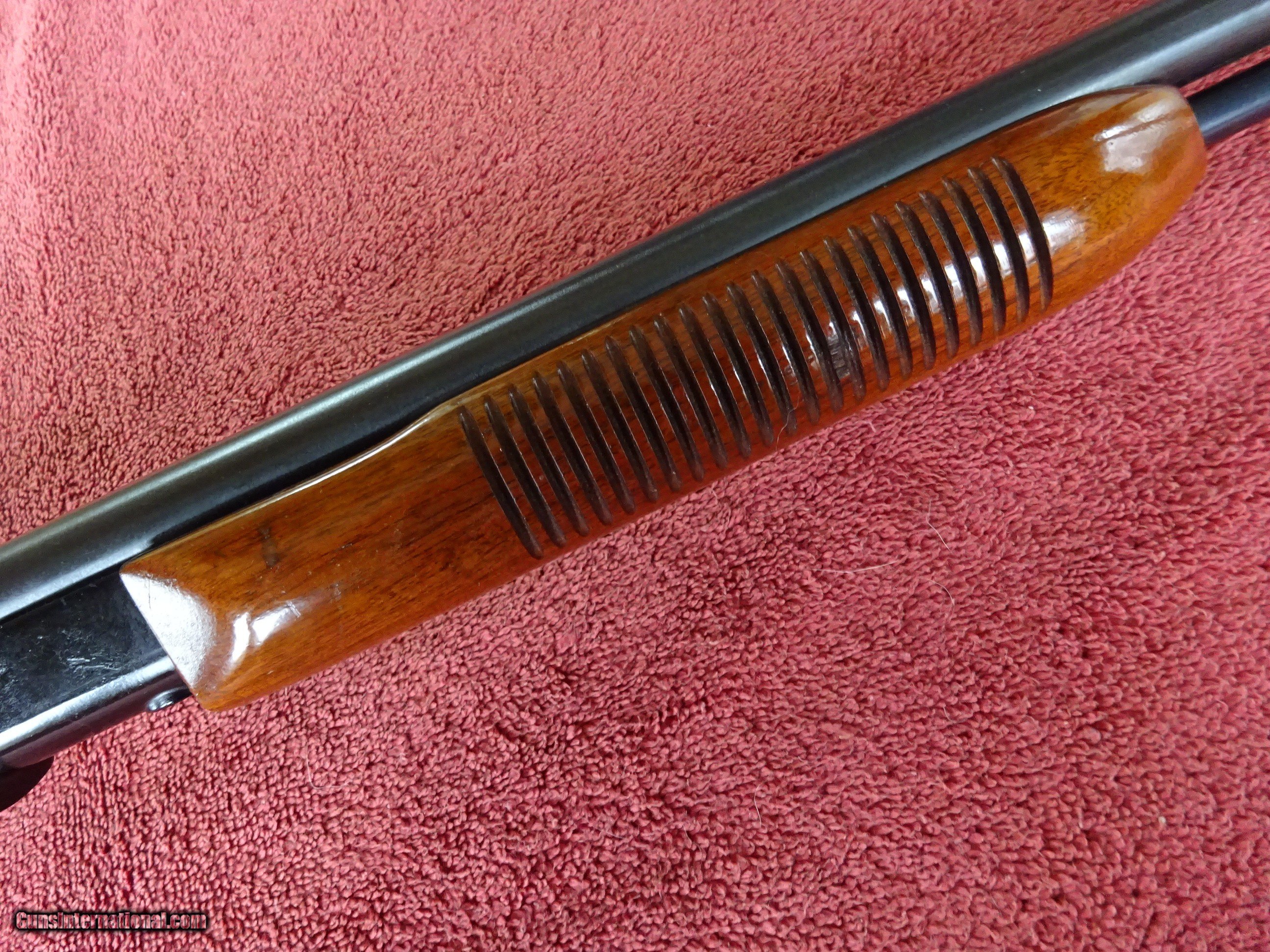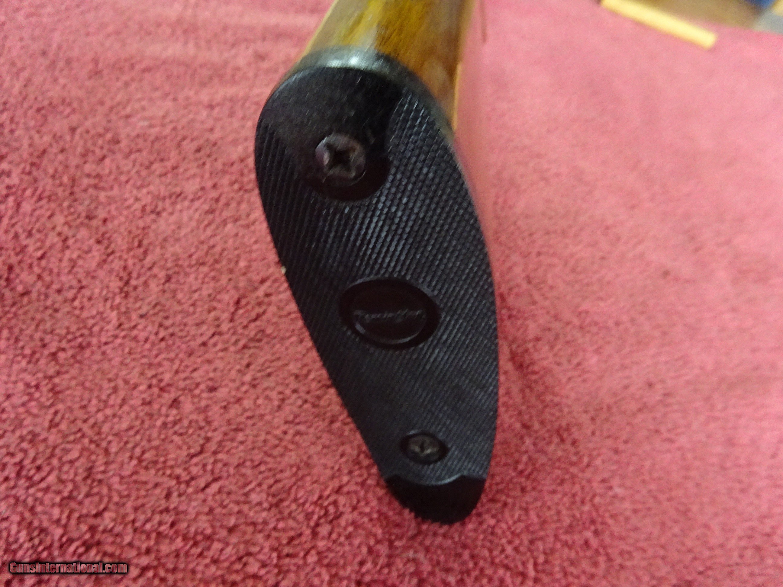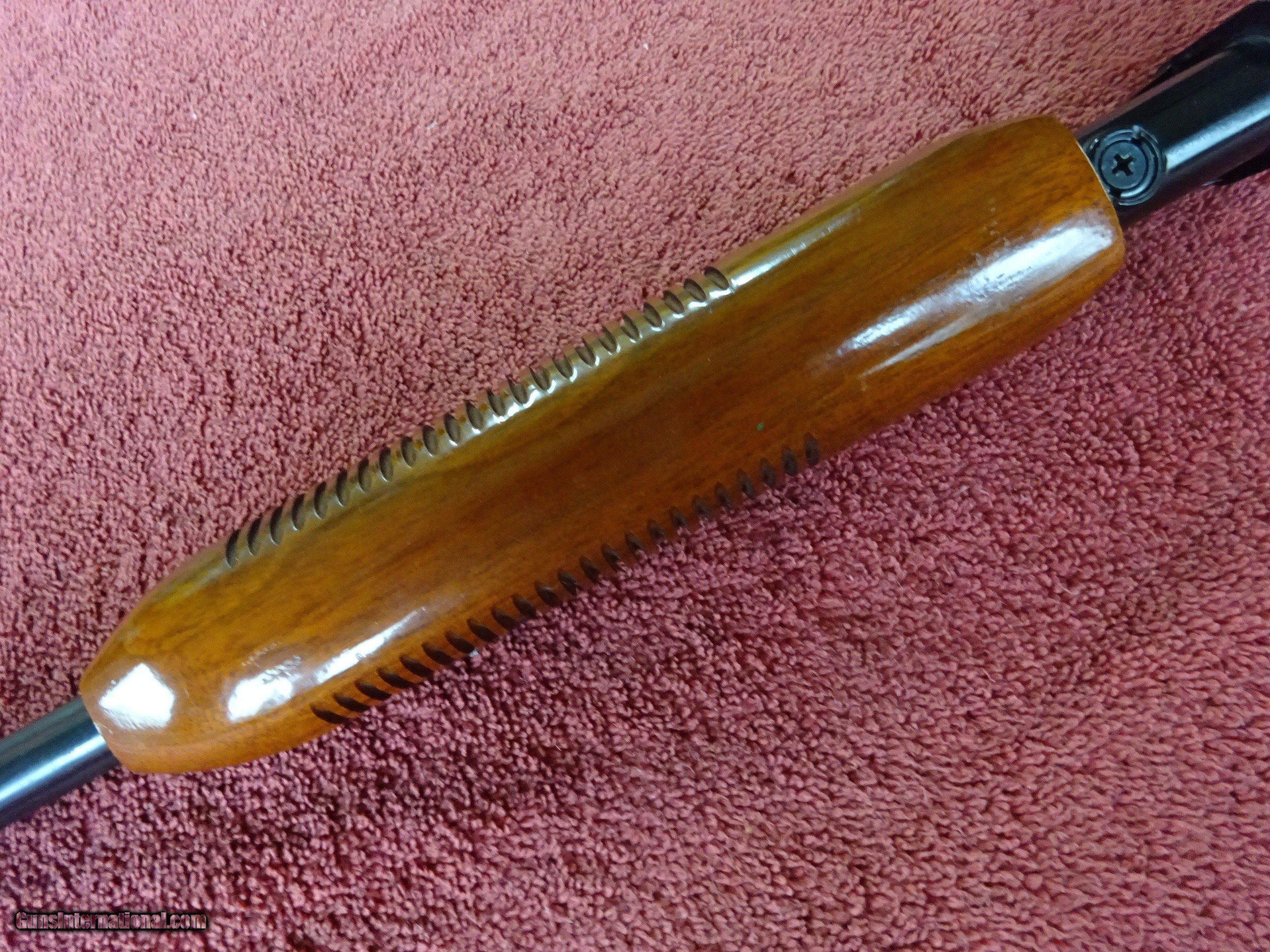 Description: REMINGTON MODEL 572 FIELDMASTER SLIDE ACTION RIFLE. ROUTLEDGE BORED 23" BARREL, STAMPED "22 LONG RIFLE SHOT", SHOTGUN BEAD FRONT SIGHT, NO PROVISION FOR A REAR BARREL SIGHT, 100% BRIGHT ORIGINAL BARREL AND MAGAZINE TUBE BLUE, MIRROR PERFECT BORE. EXCELLENT FRAME AND TRIGGERGUARD FINISH, ONLY VERY MINOR SIGNS OF HANDLING. TOP OF FRAMED STAMPED "NO. 5 NMSC". SMOOTH AMERICAN WALNUT PISTOL GRIP STOCK, RIBBED FOREARM, UNUSUAL NICELY FIGURED WOOD. SOME NICKS AND DINGS IN THE VARNISH. REMINGTON MARKED CHECKERED PLASTIC BUTTPLATE. MADE IN 1973. 100% ORIGINAL CONDITION. NICE SCARCE GUN. $1375.00 + $70.00 Insured shipping to an FFL address. Layaway is available. See all Pats gun listings on this site! We also have hundreds of ORIGINAL gun company advertising & memorabilia pieces available for sale on our site SPORTINGCOLLECTIBLES. We have no reprints or reproductions. Email for more information. If you need to call, morning or evening is best, and please note the Seller's Inventory number. Curio/Relic: Yes Price: $1,375.00 Shipping: $70.00 Contact Seller |