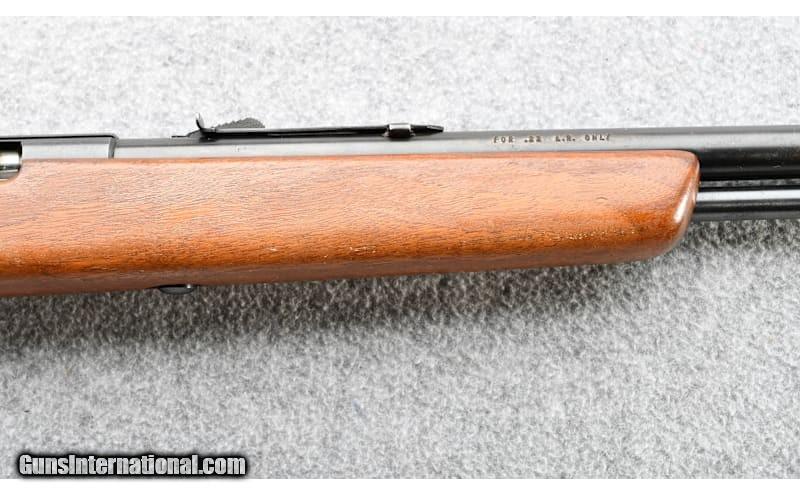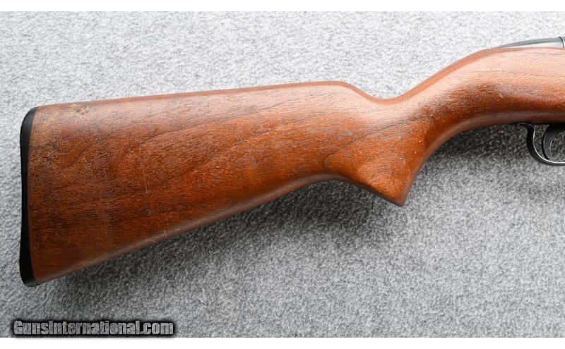 Description: Very good condition J.C Higgins (Sears & Roebuck) model 25. One-piece lacquered walnut stock with a pistol grip, black plastic serrated buttplate, adjustable sights. .22 Long Rifle SOLD Chambers: .22 Lr in a fifteen round tubular magazine Metal Condition: Very good Wood Condition: Very good Bore Condition: Very good Barrels: 22 Stock Dimensions: 14" LOP Weight: 5lbs 14oz Sights: "Adjustable rear, front blade Item Location: Grand Junction, CO |