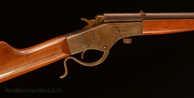 Description: 85% original case color and 80% original wood finish. High condition for a gun of this vintage SOLD Manufacturer: Stevens Crack shot -26 in 32 Rimfire Serial Number: no visible number Ejectors: No Barrels: 22 Barrel Type: Steel Action: falling block single shot Gauge Info: Caliber LOP: 13 1/8 Weight: 3 lbs. 8 oz. |