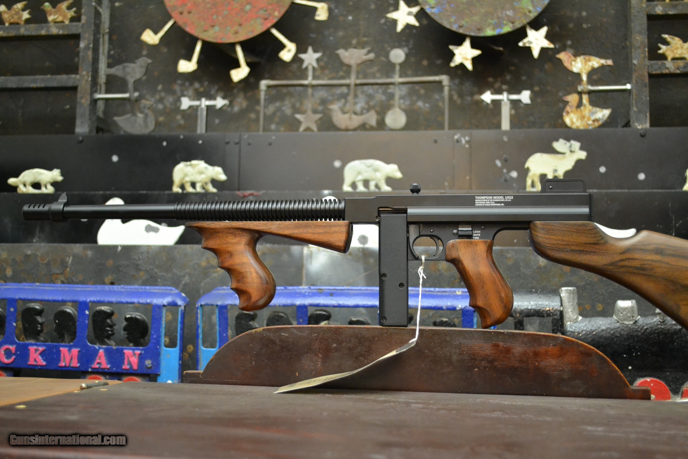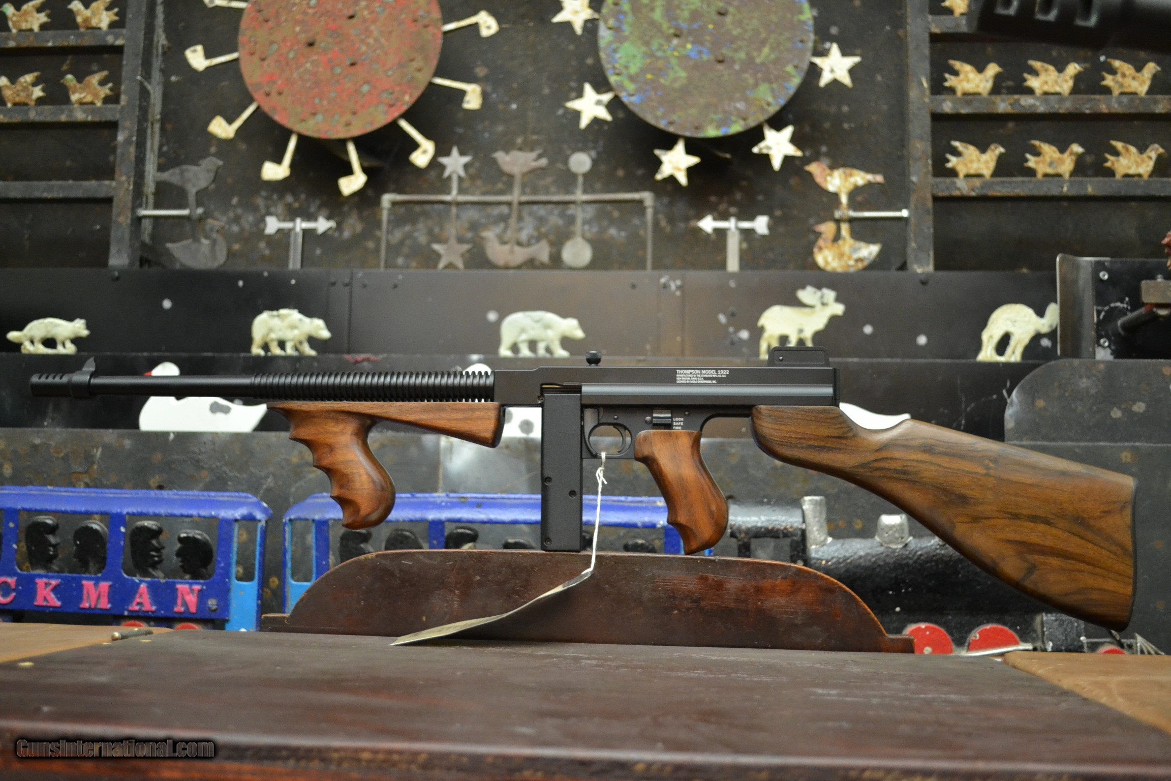 Description: Standard Manufacturing Company- Thompson Model 1922, .22 Long Rifle, Semi Automatic Rifle, 16.4” barrel, walnut stock and grips, 1/2 size frame, the gun is completely machined out of aircraft grade aluminum. Standard Manufacturing Company is proud to offer the Tommy Gun Semi Automatic Rifle in .22LR This is the first time in history that a Thompson product is offered on a true scaled frame according to its caliber. Don’t confuse this gun with a crude finished gun, these guns are built like a Swiss watch, all metal and wood finishes are superior to any other comparable guns on the market, this gun is a marvel of modern engineering, it will be the centerpiece of your gun collection. Barrel Length- 16.4” Overall Length- 34 ½” Weight with 10 round magazine- 4lbs. 10oz. Optional 50 round drum magazines available separately. $1,100.00 We have a limited number of guns available for immediate delivery SOLD |