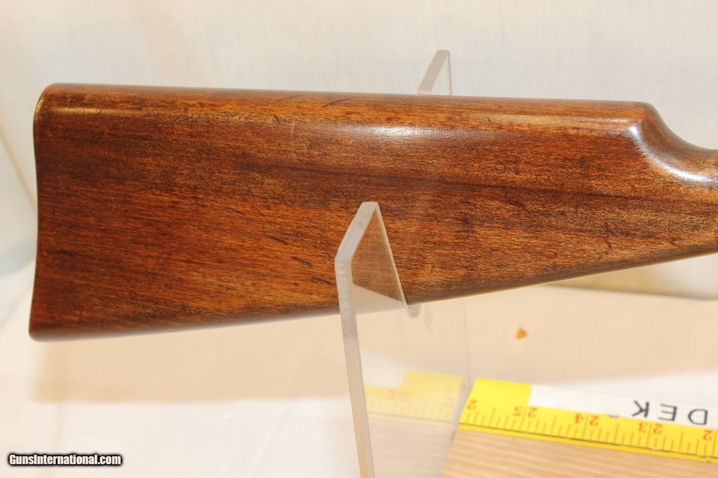 Description: Model 58 Winchester rifle in 22 caliber S, L or LR. This gun's bore is as new, very rare. You can hardly ever find one of these with a great bore.The blue is about 50%. See pictures and use the zoom feature. Stock finish is good, but has some dings and scratches. These guns were made from 1928 to 1931. This was the standard starter gun for boys and some girls, too, before and even after WWII. The barrel is only 18 inches. A real handy camp gun. The cocking knob is a replacement. This is a take down gun and can be disassembled by one screw. C&R OK $40.00 Shipping via Priority Mail SOLD Curio/Relic: Yes |
