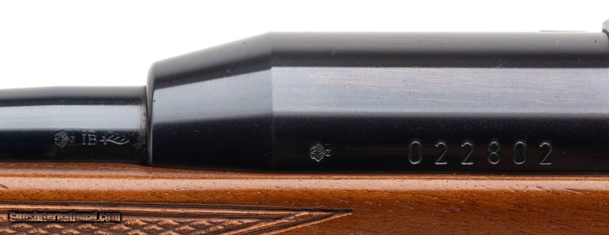 Description: "SN: 022802 made in Germany circa 1981. Rare semi-automatic rimfire rifle chambered in 22 magnum with a 19.5" round barrel with front ramp sight with adjustable blade, island rear sight with a single standing bar, base for quick detach scope mount and detachable 5 round magazine in a checkered walnut stock with factory butt plate and pistol grip. Only a few very light handling marks, overall in near excellent condition with an excellent bore. Consignment. Price: $1,995.00 Contact Seller |