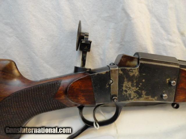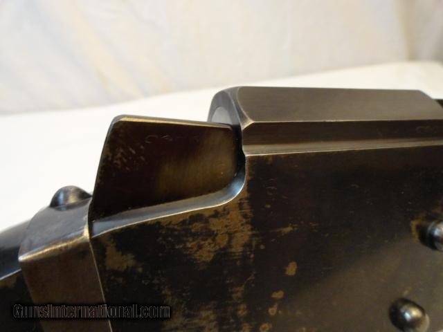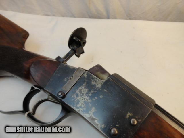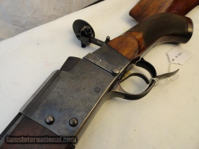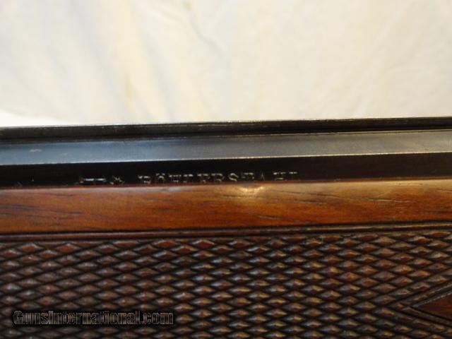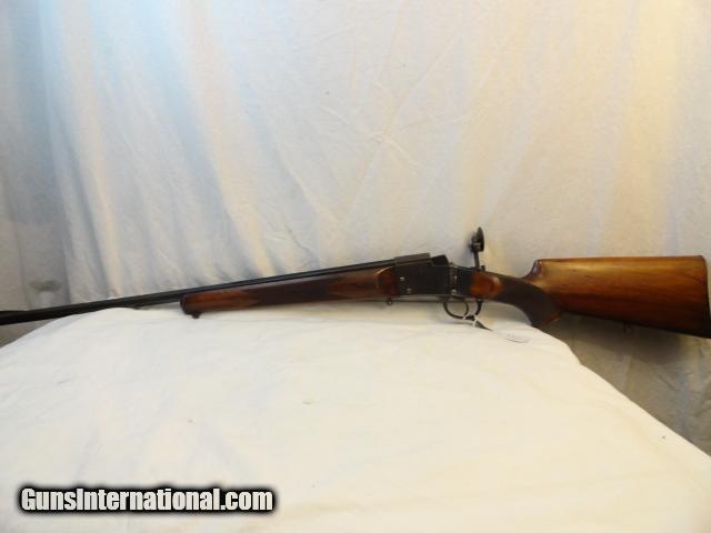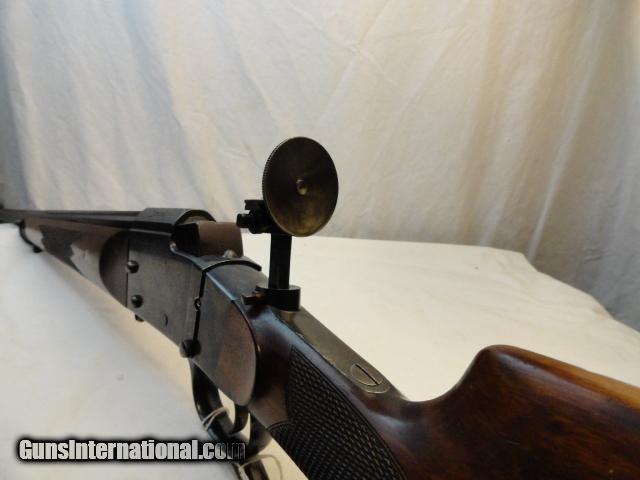 Description: In the 1920's, the Haenel target .22's won three world championships. While they made fine guns in Germany since the 1840's, it is the target .22's that are the most sought after of all. This example is in amazing condition. It features a tapered 28" octagon barrel that is matted on the entire top surface. It sports a bead on ramp front sight, no rear sight cut out and a fine tang sight. The wood is finely checkered and is excellent shape with no cracks. The receiver retains at least 80% lusterous factory blue while the barrel retains at least 99%. Bore is excellent and action locks up like new. Truly a German master piece from the 1920-30's.