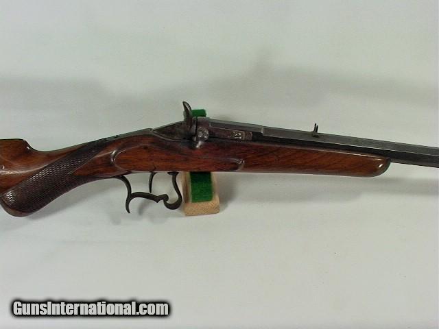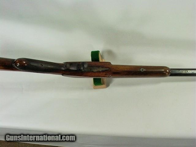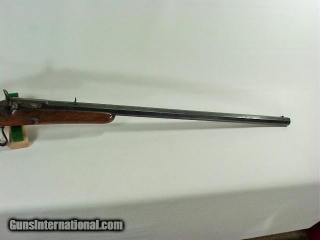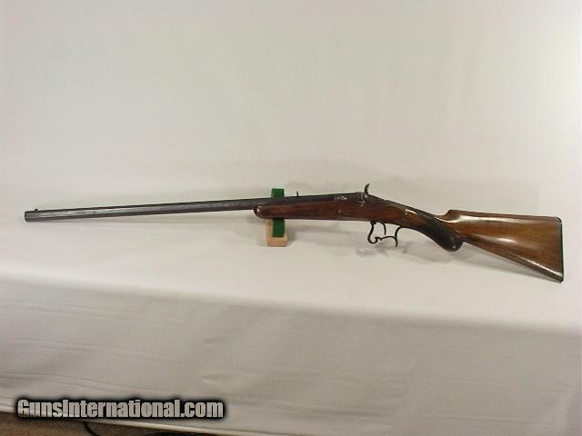 Description: FLOBERT 22 SINGLE SHOT OCTAGON BARREL, METAL TURNING BROWN, NICE BORE WITH JUST A LITTLE FAINT PITTING, GOOD WOOD WITH LIGHT MARKS FROM USE AND A COUPLE OF SMALL CHIPS BEHIND THE TANG SOLD Curio/Relic: Yes |