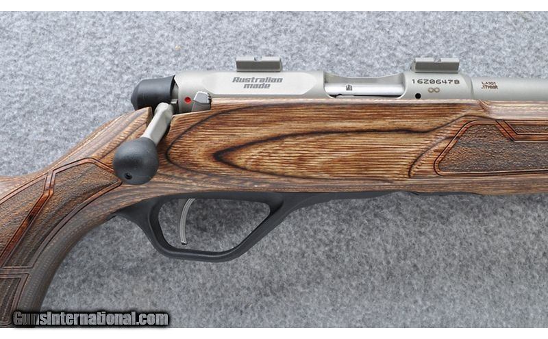 Description: Lithgow Arms of Australia has developed a rifle with modern styling, high accuracy & reliability for target shooting, hunting & general shooting enjoyment. .17 HMR SOLD Chambers: .17 Hornaday Magnum Rimfire in a five round detachable box magazine. Metal Condition: New Wood Condition: New Bore Condition: New Barrels: 21" with threaded muzzle and cap Triggers: Single stage Stock Dimensions: 13 5/8" LOP Fore End: Laminate with textured grasping areas and sling stud Butt Pad: Soft rubber Weight: 7 Lbs. 2 Oz. Sights: "No sights, fitted with Weaver style scope bases Item Location: Grand Junction, CO |